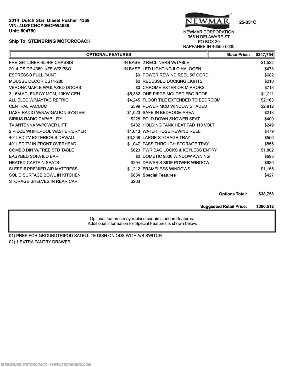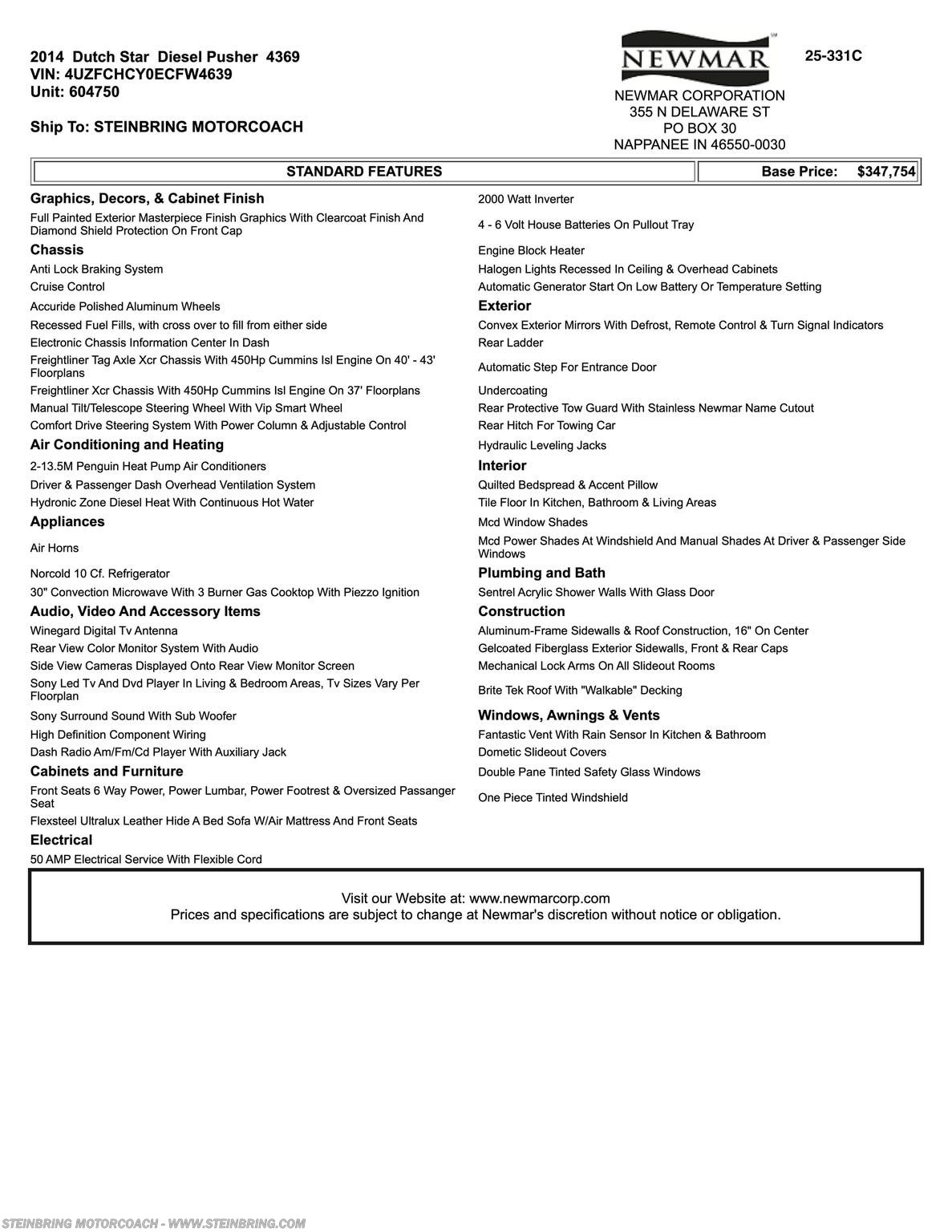 Request More Info on this 2014 Newmar Dutch Star 4369 Offered for sale by Steinbring Motorcoach