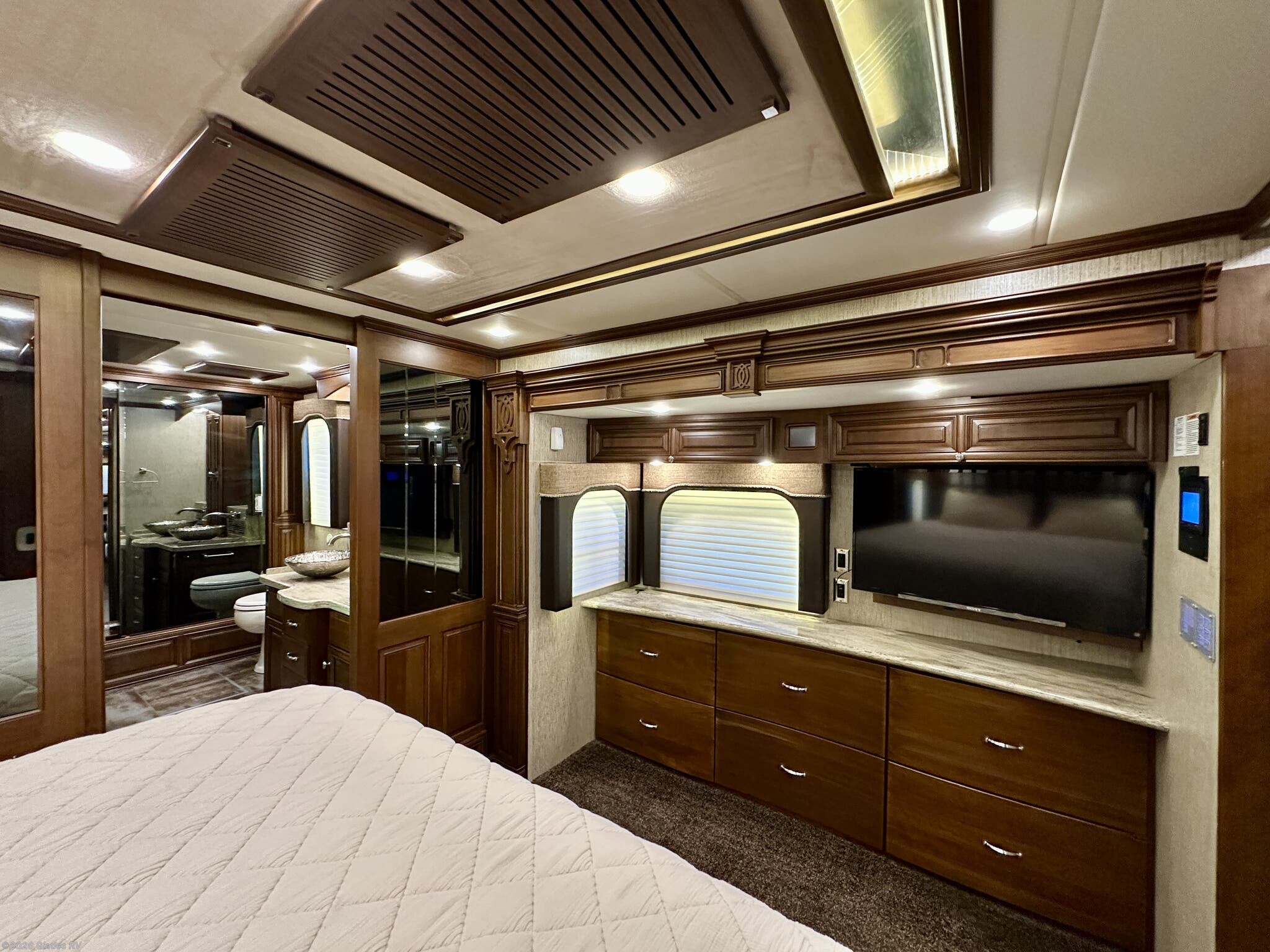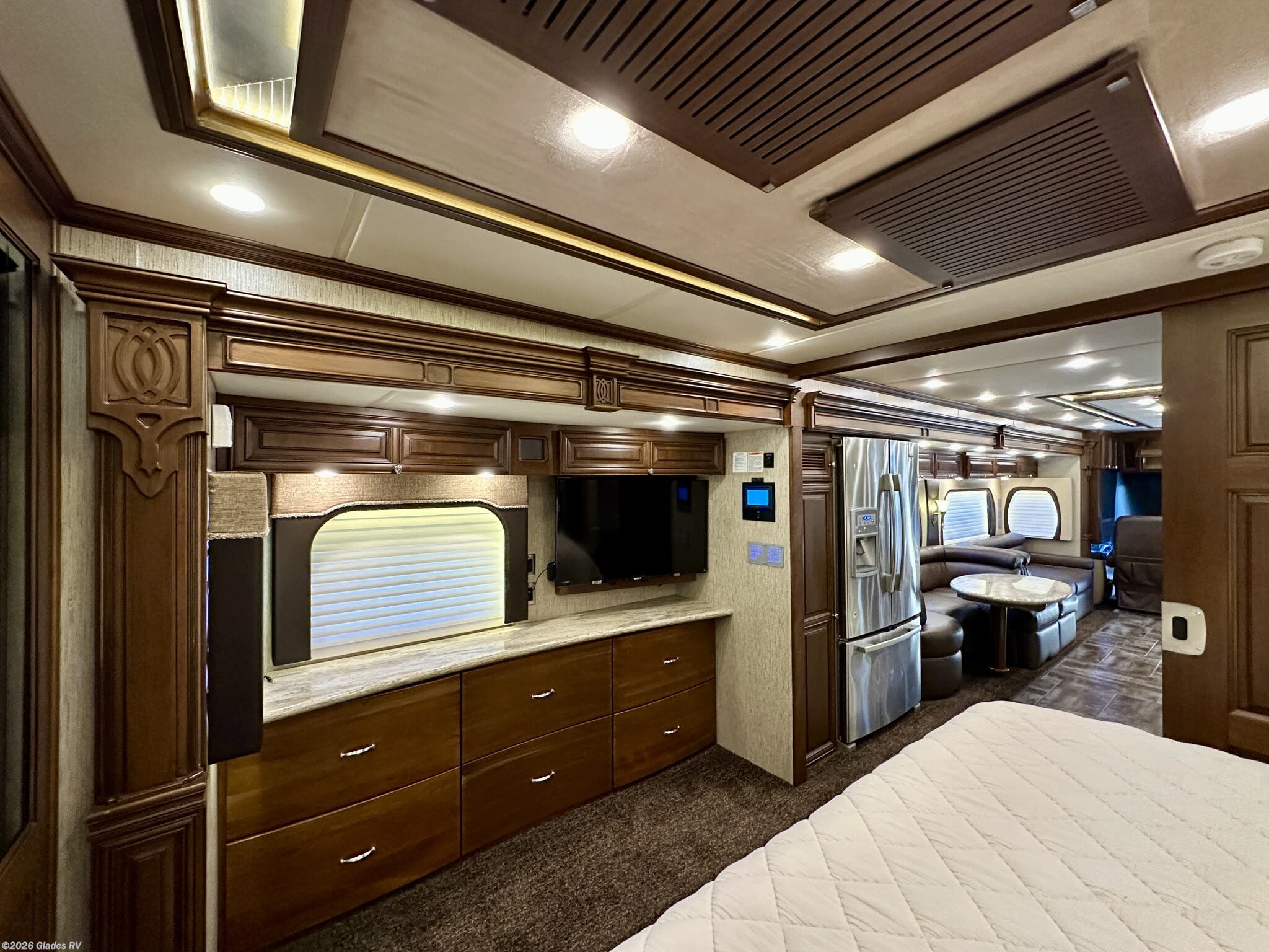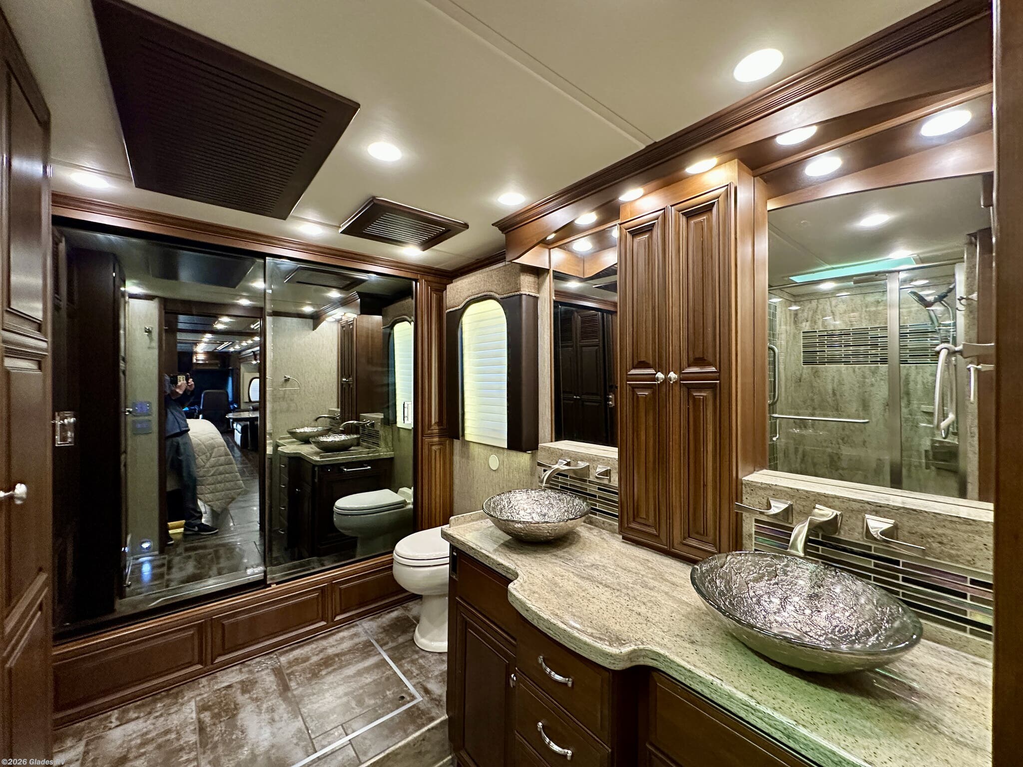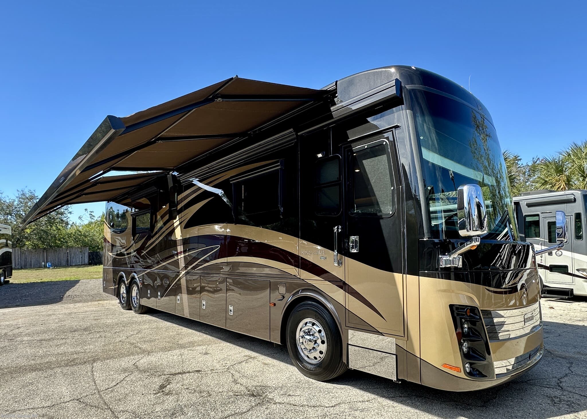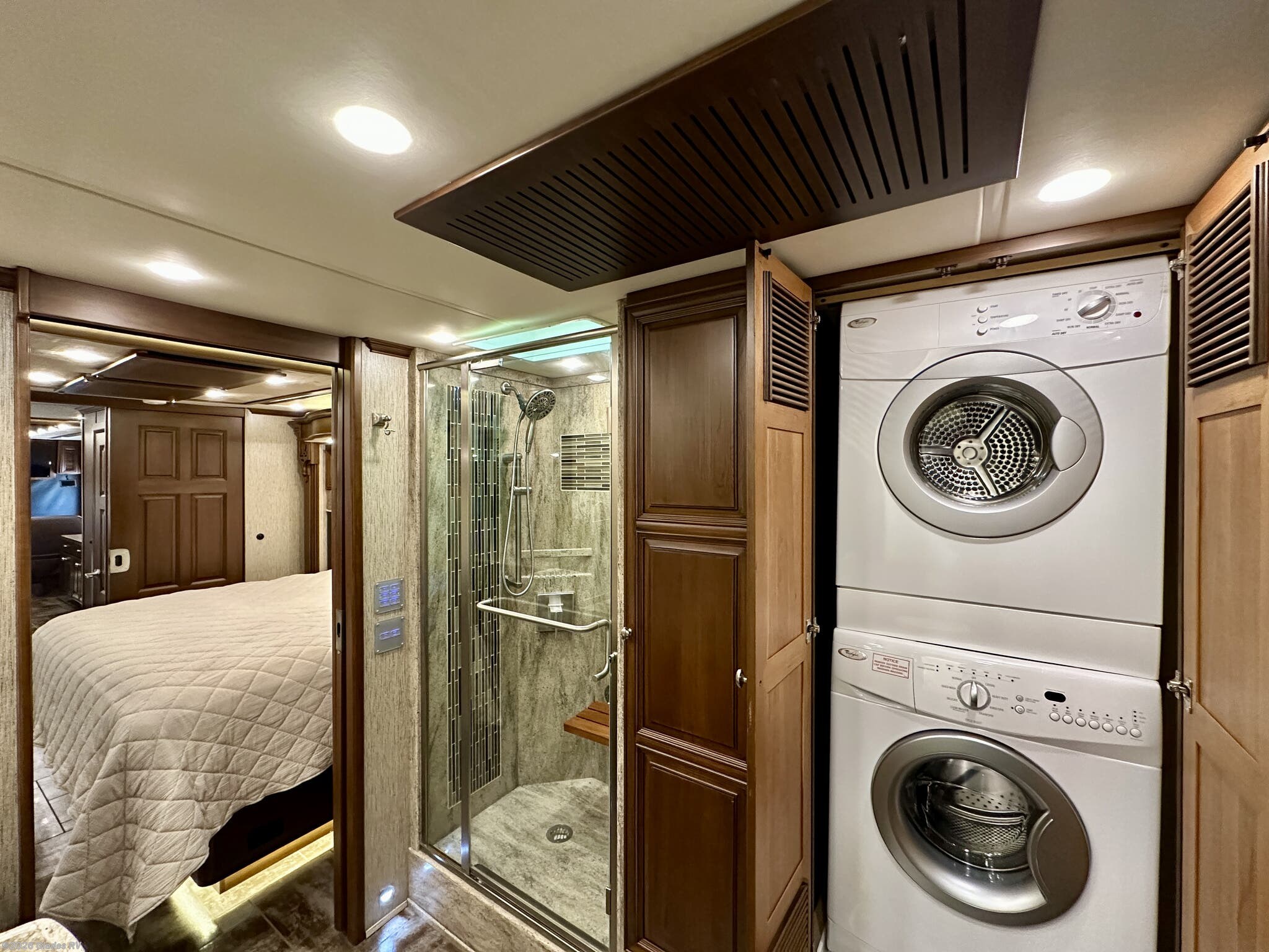 AUTO HYDRAULIC & AIR LEVELING, INTEGRATED GIRARD AWNINGS, POWER & MANUAL SLIDE TRAYS IN BASEMENT, TELEVATOR TV, STACKED WASHER & DRYER, HYDRONIC HEATING, OUTSIDE ENTERTAINMENT, HEATED FLOORS, KING BED, RESIDENTIAL REFRIGERATOR, OUTSIDE FREEZER, POWER SHADES AND MUCH MORE...