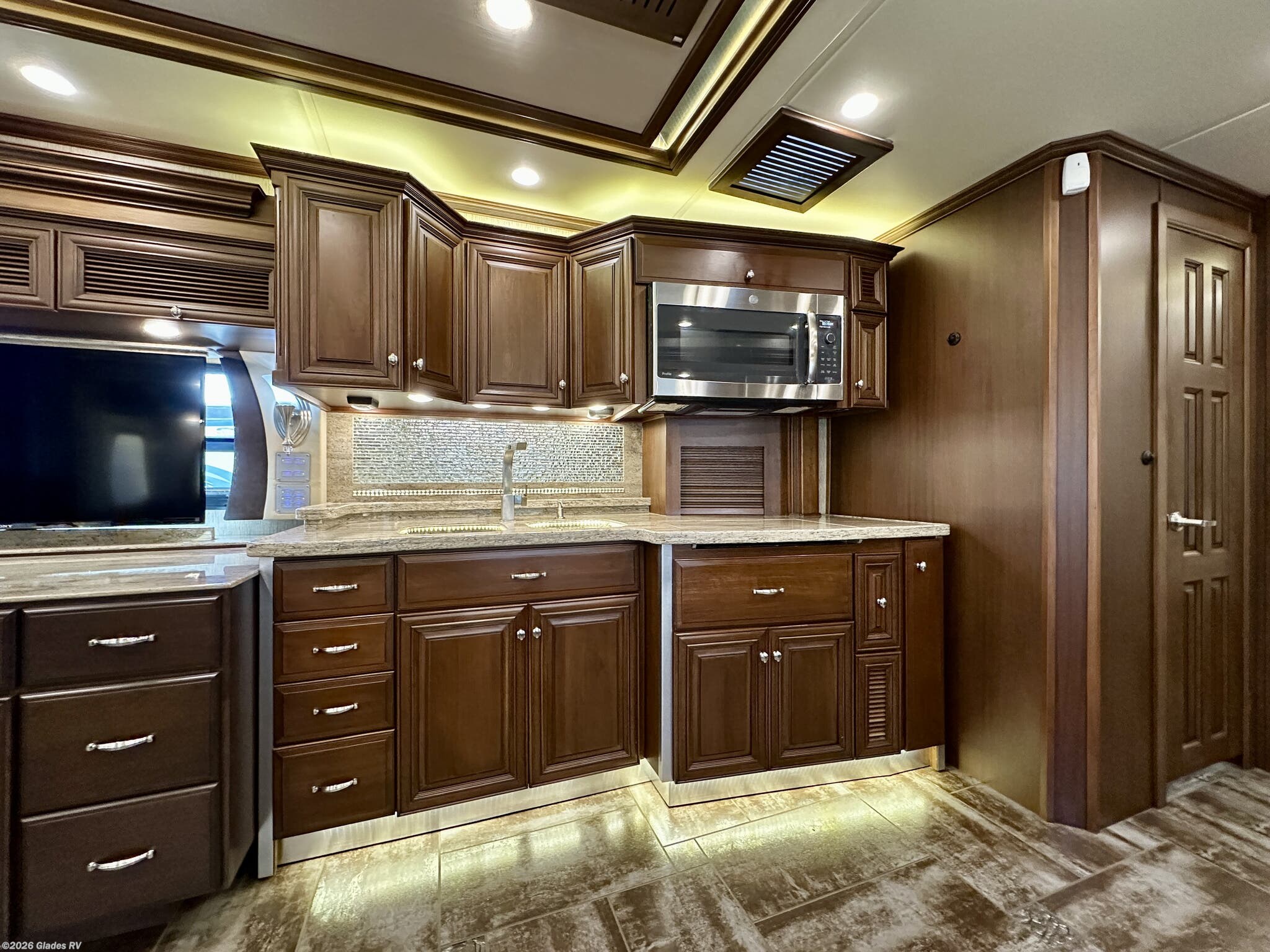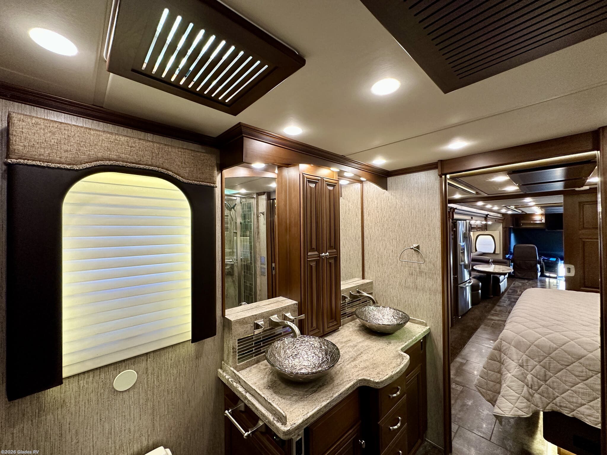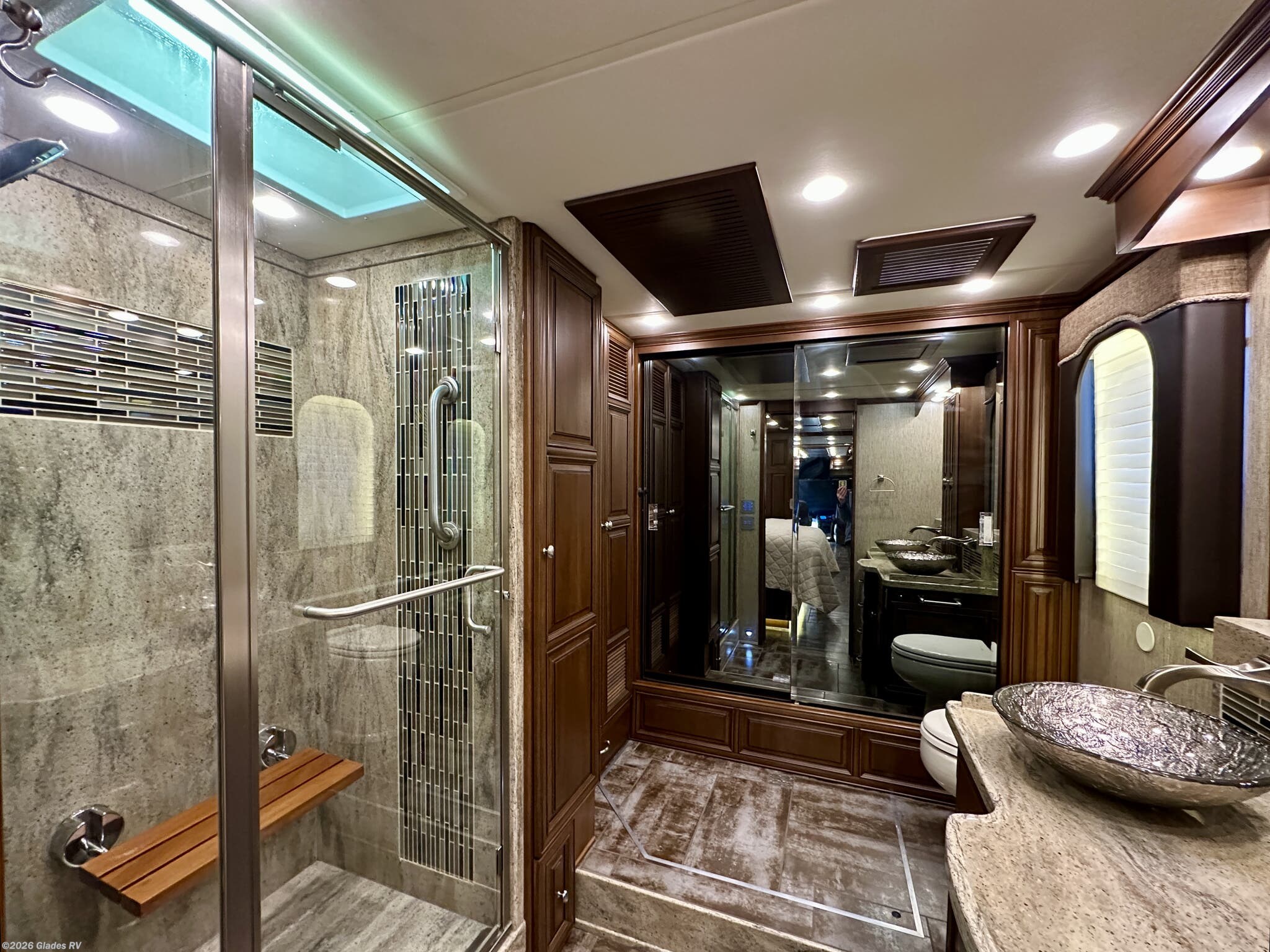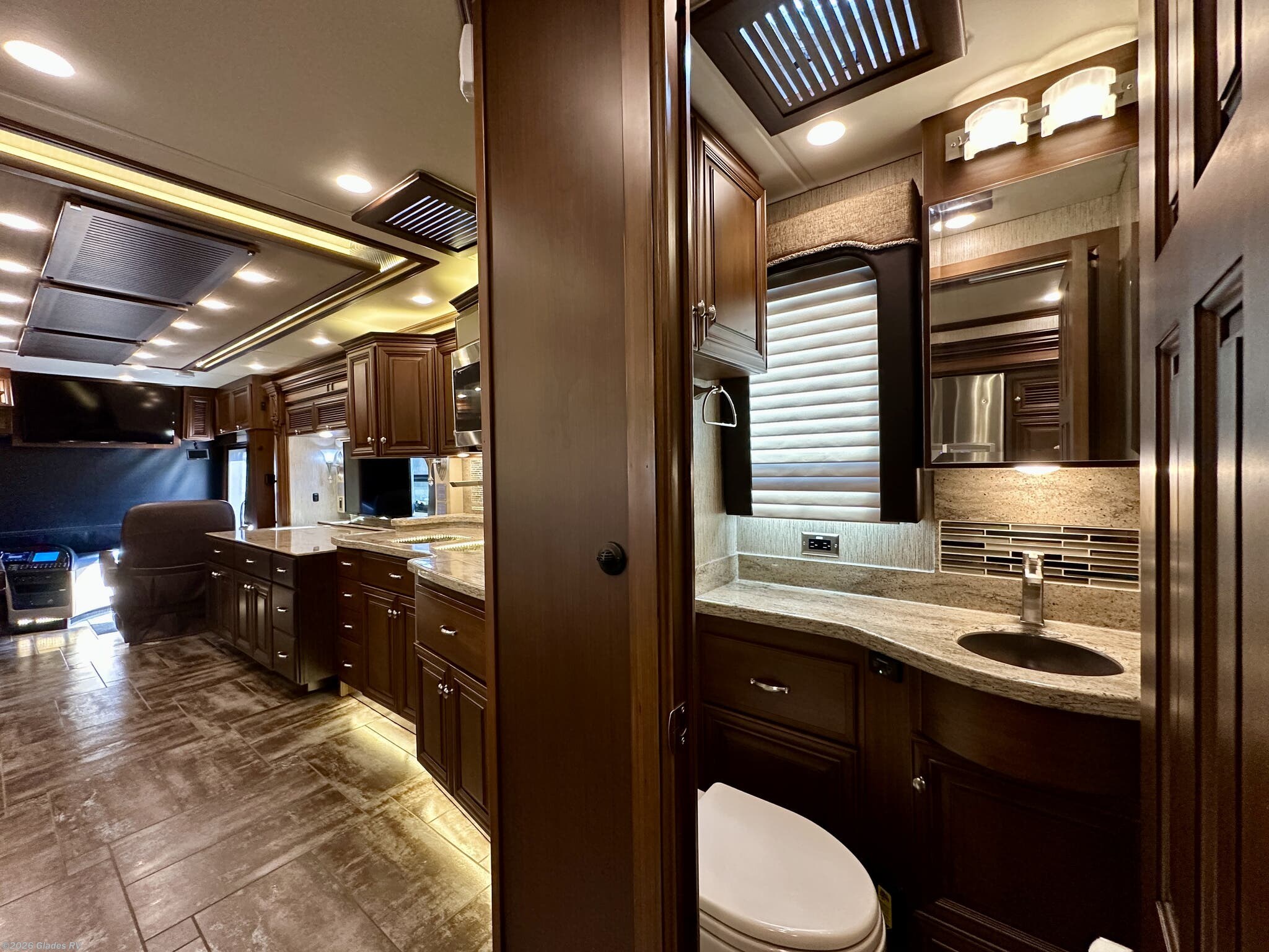 AUTO HYDRAULIC & AIR LEVELING, INTEGRATED GIRARD AWNINGS, POWER & MANUAL SLIDE TRAYS IN BASEMENT, TELEVATOR TV, STACKED WASHER & DRYER, HYDRONIC HEATING, OUTSIDE ENTERTAINMENT, HEATED FLOORS, KING BED, RESIDENTIAL REFRIGERATOR, OUTSIDE FREEZER, POWER SHADES AND MUCH MORE...