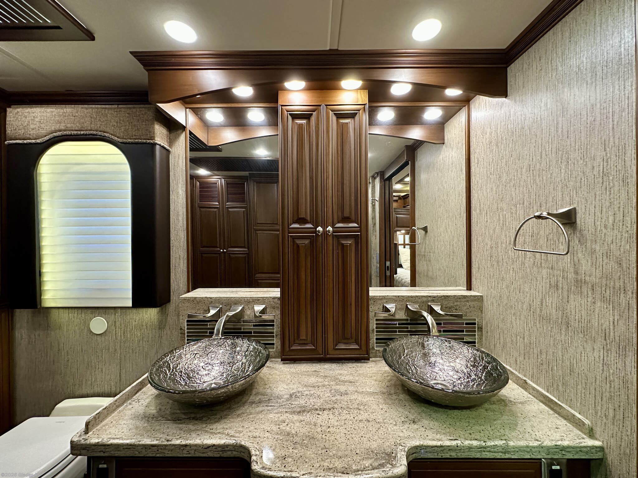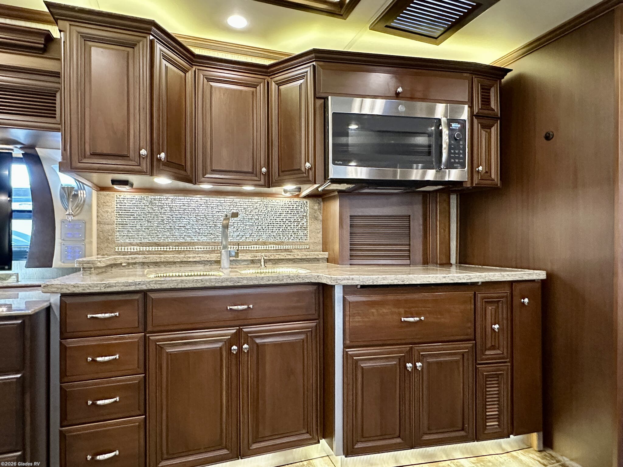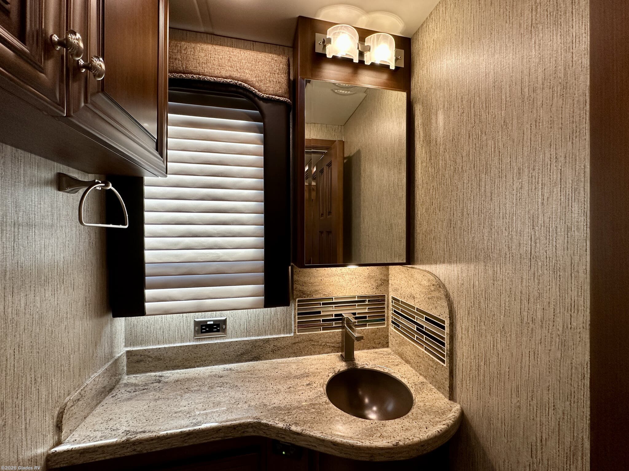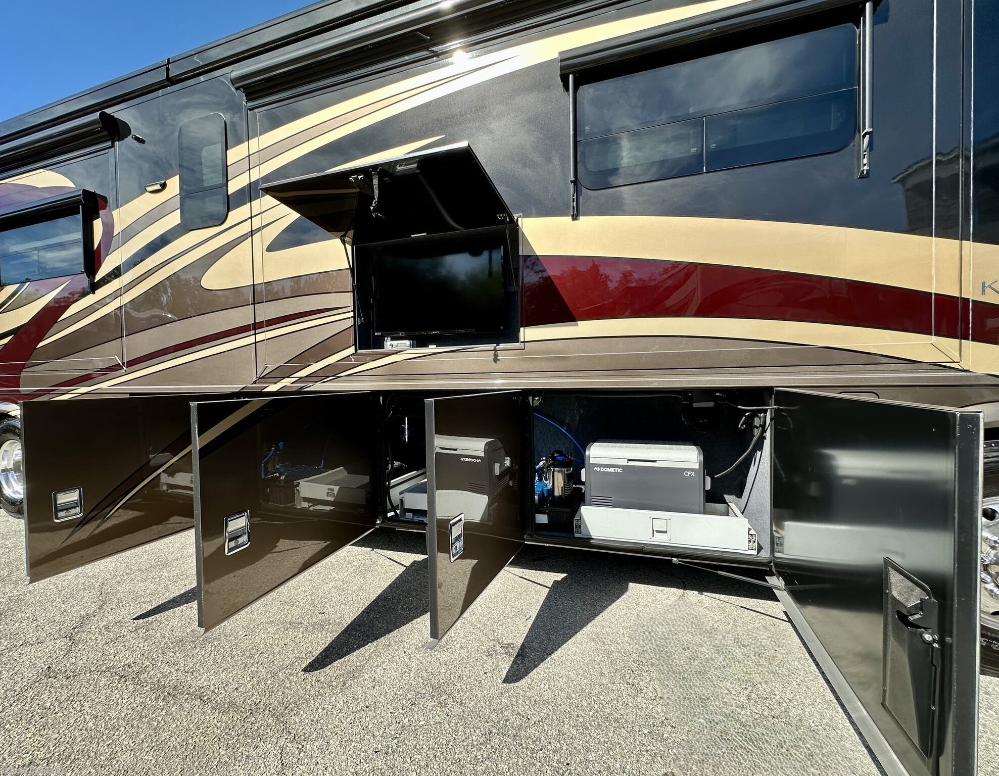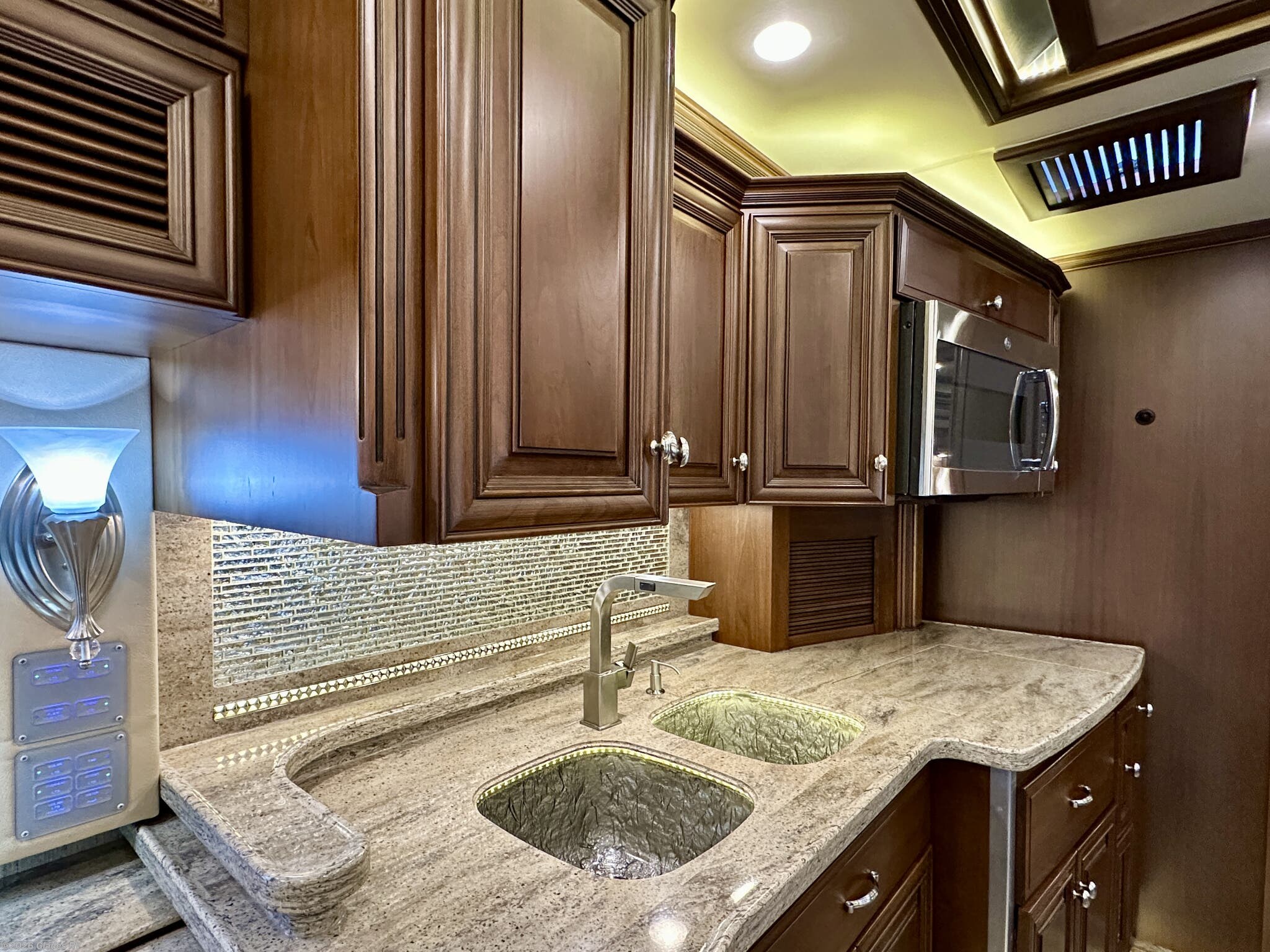 AUTO HYDRAULIC & AIR LEVELING, INTEGRATED GIRARD AWNINGS, POWER & MANUAL SLIDE TRAYS IN BASEMENT, TELEVATOR TV, STACKED WASHER & DRYER, HYDRONIC HEATING, OUTSIDE ENTERTAINMENT, HEATED FLOORS, KING BED, RESIDENTIAL REFRIGERATOR, OUTSIDE FREEZER, POWER SHADES AND MUCH MORE...