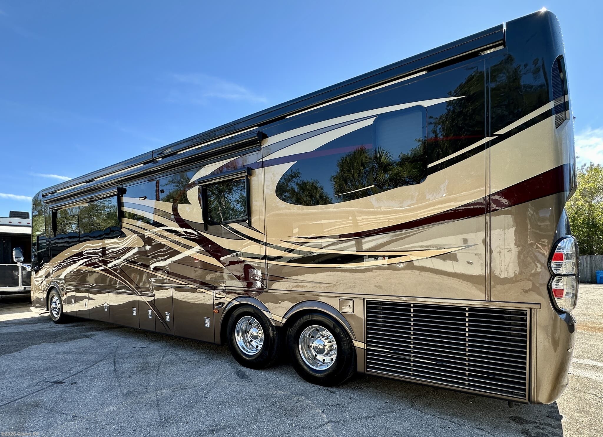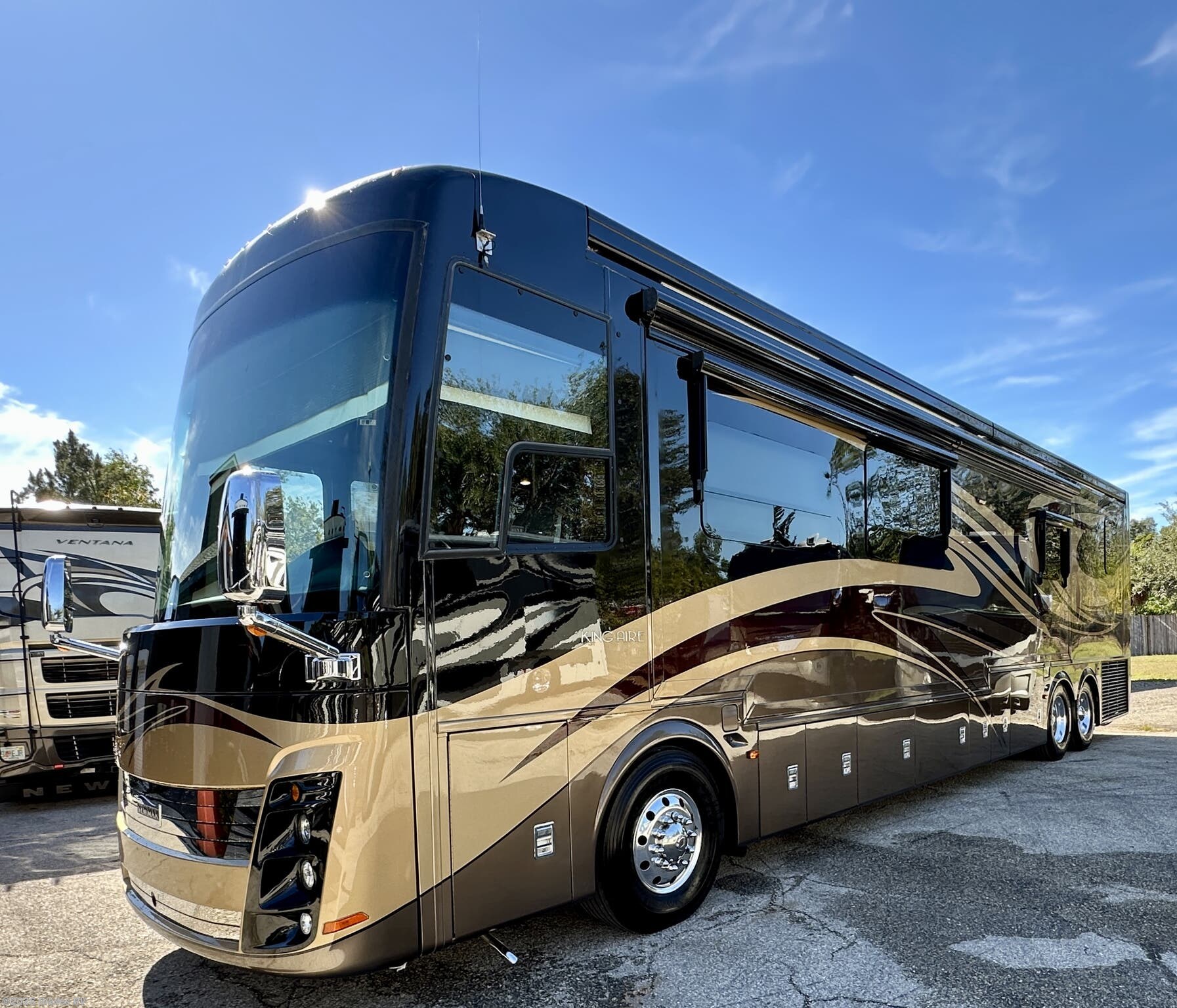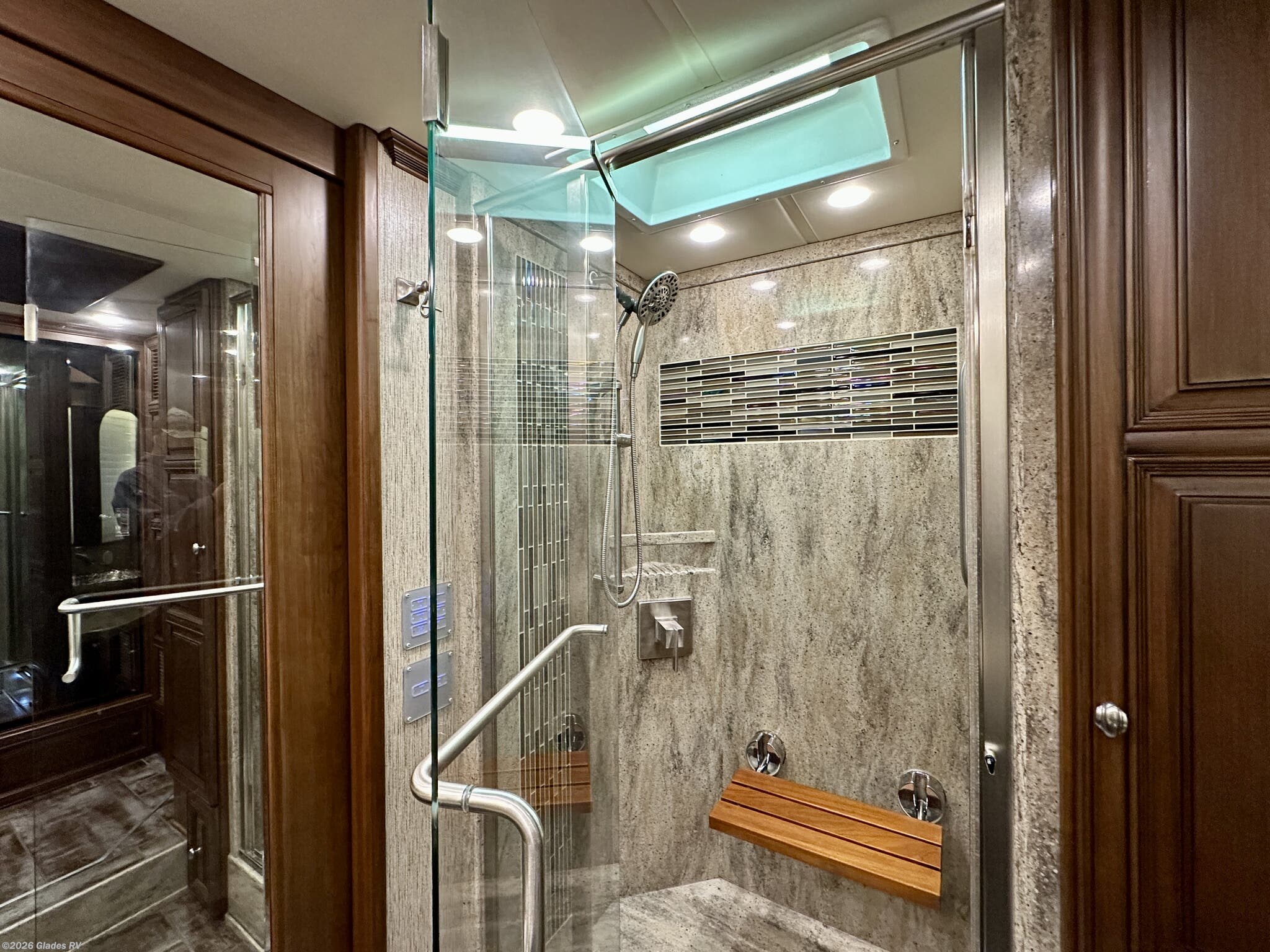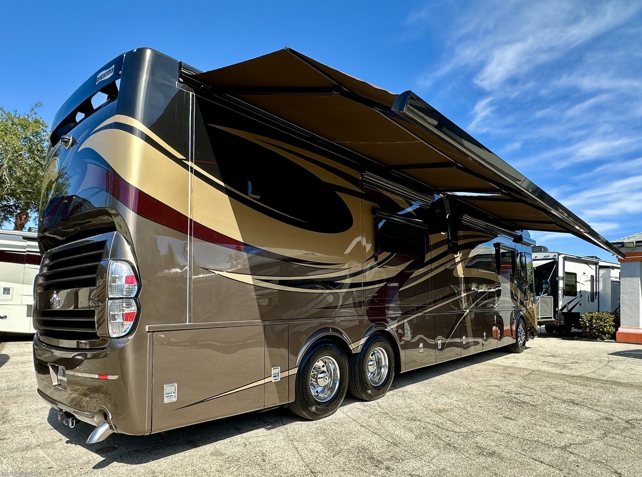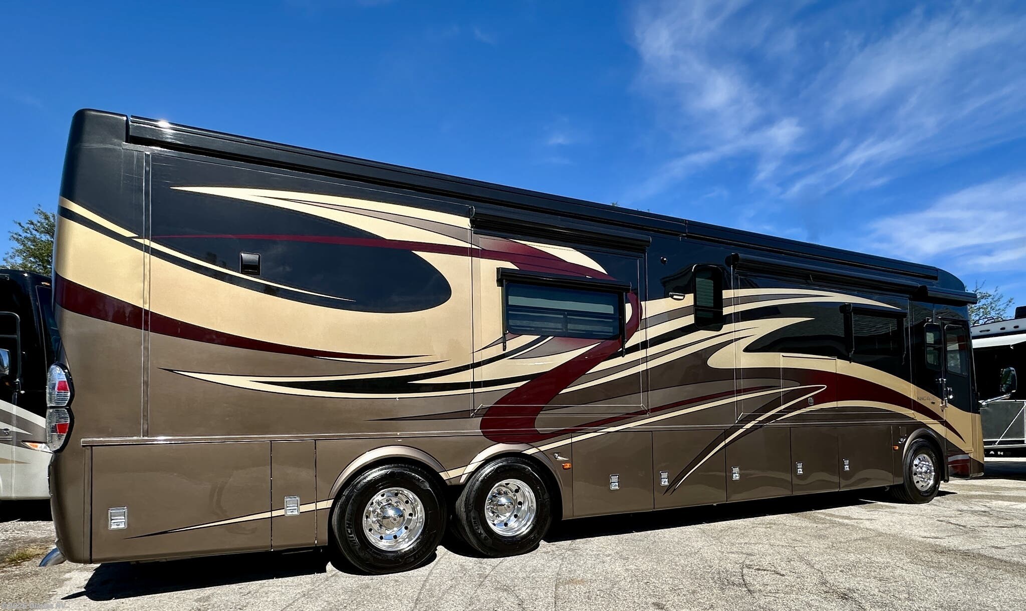 AUTO HYDRAULIC & AIR LEVELING, INTEGRATED GIRARD AWNINGS, POWER & MANUAL SLIDE TRAYS IN BASEMENT, TELEVATOR TV, STACKED WASHER & DRYER, HYDRONIC HEATING, OUTSIDE ENTERTAINMENT, HEATED FLOORS, KING BED, RESIDENTIAL REFRIGERATOR, OUTSIDE FREEZER, POWER SHADES AND MUCH MORE...