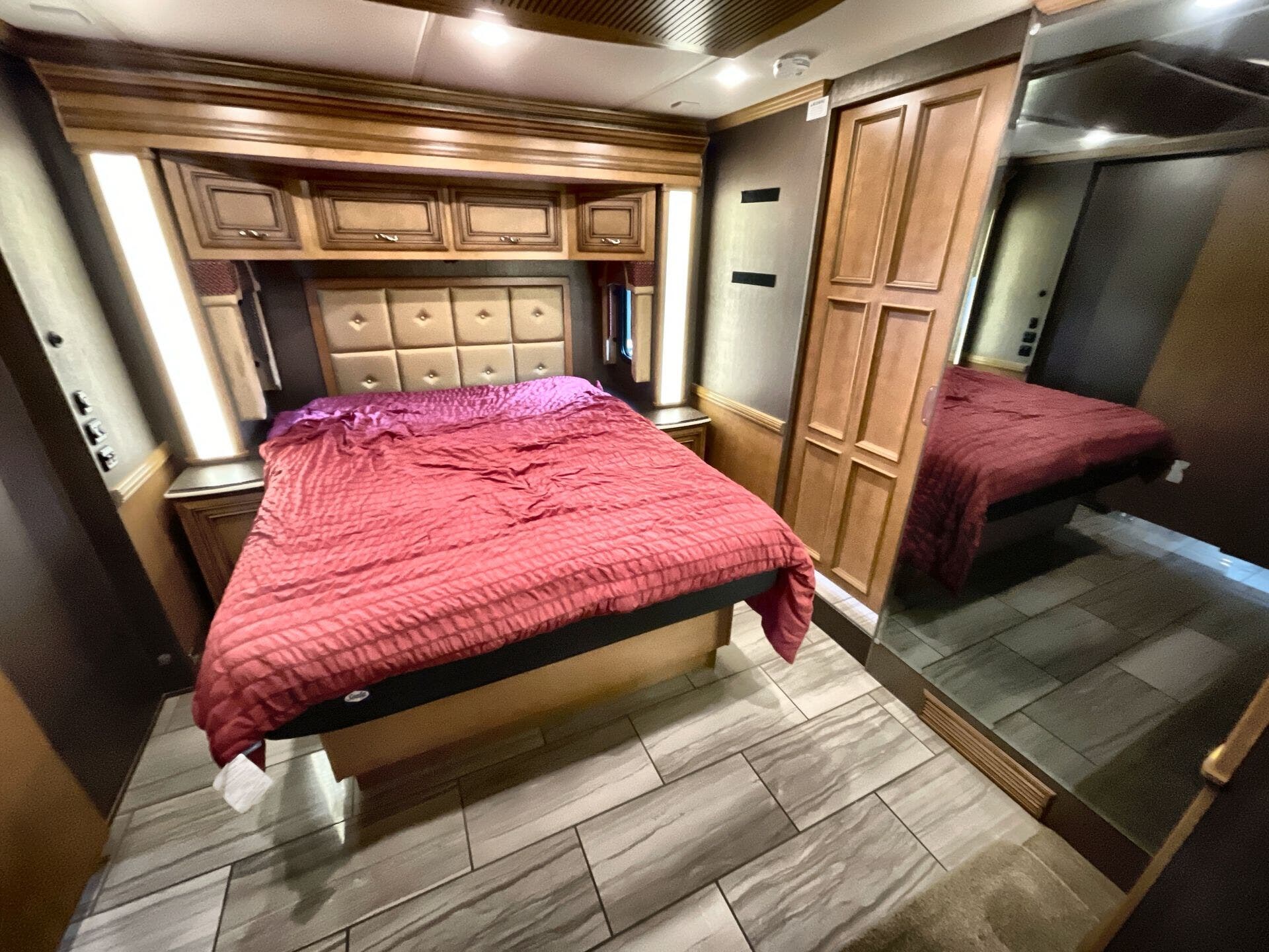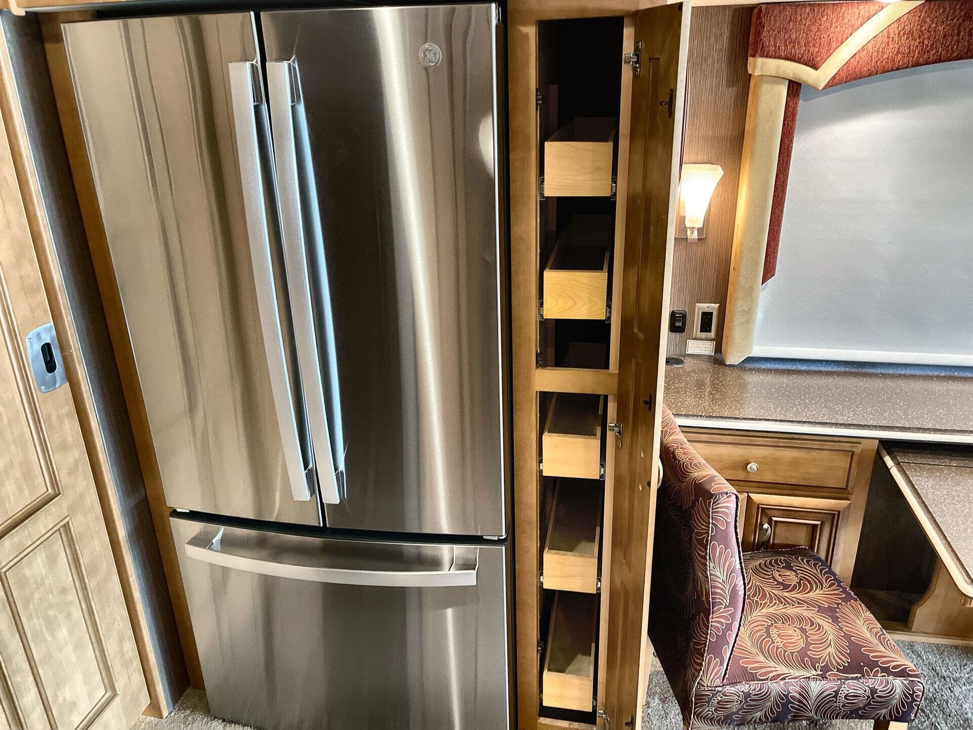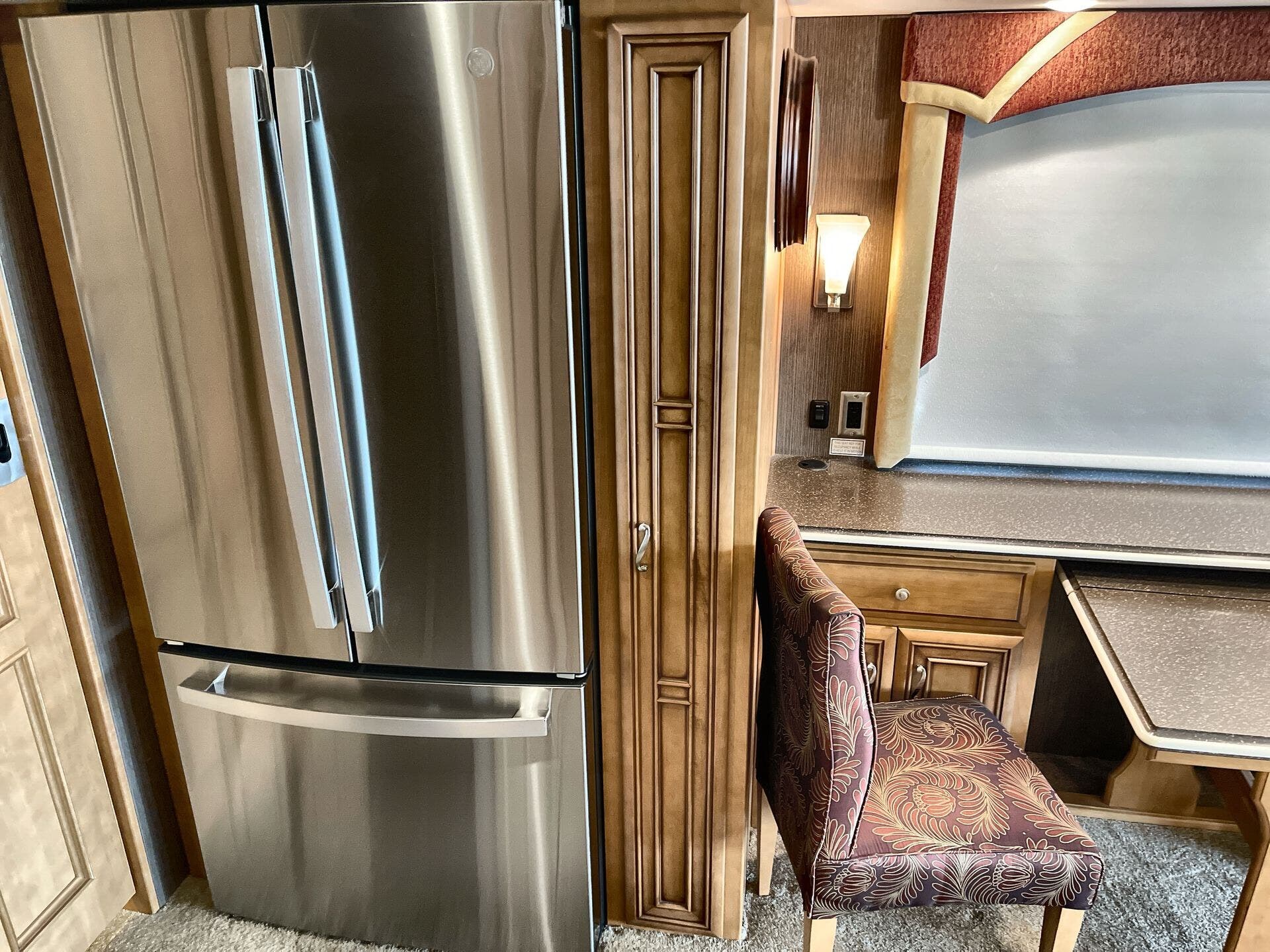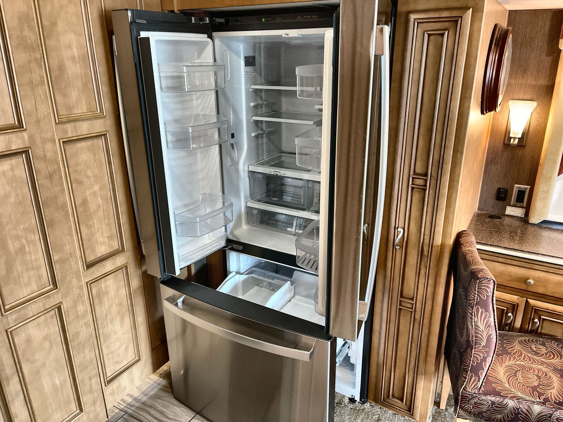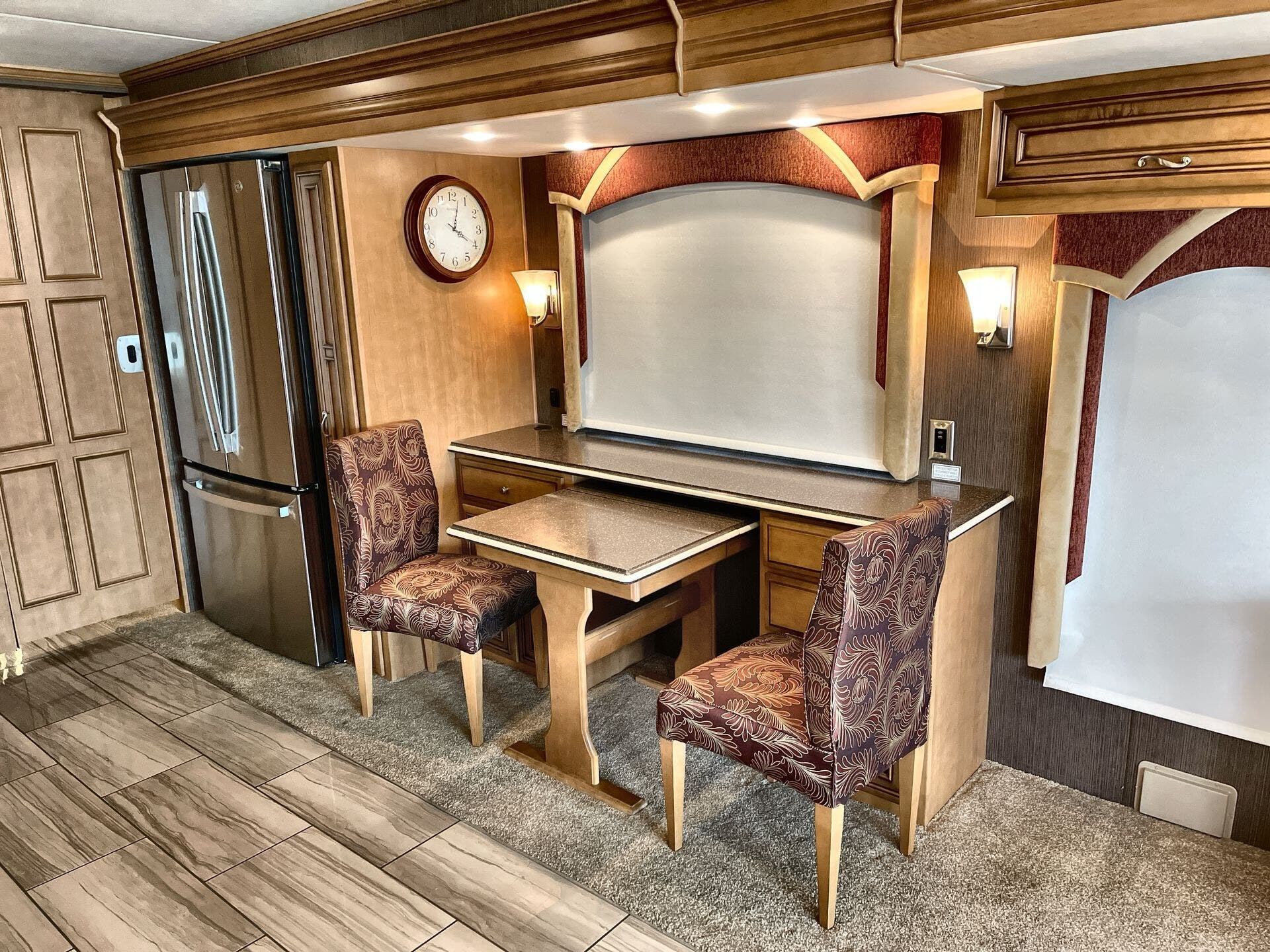 The Ventana offers a versatile floorplan that suits a range of travel needs, featuring Front Entertainment, Mid Bath, Mid Kitchen, Rear Bath, and Rear Bedroom configurations. With three slideouts, the interior feels generous and open, while still providing distinct zones for living, dining, cooking, and sleeping. This layout is ideal for couples or small families seeking a high-end, move-in ready RV experience.
