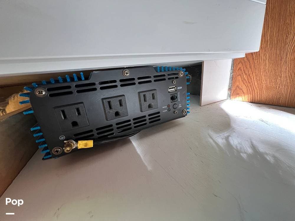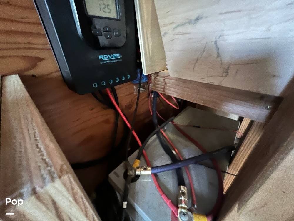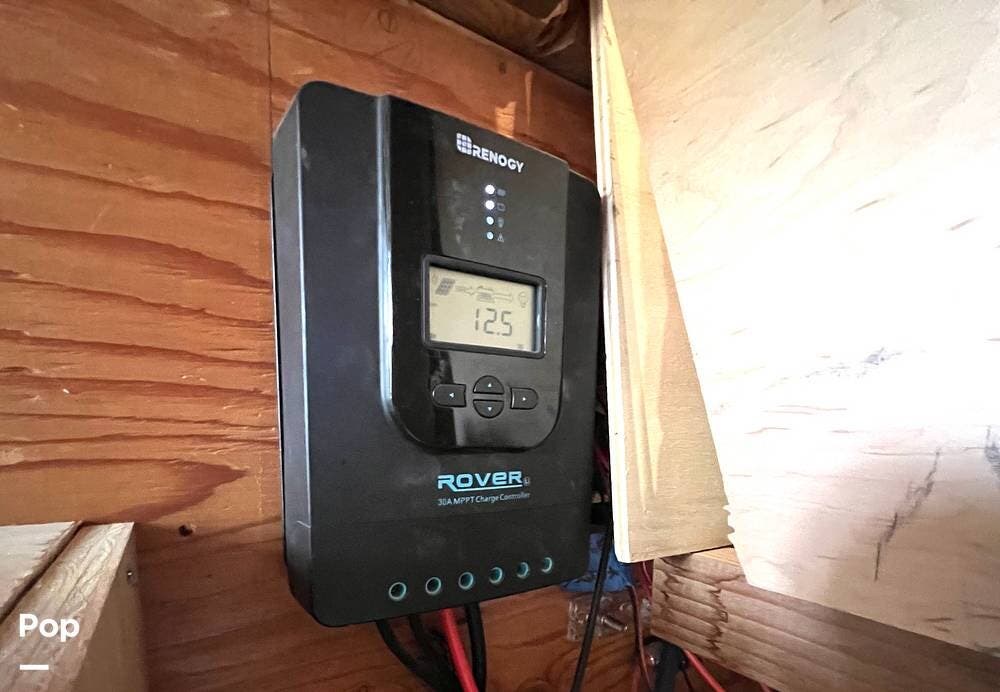 Keeping things charged are two 100W monocrystalline panels (200W total) with a Renogy 12V 200Ah deep-cycle AGM charge controller and a Renogy Rover MPPT 30A unit.