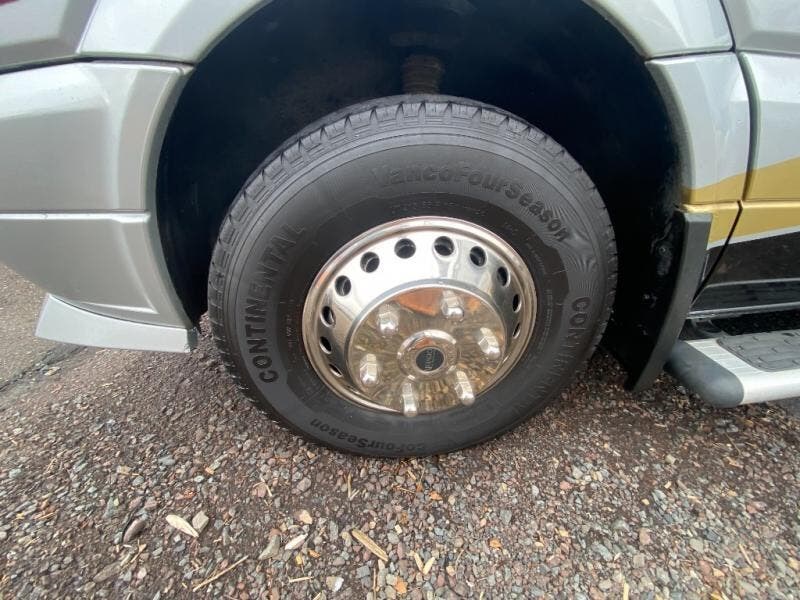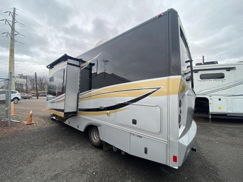 Make travel time easy in this Renegade Villagio class B+ motor home. Model 25QRS features dual slides for added interior space, and loads of amenities for comfort.