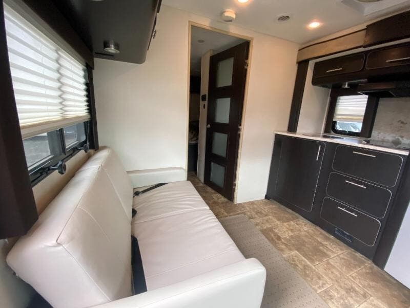 As you step inside there is a sofa slide straight ahead that can also become additional sleeping for two at night.