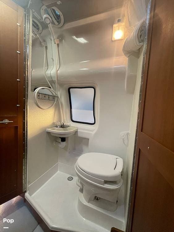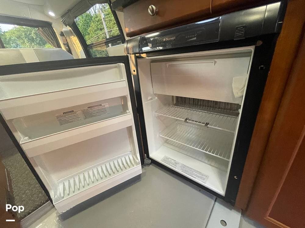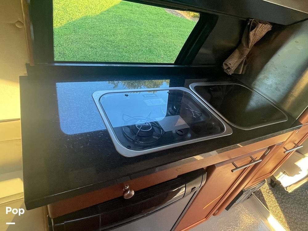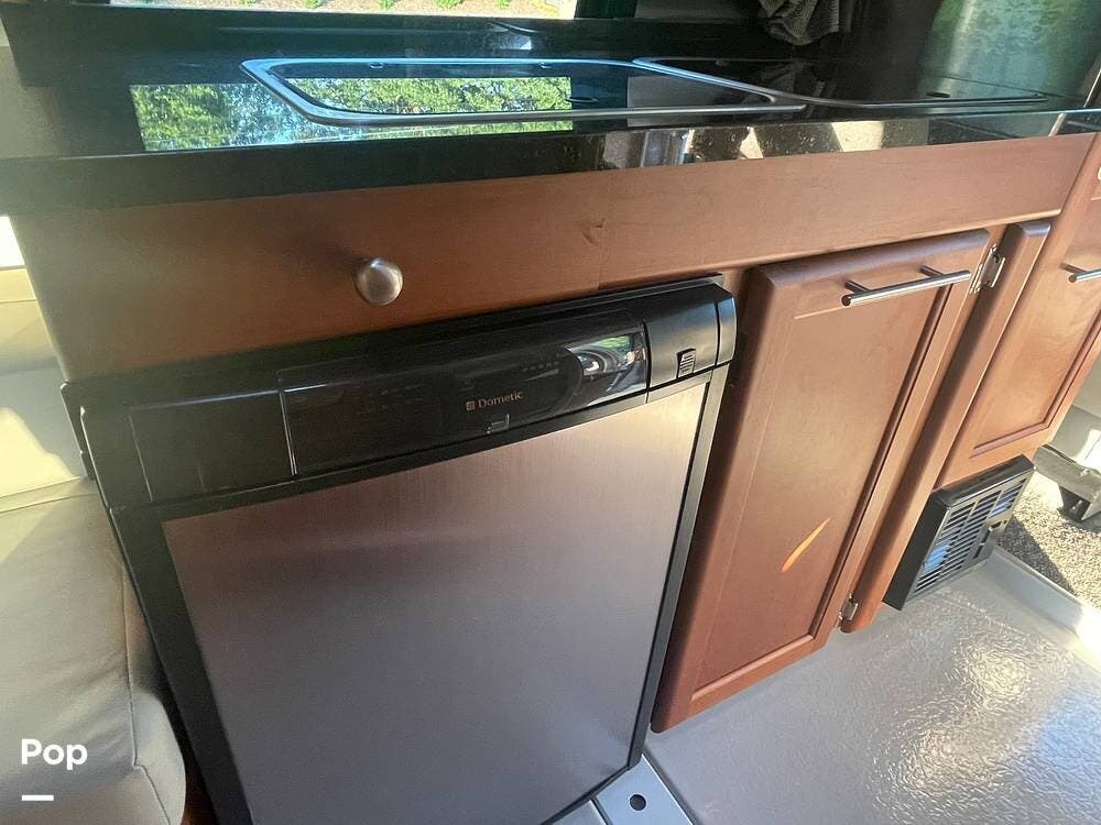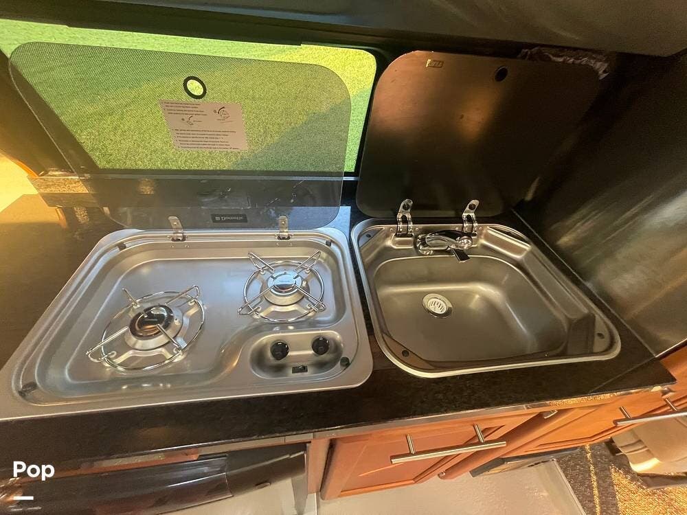 The kitchenette is equipped with a stove, sink, and refrigerator, making it easy to prepare meals on the go. There is also an under hood 2.8lw generator!