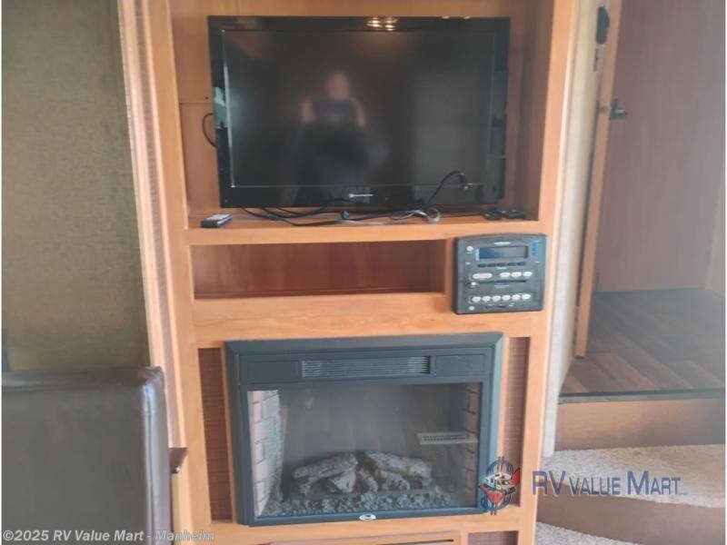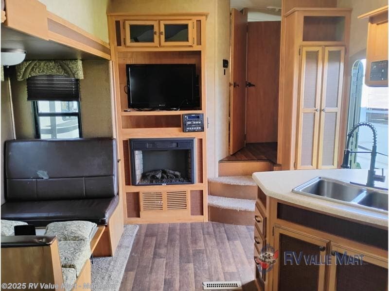 Step inside model 28BH and notice first the spaciousness created when the slide out sofa and booth dinette are fully extended. There is an entertainment center nearby just beyond the steps up front that can easily be viewed from any seating in the room. You can choose to add an optional 32" TV with optional fireplace below.