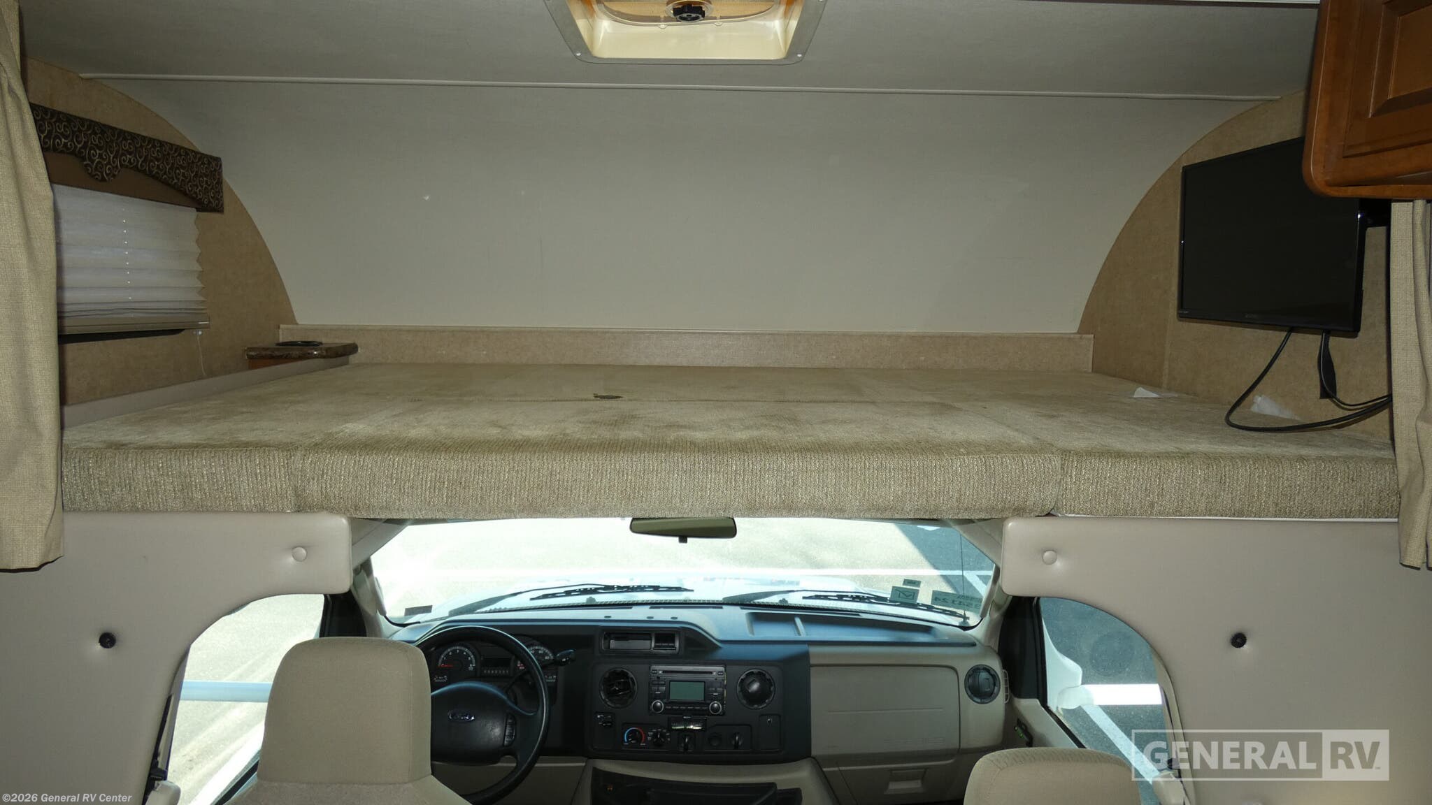 Step into adventure with the 2014 Thor Motor Coach Four Winds 22E, where comfort meets convenience in a compact yet spacious design. This motorhome offers a delightful blend of practicality and style, perfect for families or couples looking to explore the open road. With its Ford E350 chassis and robust Triton V10 engine, you can enjoy a smooth and powerful drive, whether you're cruising through scenic routes or navigating bustling city streets. Inside, the 22E floorplan is thoughtfully arranged to maximize space and functionality. The front living area features a cozy cab-over bunk and a versatile U-shaped dinette, which effortlessly converts into an additional sleeping space. The center kitchen is equipped with a mid-size refrigerator and a three-burner cooktop, making meal preparation a breeze. At the rear, you'll find a comfortable double bed and a compact bathroom with a shower curtain, ensuring restful nights and refreshing mornings. With a 15 ft. powered retractable awning, you can extend your living space outdoors, perfect for relaxing under the stars. Visit your nearest General RV dealership to experience the Four Winds 22E for yourself and start your journey today!