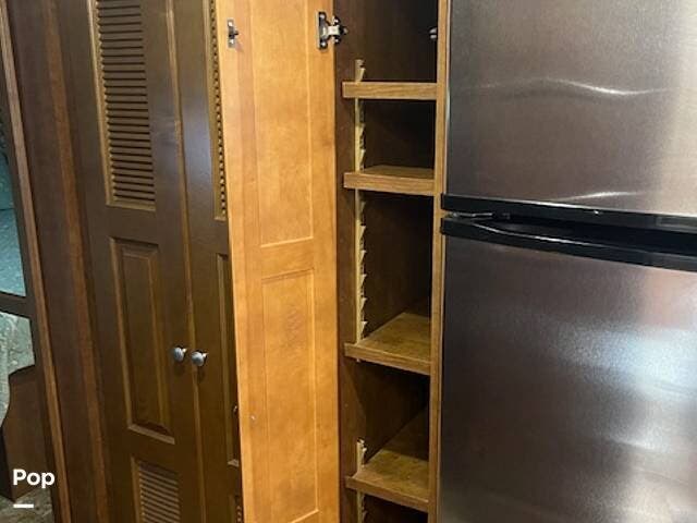 The 2014 Palazzo (by Thor Motor Coach) 33.2 opens to a spacious living area with dual slides. The large slide accommodates the kitchen and eating booth along with the washer dryer in refrigerator. The fixed wall side has the queen size sofa bed and bathroom