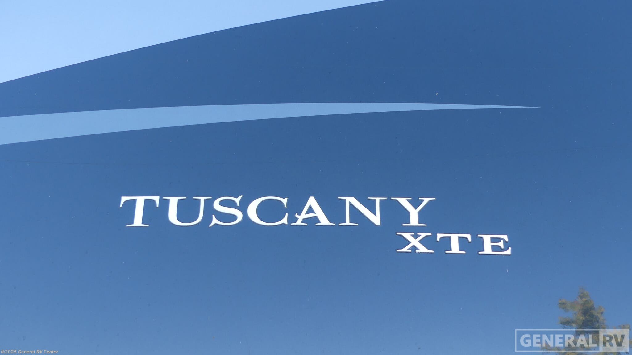 Tuscany XTE Class A Diesel by Thor Motor Coach w/Rear Full Bath Including: Angle Shower, Linen, Wardrobe, Toilet Sink, Slideout King Bed w/Nightstands, 32" LCD TV/Chest of Drawers/Linen/Washer/Dryer Prep/Pantry/Cantilever Buffet Dinette 84" Expanding Sofa Full Wall Slide on Passenger Side, 40" LCD TV w/Fireplace Below, Refrig.,/C-Top Pull-Out/3 Burner Range w/Microwave Dbl. Kitchen Sink w/2nd C-Top Area Extension (Flip-Up), 1/2 Bath w/Vanity Sink and Much More!