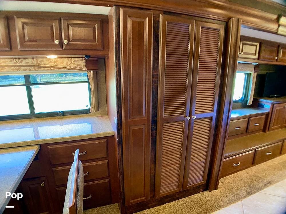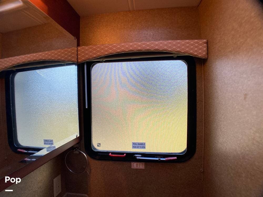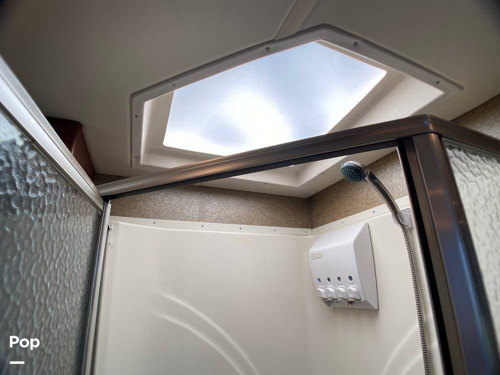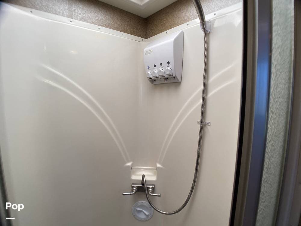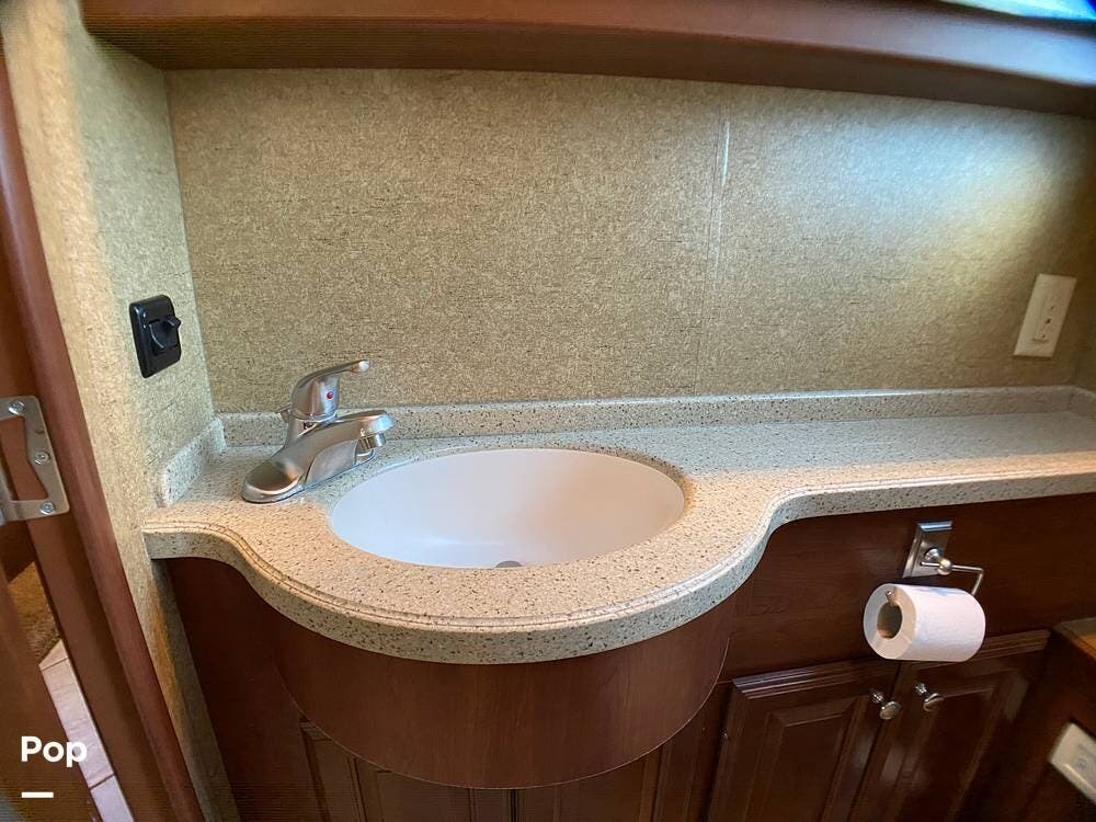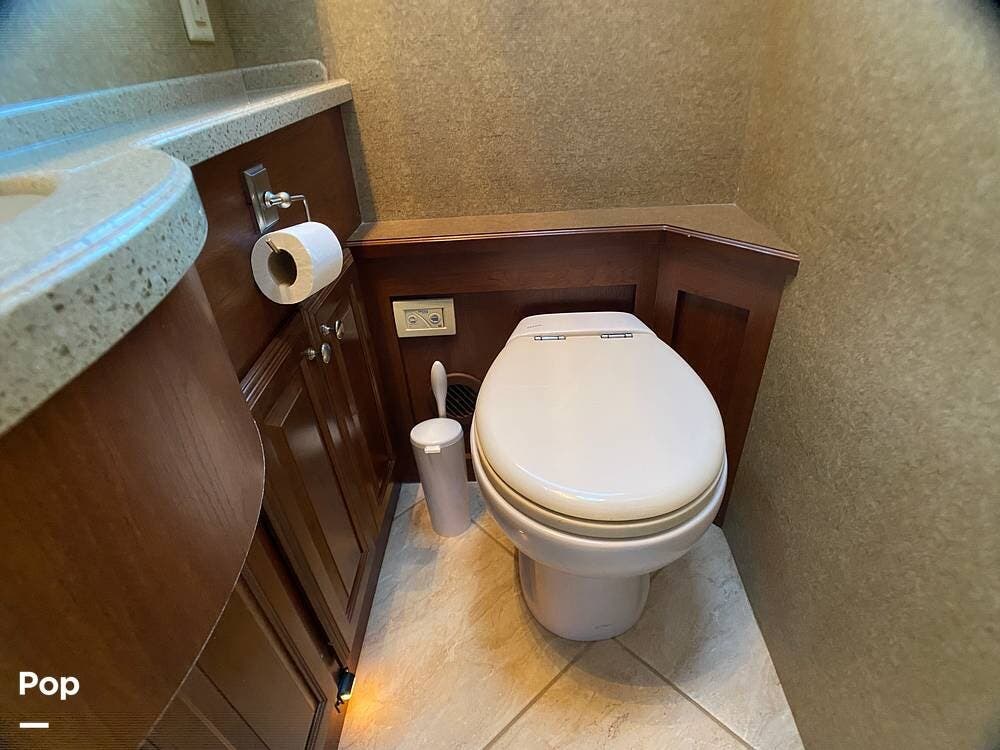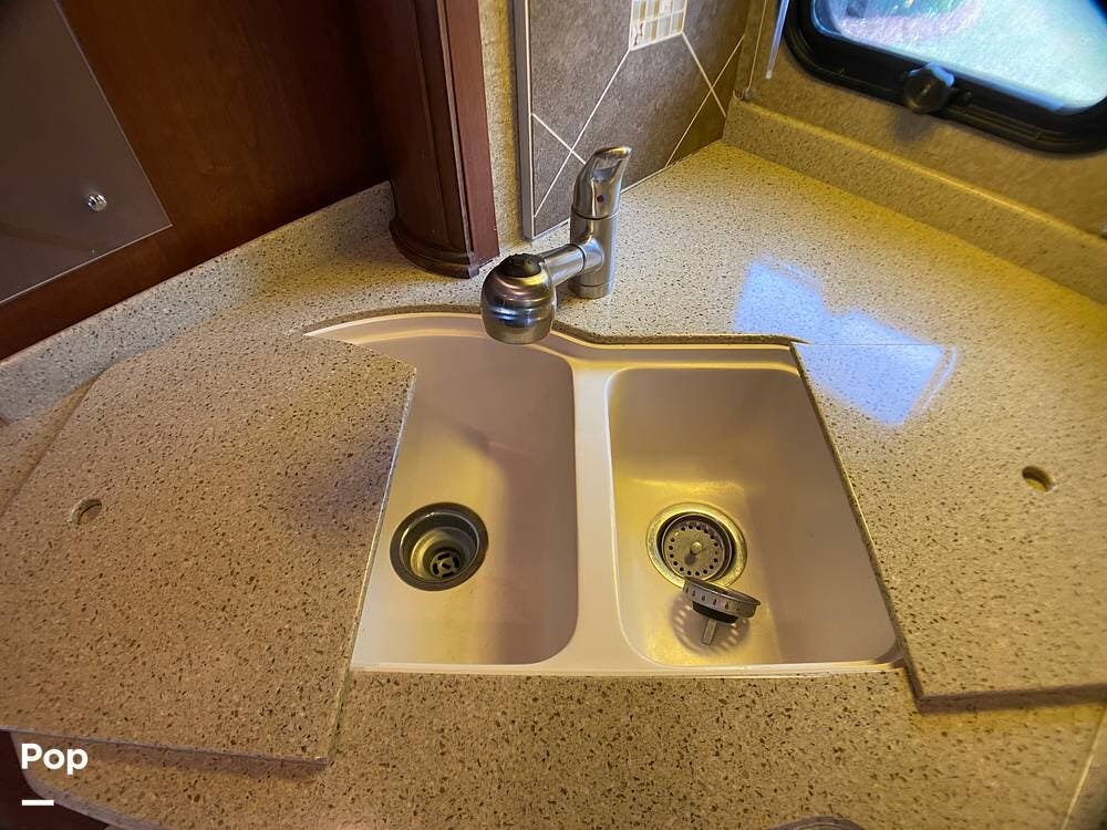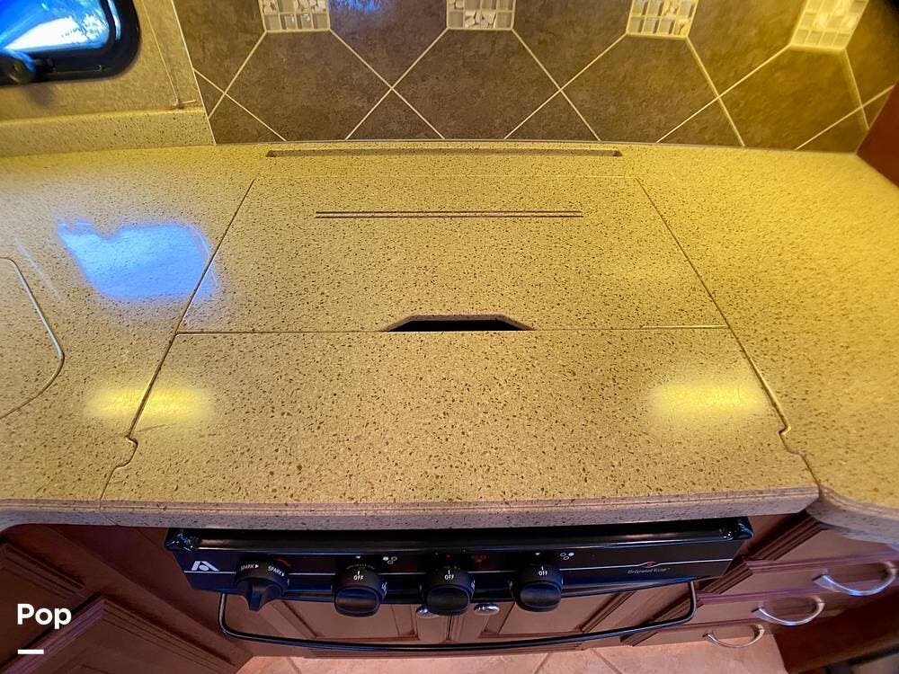 The main living area has an expanding sofa with a twin air bed that faces an entertainment center with a 46" HDTV over a fireplace. There is a second TV in this area above the windshield where you will also find plenty of cabinet storage.