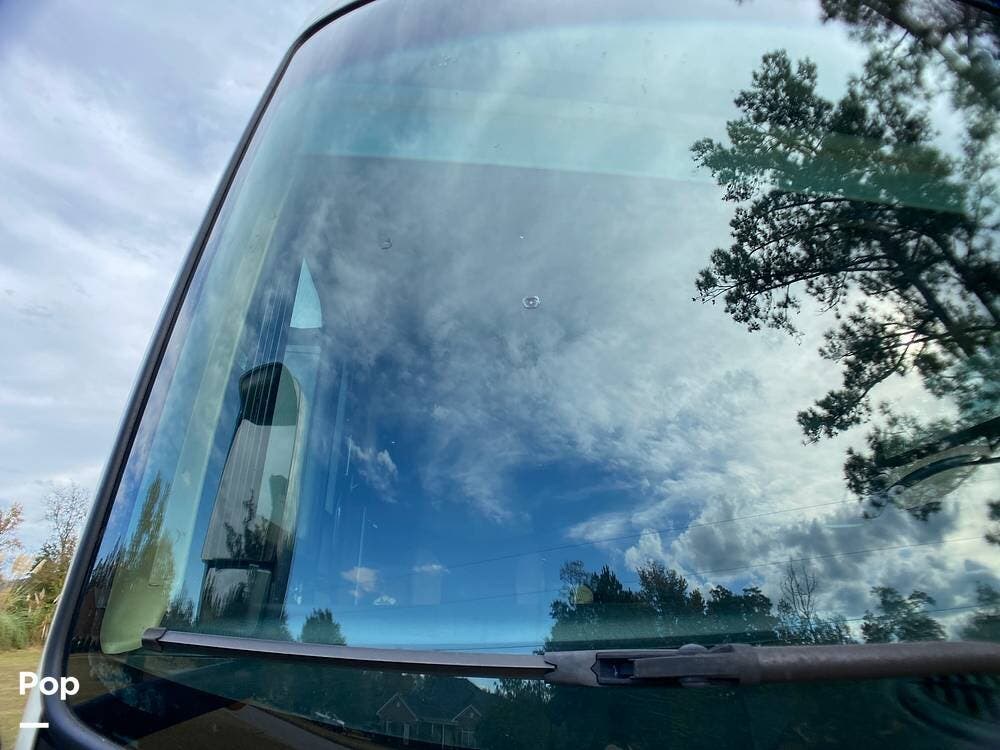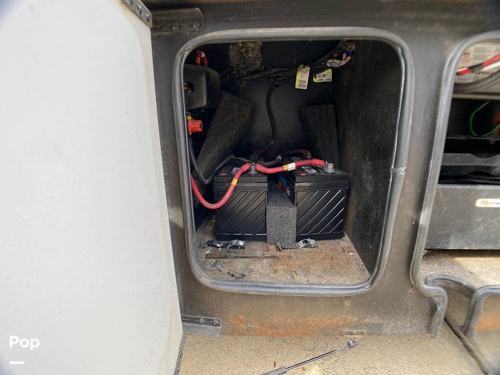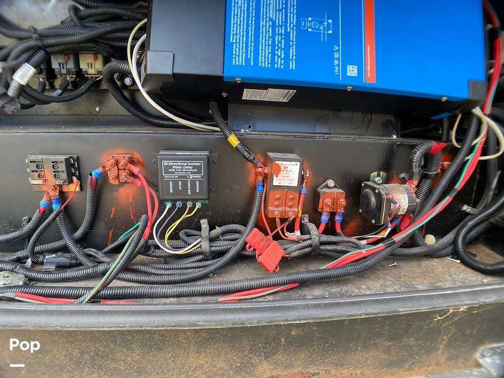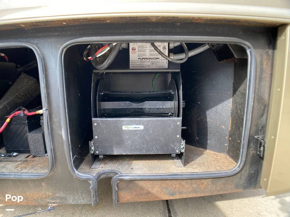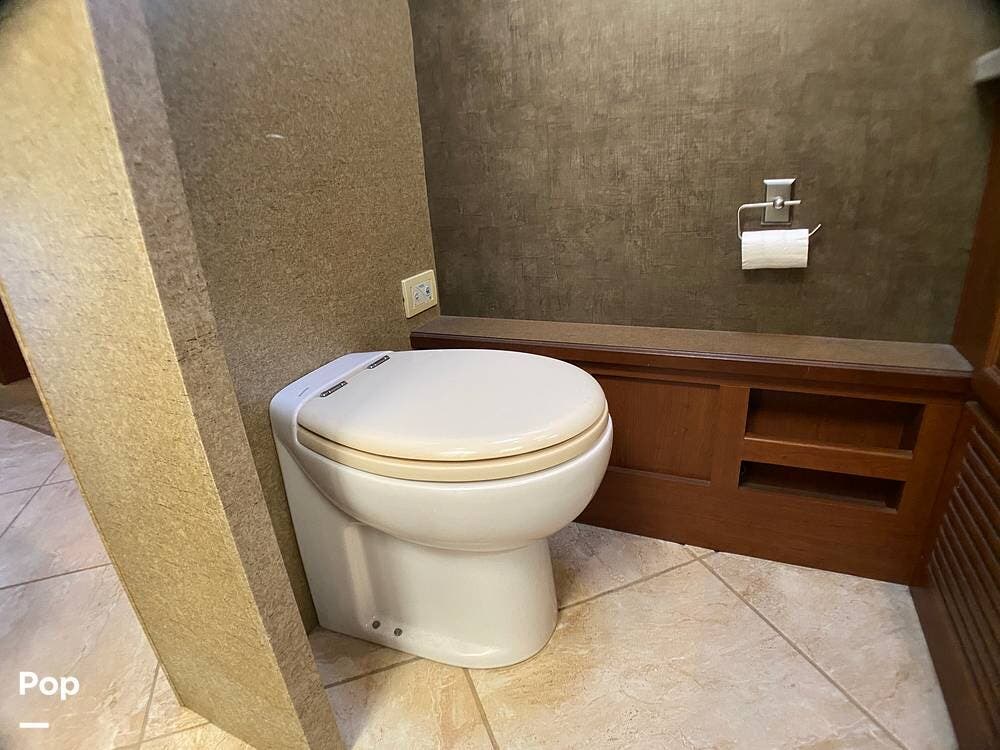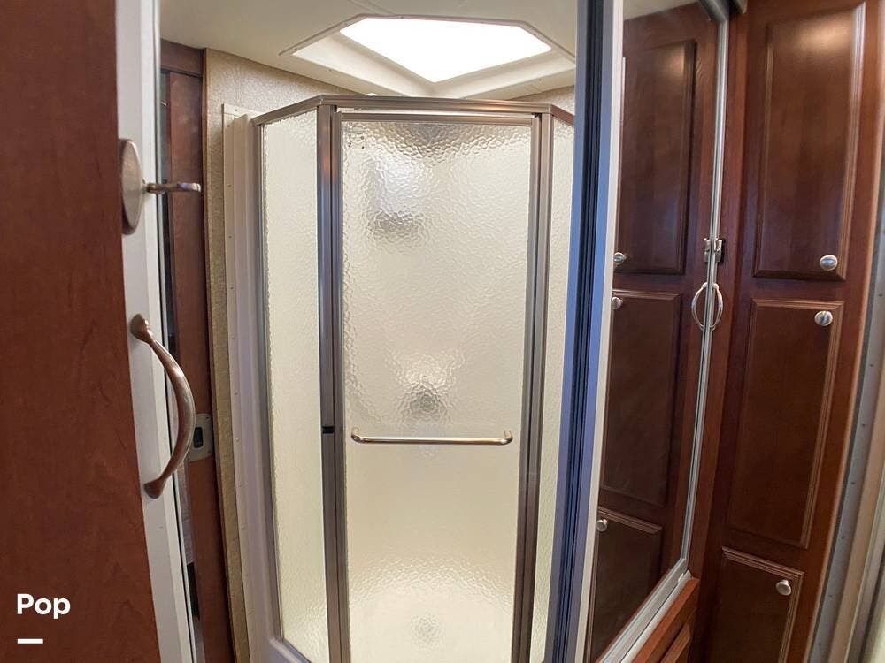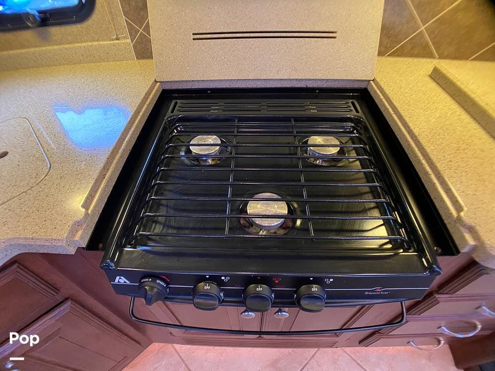 The main living area has an expanding sofa with a twin air bed that faces an entertainment center with a 46" HDTV over a fireplace. There is a second TV in this area above the windshield where you will also find plenty of cabinet storage.