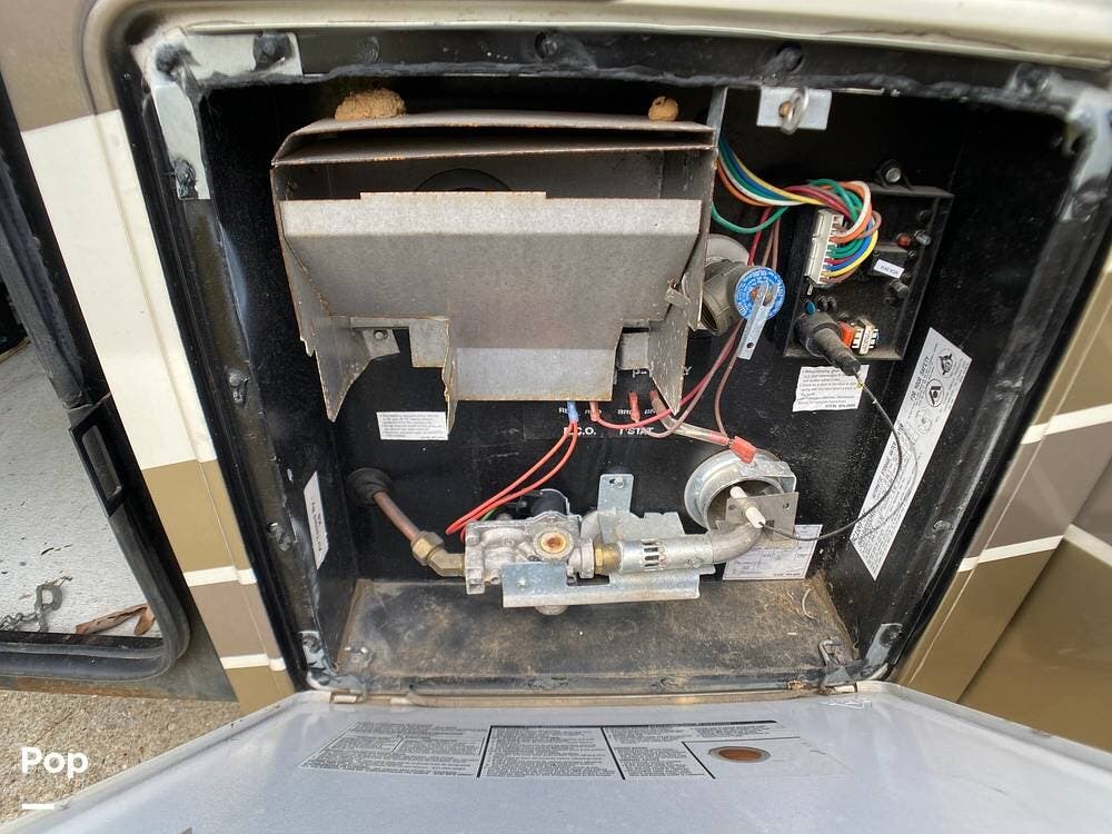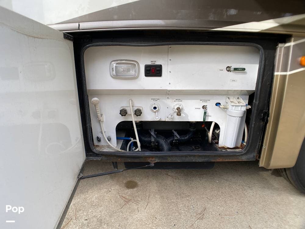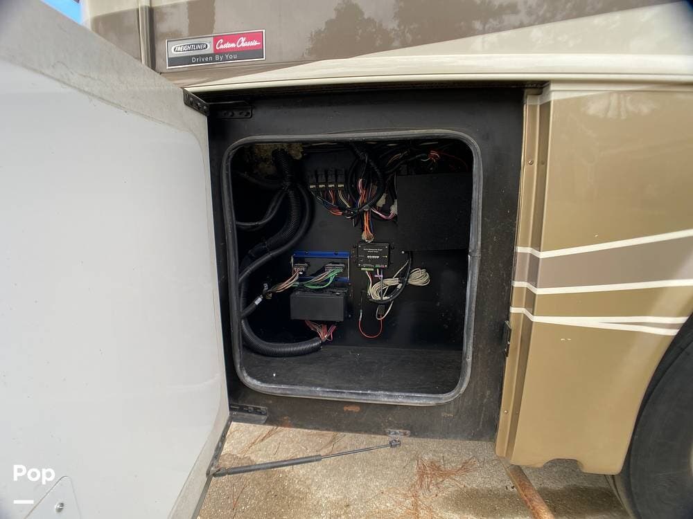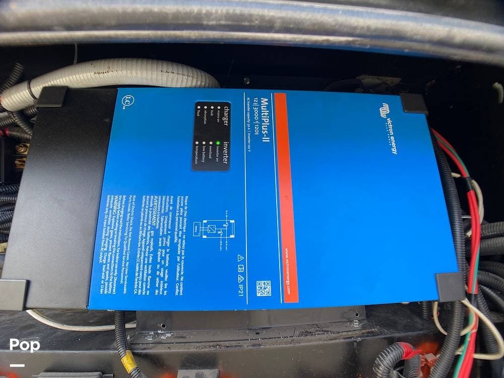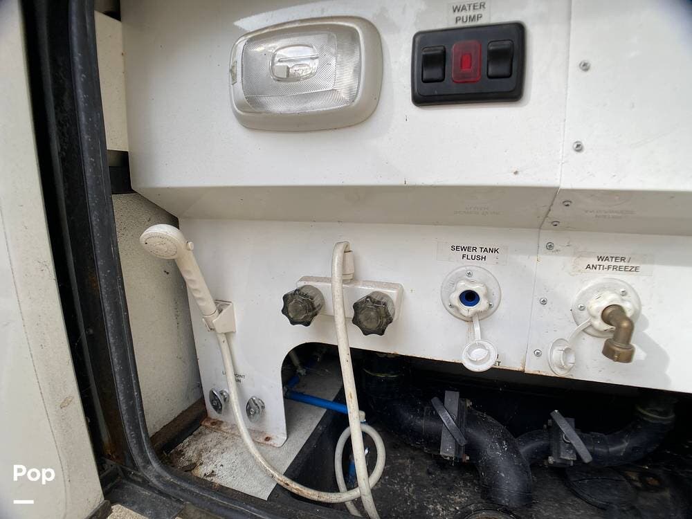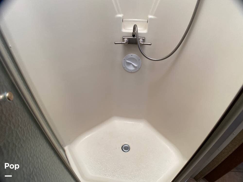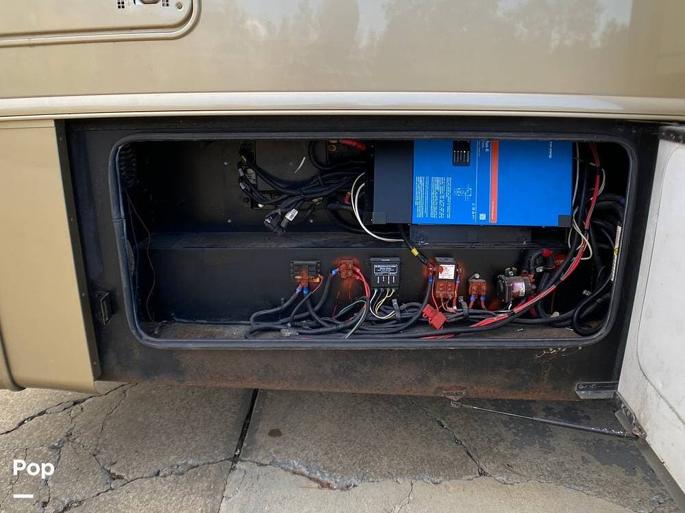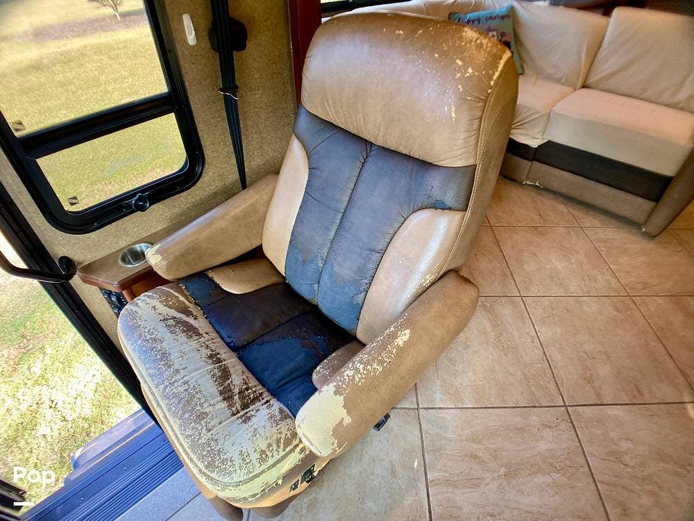 The main living area has an expanding sofa with a twin air bed that faces an entertainment center with a 46" HDTV over a fireplace. There is a second TV in this area above the windshield where you will also find plenty of cabinet storage.