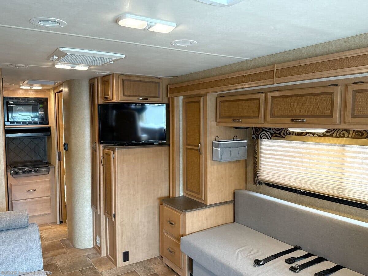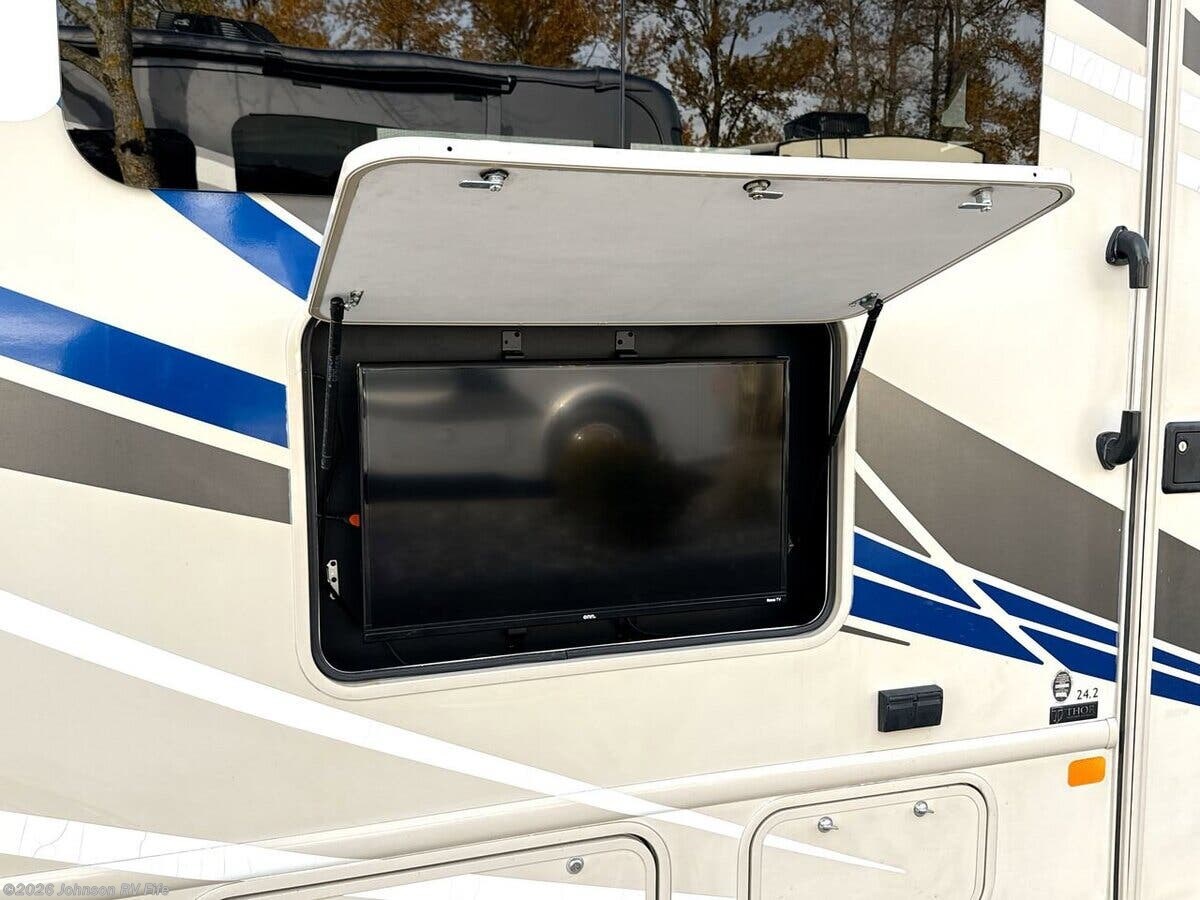Features Include: 16-inch Tires, Map Lights, SiriusXM, Tilt Steering Wheel, Entry Grab Handle, Lighted Stepwell, Entry Door Deadlock, 82-inch High Ceiling, Vinyl Ceiling, Euro Style Cabinetry, Waste Bin, Countertop Extension, Sink Cover, Cooktop Glass Cover, Convection Microwave, Systems Center, 7-inch Touchscreen, Backup Camera, Cable TV Ready, USB Charging Station, 32-inch TV, Linen Storage, Shower, 40.9# LP Tank, 30k Furnace, 15k Roof AC, 360 Siphon Vent Cap, Vacu-Bond Laminate, Fiberglass Front Cap, Roof Access Ladder