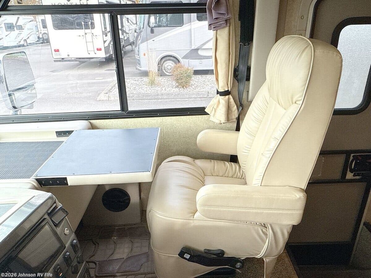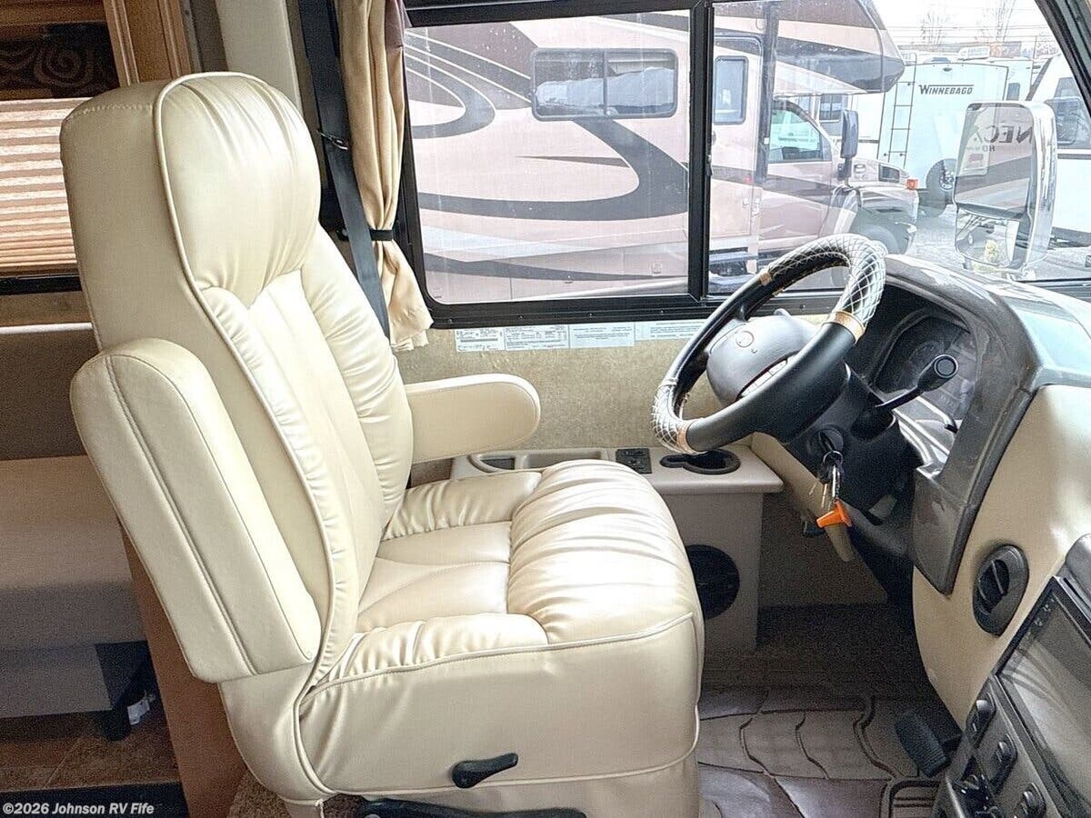 The 2014 Thor Motor Coach Vegas RUV is a versatile and compact recreational vehicle designed for those who seek adventure without sacrificing comfort. This Class A motorhome is built on a sturdy Ford E-Series chassis, powered by a robust Triton 6.8L V10 gas engine that delivers 305 horsepower and 420 lb-ft of torque. The TorqShift 6-speed automatic transmission ensures smooth driving, while the twin I-beam front suspension and power 4-wheel anti-lock disc brakes provide stability and safety on the road. The vehicle is equipped with stainless steel wheel liners and 16-inch tires, along with rear wheel valve stem extenders for easy maintenance. An 8000# hitch with a 7-pin connector is included for towing needs. Inside the cab, you'll find a range of features designed for convenience and comfort. The power drop-down hide-away bunk with a cotton cloud mattress and ladder offers additional sleeping space. A windshield power privacy shade, reclining swivel leatherette cab seats, and a stow-away coffee table enhance the driving experience. The dash workstation comes with 110v and 12v outlets, map lights, a touchscreen radio/navigation monitor, and SiriusXM capability. Additional features include a tilt steering wheel, heated remote camera side mirrors, an emergency engine start switch, and cruise control. The living spaces in the Vegas RUV are thoughtfully designed for relaxation and functionality. A power awning with integrated LED lights provides outdoor comfort, while rubber tread entry steps, an entry grab handle, and a lighted stepwell ensure safe access. The interior boasts residential vinyl flooring, an 82-inch high ceiling, and vinyl ceiling with LED interior lighting. Frameless tinted windows and premium privacy roller shades offer both style and privacy. The leatherette upholstery, leatherette jack-knife sofa, Euro-style cabinetry, contemporary cabinet hardware, and soft-close hidden hinges add a touch of elegance. Full extension drawer guides provide easy access to storage. Dining in the Vegas RUV is a pleasure with the leatherette dream dinette and removable pedestal table. The kitchen features pressed laminate countertops with a countertop extension, an undermount stainless steel sink with a cover, and a faucet pull-down sprayer. Cooking is made easy with a double door RV refrigerator, a 1-gas burner and 1-induction cooktop with a glass cover, cooking protection, task lighting, and a convection microwave. A 12v attic fan with a switch ensures proper ventilation. The vehicle is equipped with advanced electronics for entertainment and convenience. The systems control center, RapidCamp+ multiplex wiring control, and a 7-inch touchscreen provide easy access to various functions. A back-up camera, cable TV readiness, HD/DSS satellite readiness, digital TV antenna signal booster, and WiFi Ranger WiFi extender keep you connected. The upgraded living area speakers, along with a 32-inch or 40-inch TV and a 32-inch outdoor TV with a soundbar, offer entertainment options. Sleeping arrangements are comfortable and flexible, with a flip-up queen bed, twin sofa king conversion, bedspread and pillow shams, USB charging station, and a dedicated 12v CPAP outlet. A 32-inch TV in the sleeping area and a 12v exhaust vent with a cover add to the convenience. The bathroom is well-appointed with a medicine cabinet mirror, vanity stainless steel sink, linen storage, shower, porcelain foot flush toilet, and a 12v exhaust vent with a wall switch. Mechanically, the Vegas RUV is equipped with an auxiliary house battery, battery disconnect switch, solar prep with a controller, Onan RV QG 4.0 gas generator, automatic generator start, auto transfer switch power protection, 30-amp detachable service cord, 40.9# LP tank, 30k furnace, 15k roof AC, Girard tankless hot water, black tank flush system, and a 360 siphon vent cap. An outdoor shower adds to the convenience. The coach build features HD-MAX with a graphics package, welded tubular steel floor, welded aluminum structure, vacu-bond laminate, fiberglass front cap, premium seamless TPO roof, roof access ladder, lighted rotocast storage compartments, flush mount compartment doors, and a slideout topper awning. This combination of features makes the 2014 Thor Motor Coach Vegas RUV a reliable and comfortable choice for your next adventure. ???
