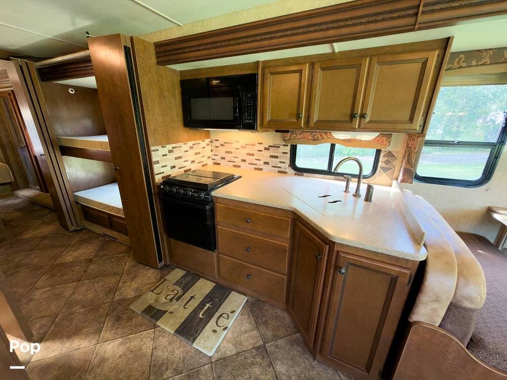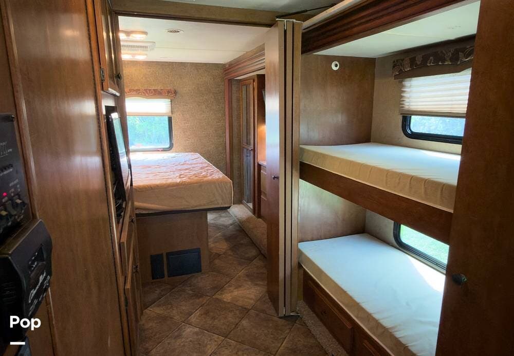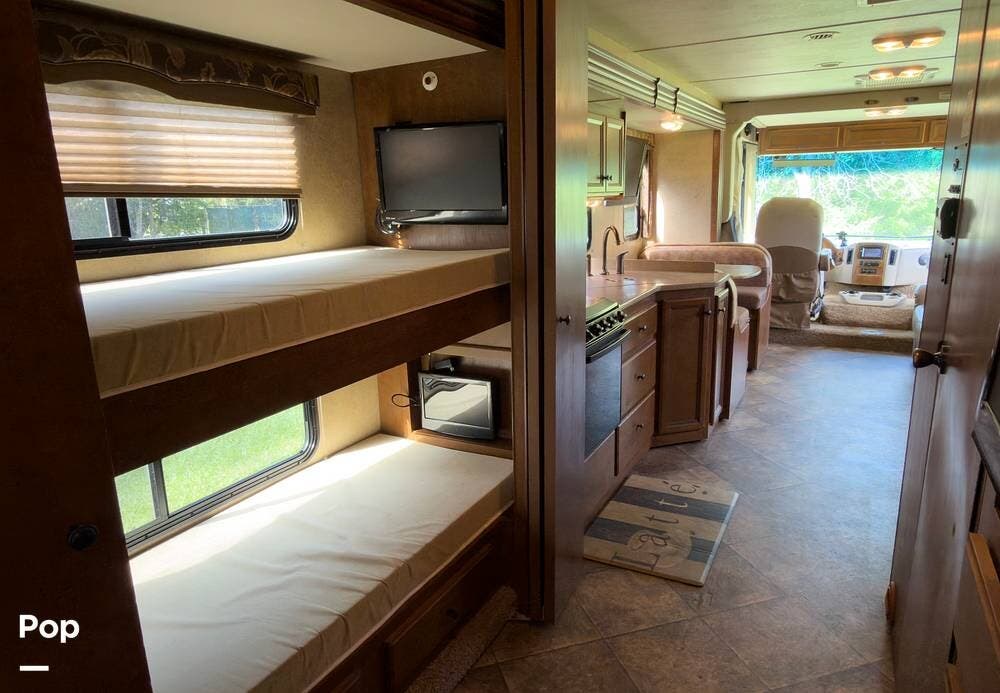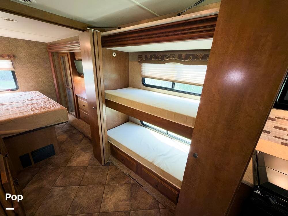 This is a nicely kept 2014 Thor Windsport 34J, gas-powered Class A motorhome with the full-wall slide that opens it up nicely inside. This is the popular bunkhouse model that comfortably sleeps up to 10.