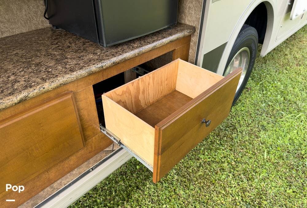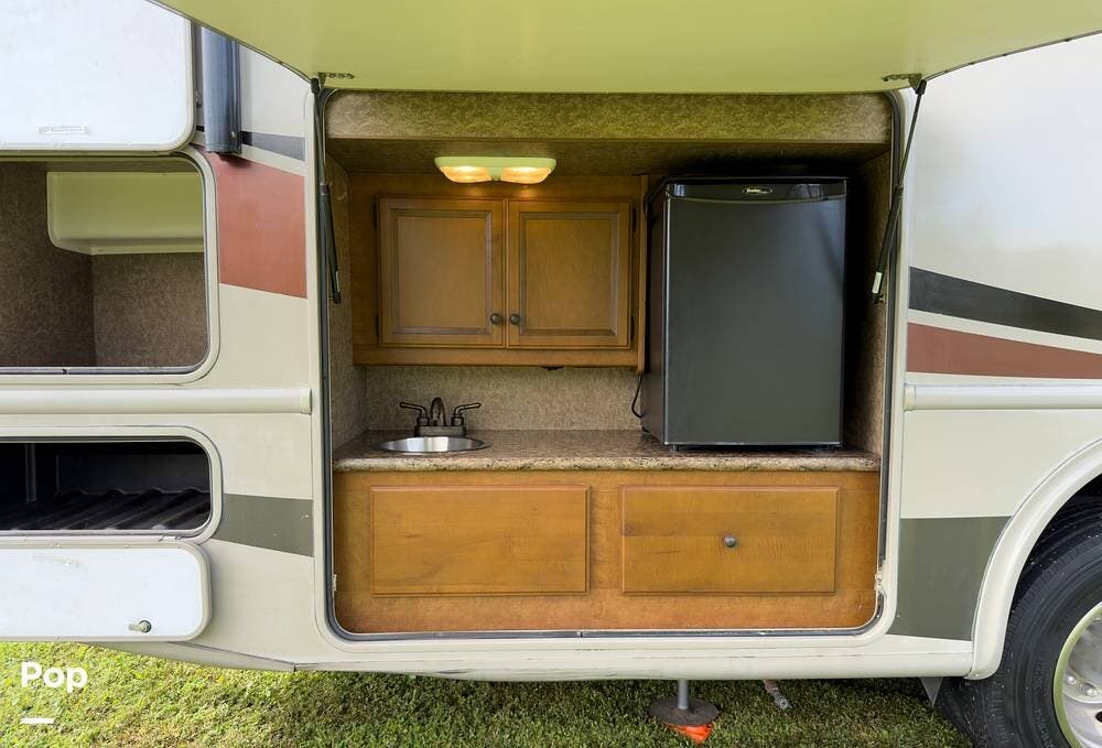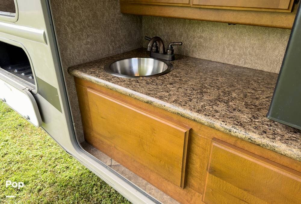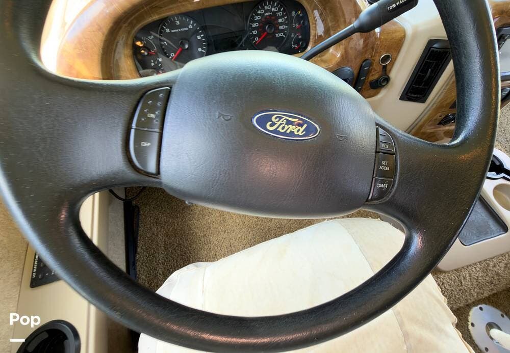 It's built on the Ford F-53 chassis with the 6.8L V10 and has a towing capacity of 5,000 lbs. Fuel tank holds 80 gallons. The slide runs almost the entire length of the RV, so once it's out, you've got a lot of room to move around.