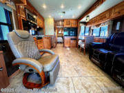A large slide out on the driver's side houses a sofa bed, a booth dinette and overhead cabinets. A standard TV with a pantry below is on an inside wall and the TV faces the front of the coach. In place of the booth dinette, you may choose a dinette with computer workstation.