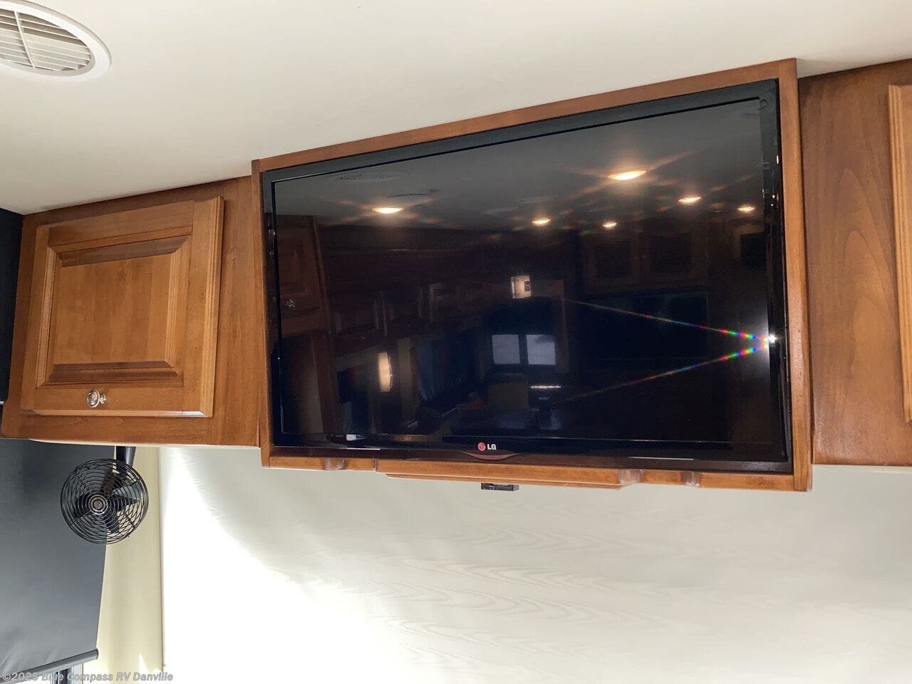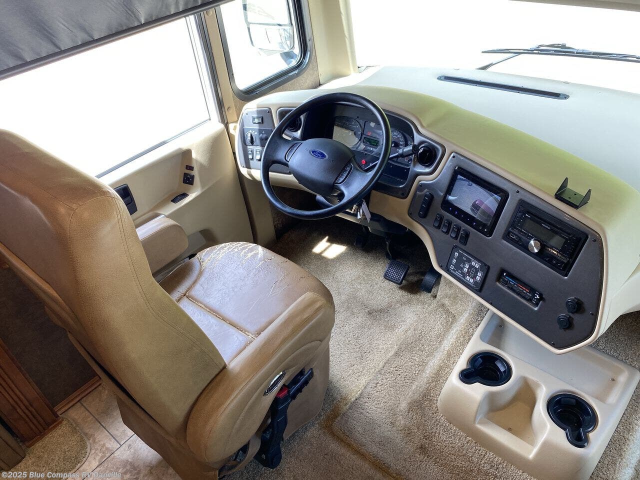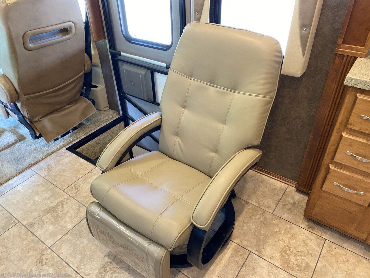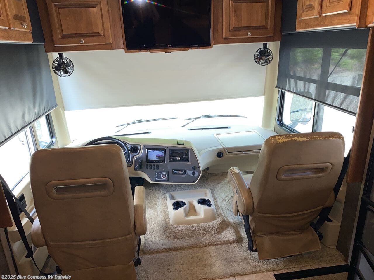 The front cab has two captain's chairs with overhead cabinets at each side. You may also choose an optional TV at the center front and an optional driver side door.