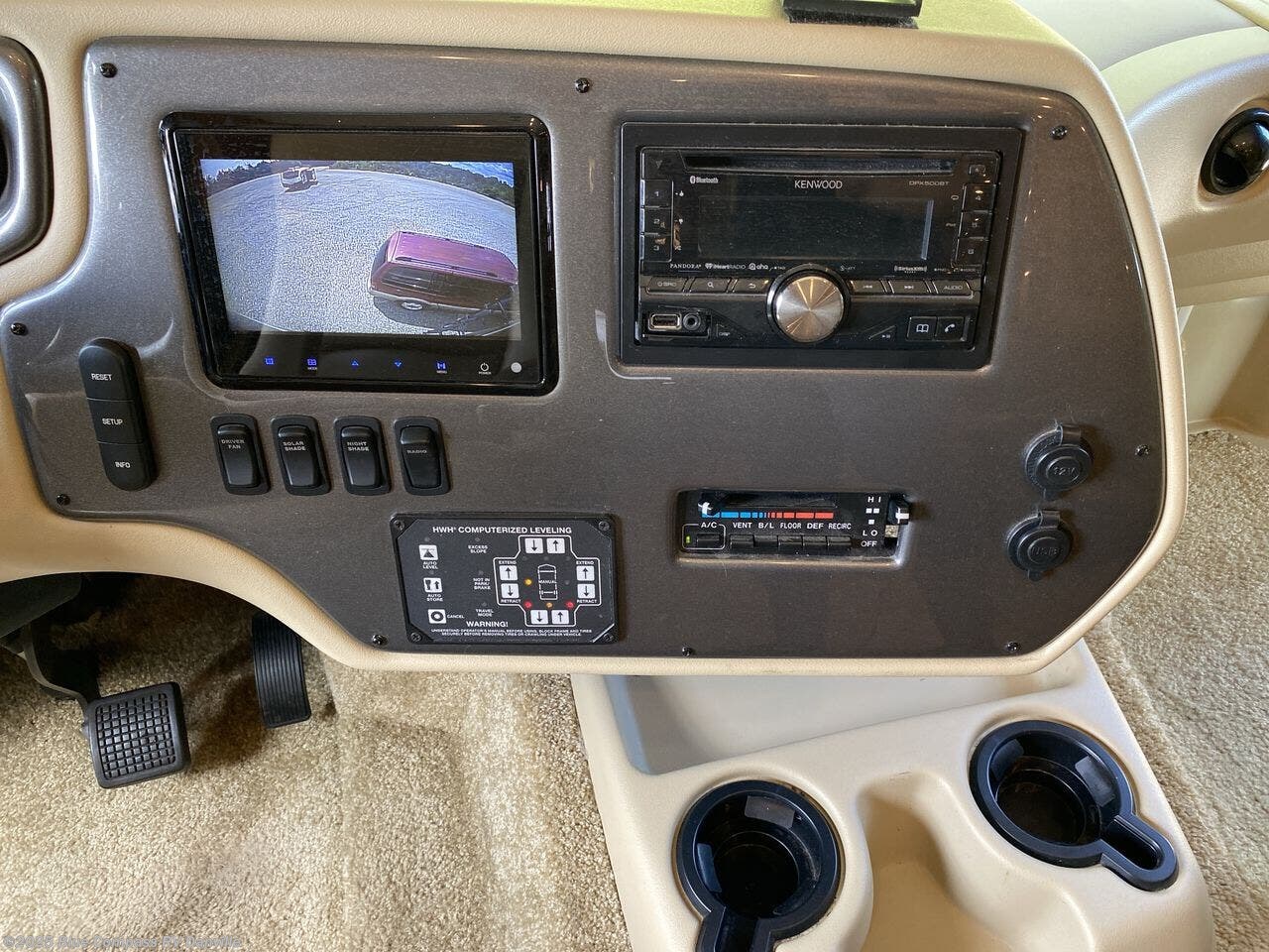 Awning, Backup Monitor, External Shower, Ladder, Leveling Jacks, Power Entrance Step, Power Roof Vent, Skylight, Slideout, Slide-out Awning -