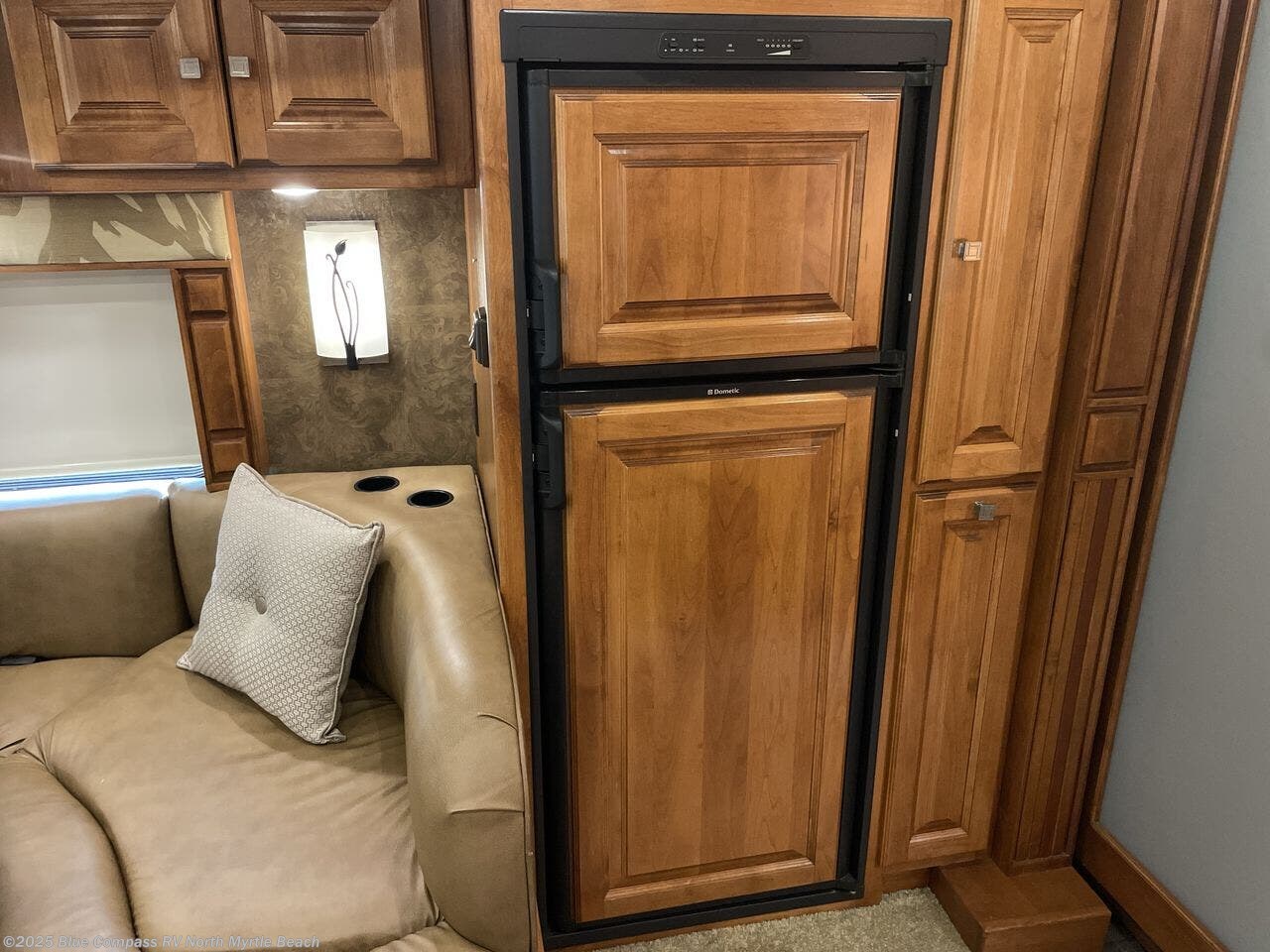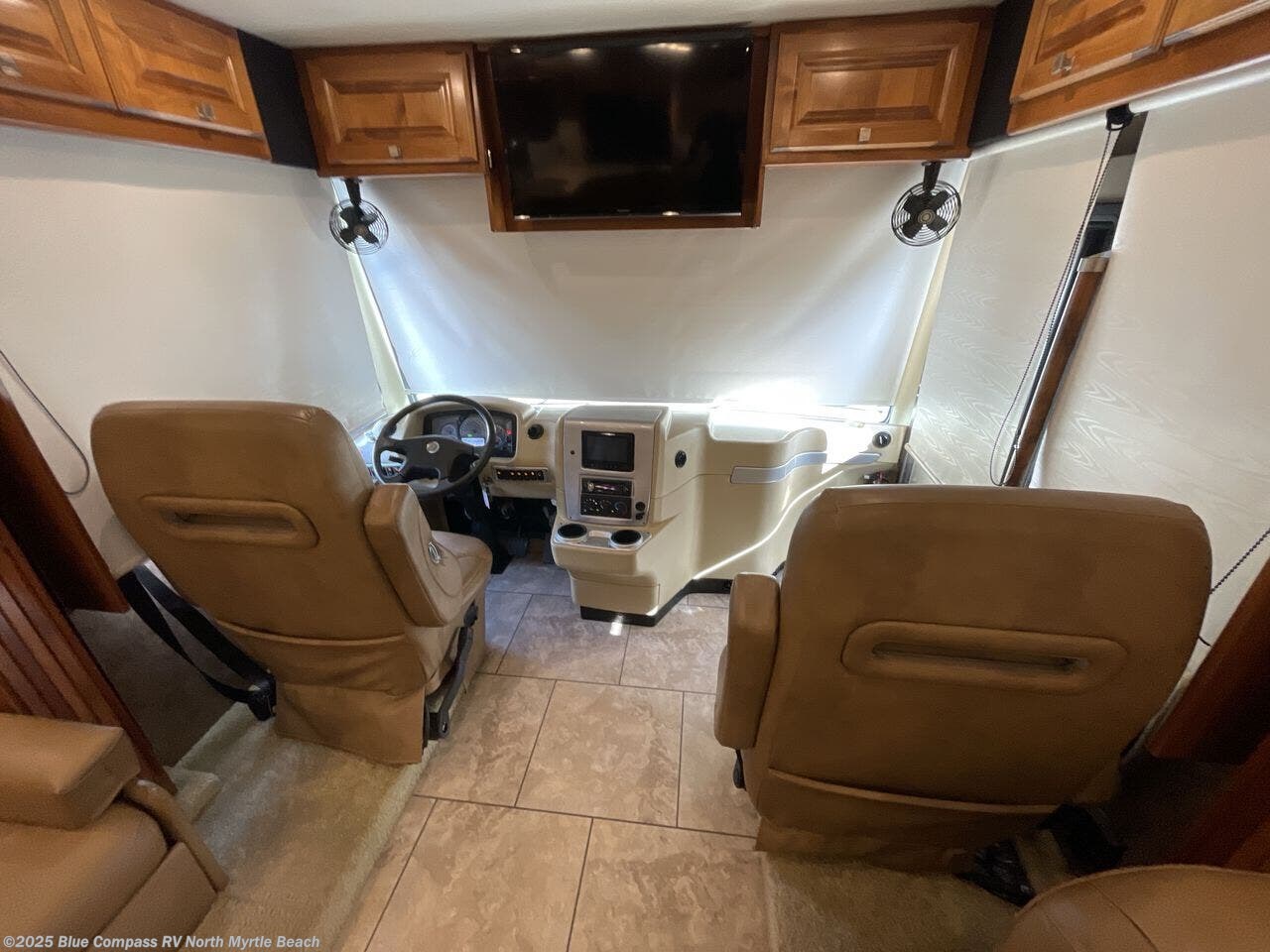 Step into the front entry to find two captains chairs, overhead cabinets, and an optional TV at the center front.