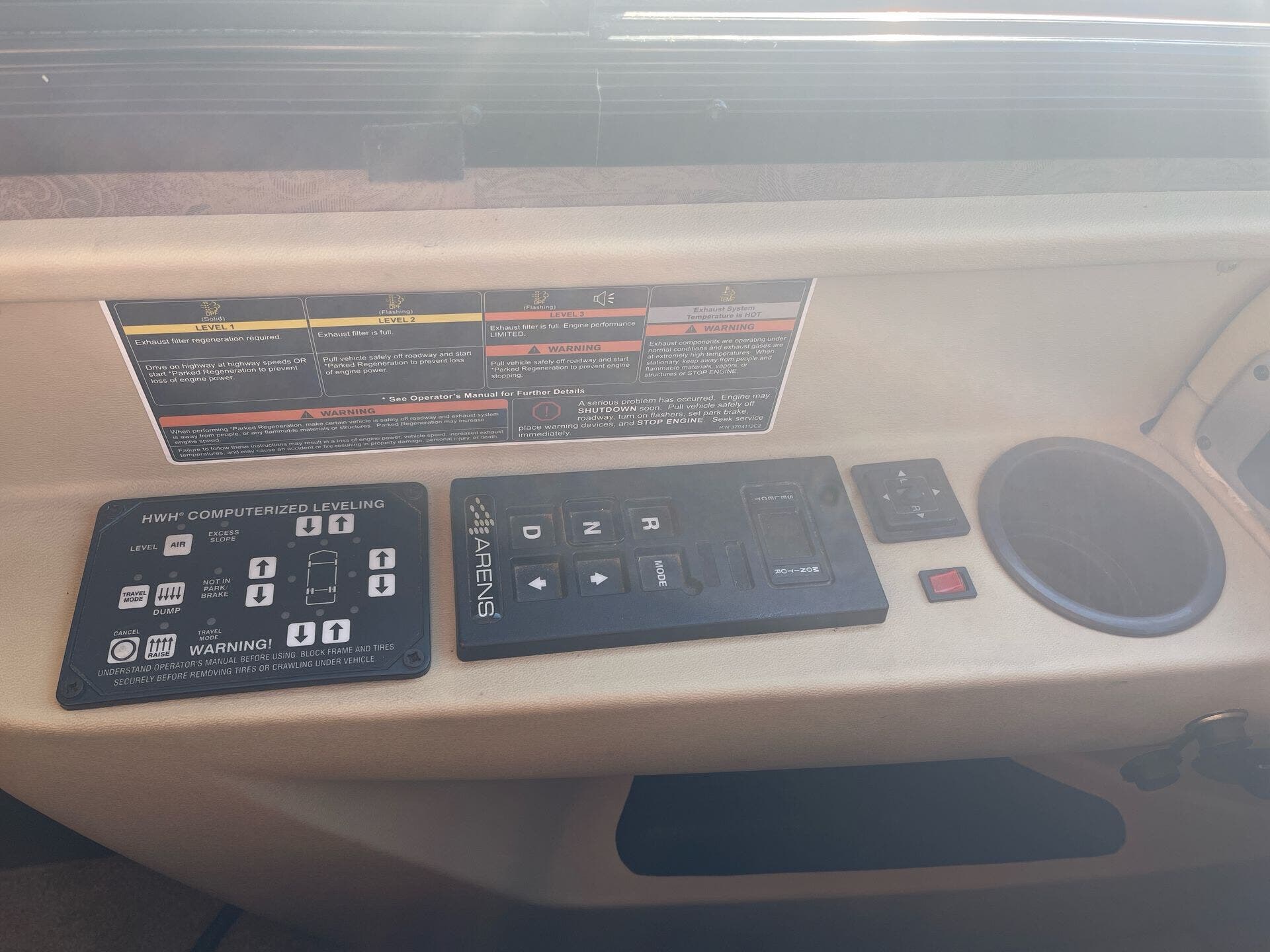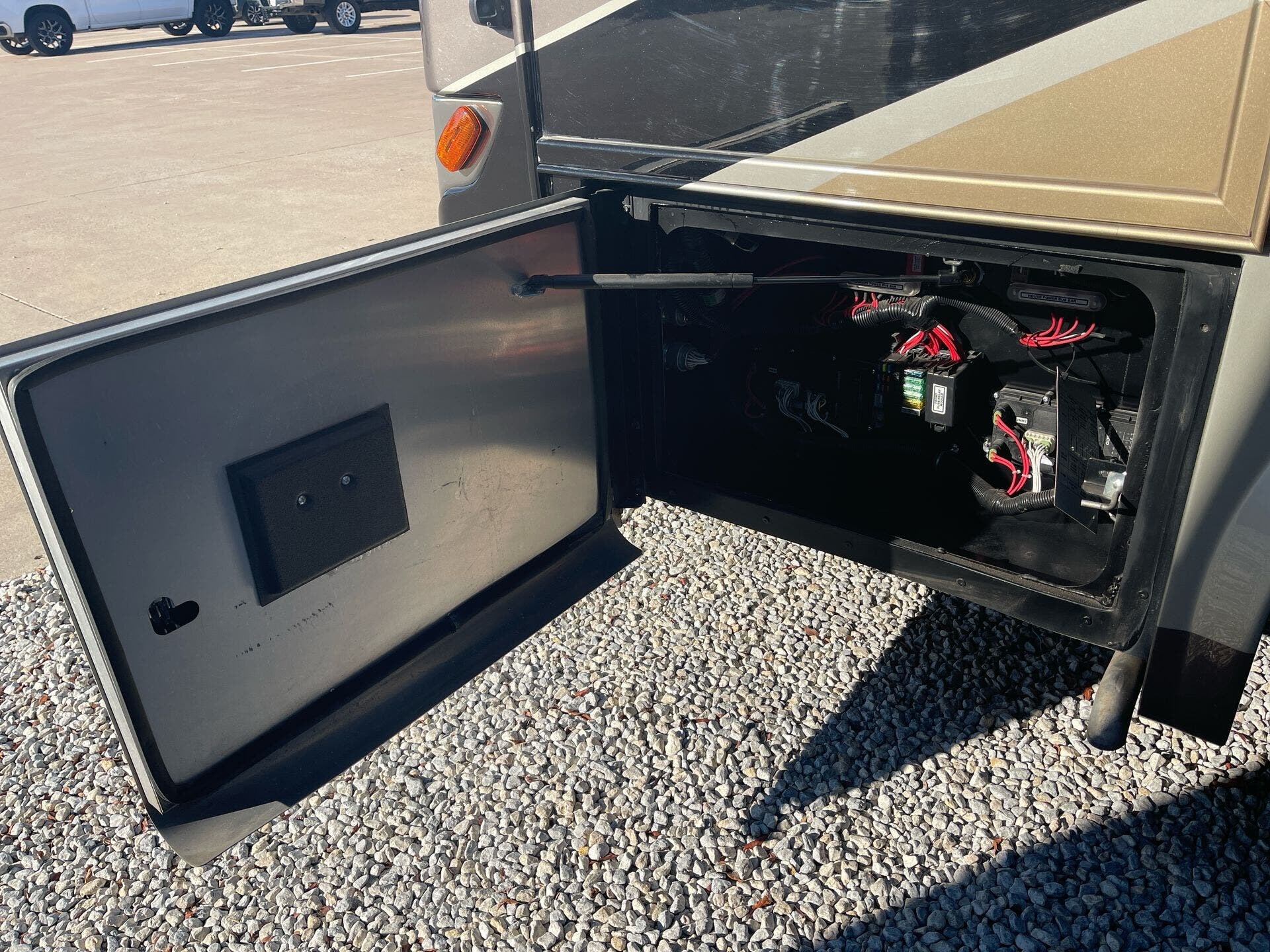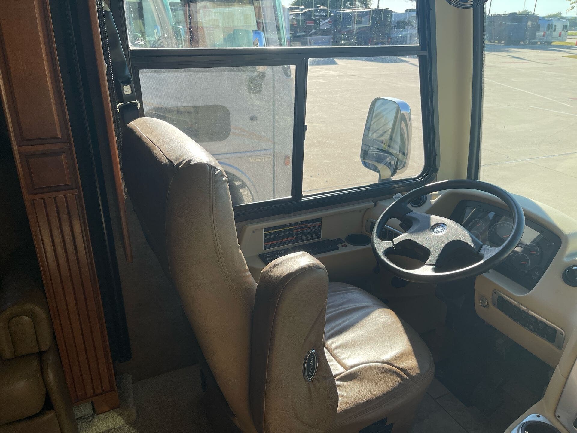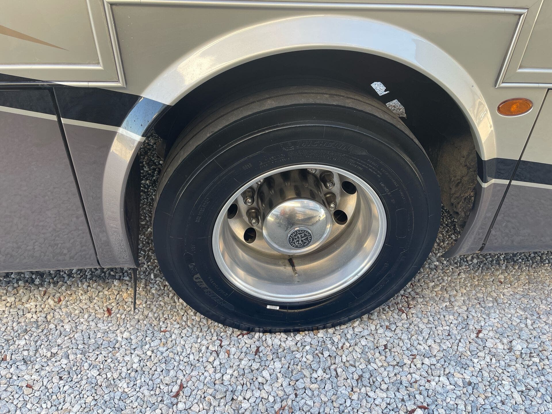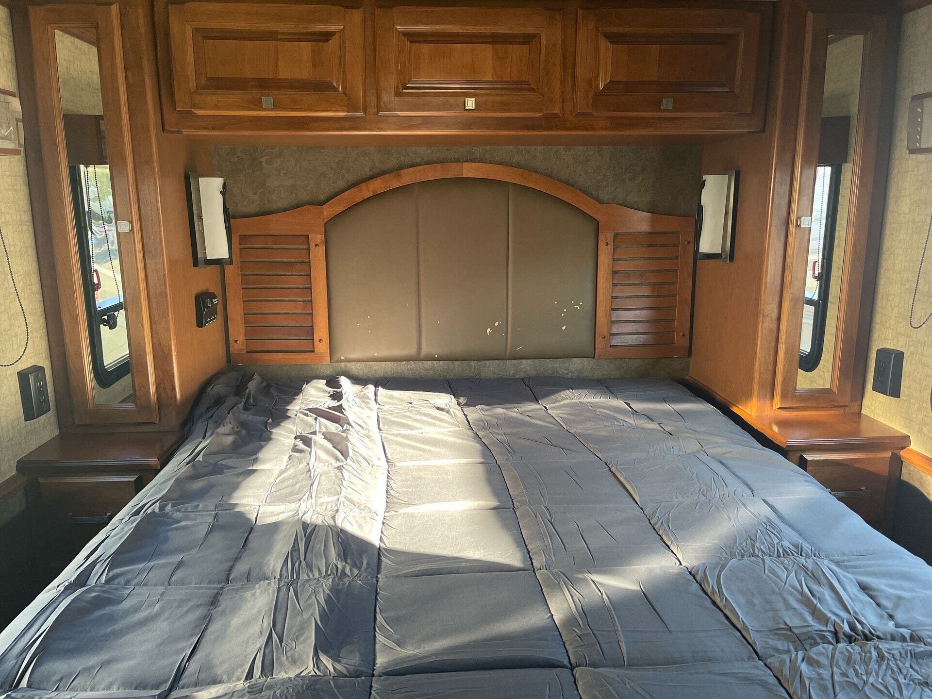 Powered by a Navistar MaxxForce 7 V8 diesel producing roughly 240 hp and strong torque, mated to a 6-speed Allison automatic transmission, this rig rides on a PowerGlide chassis. It has a GVWR of about 23,500 lbs and fresh water, gray, and black tank capacities of approximately 70, 50, and 30 gallons respectively.
