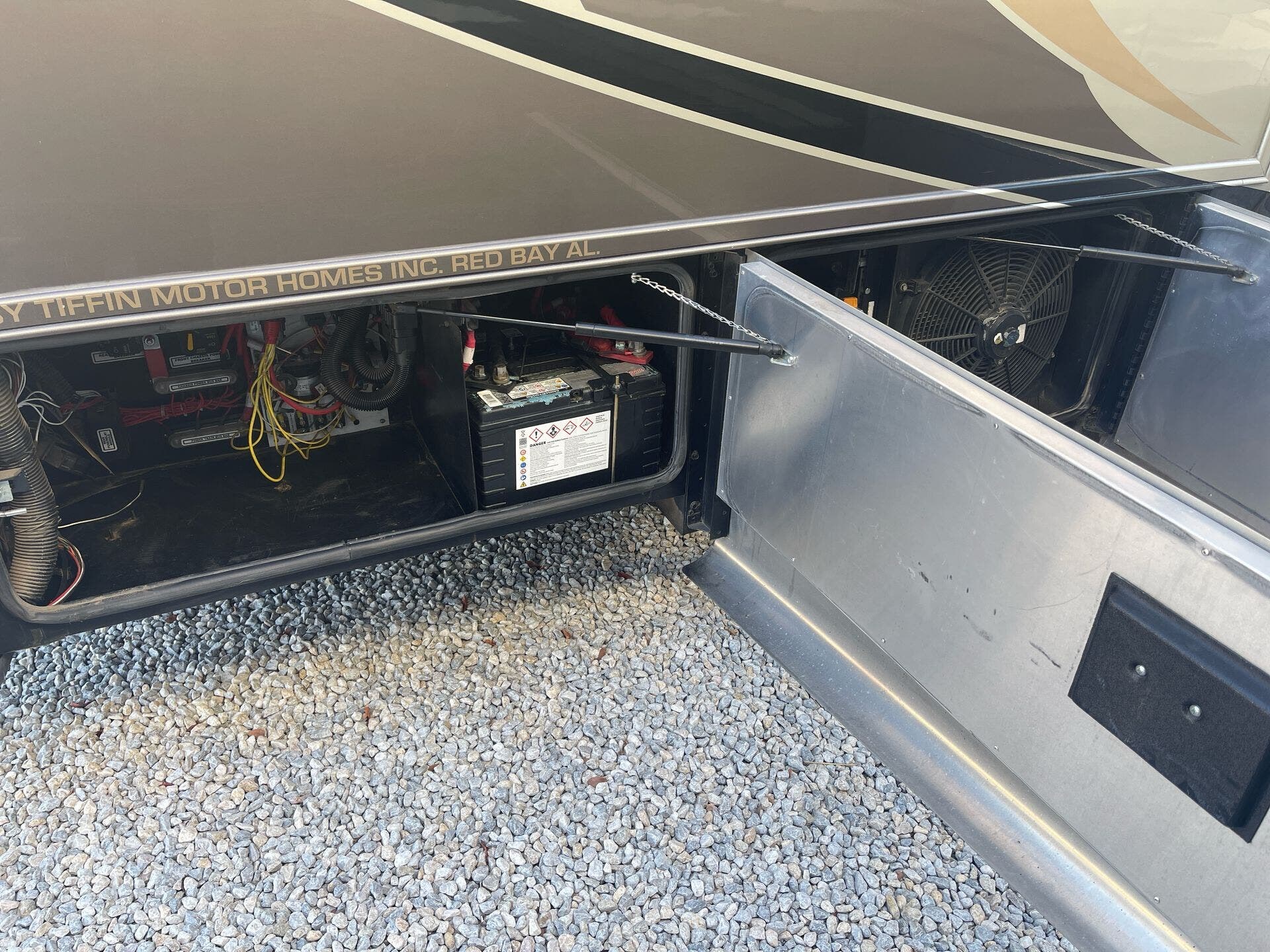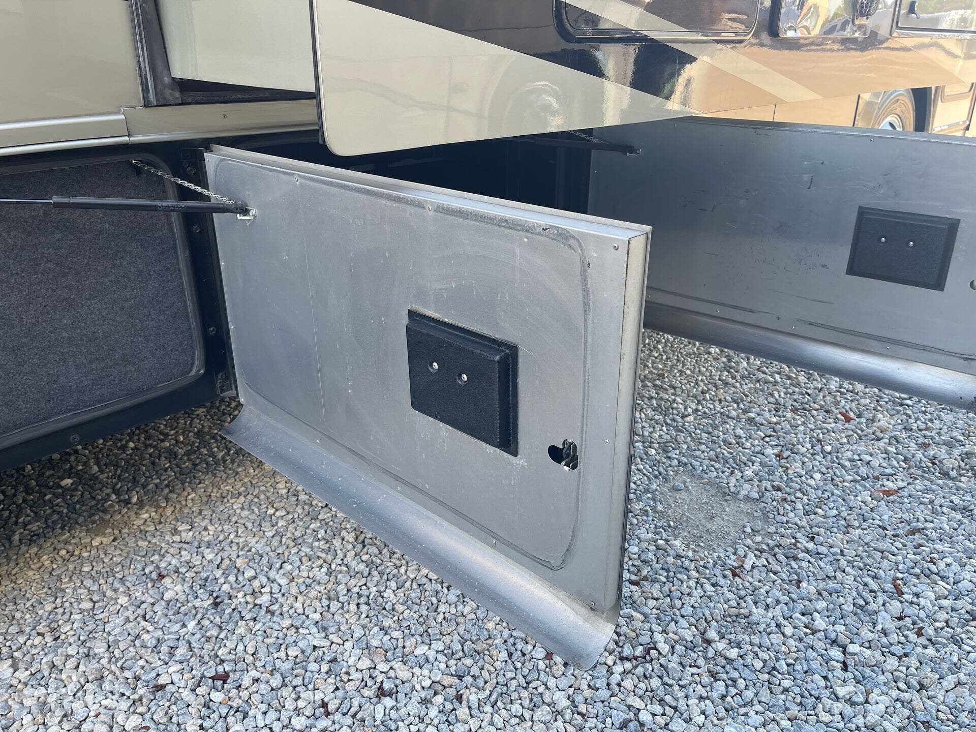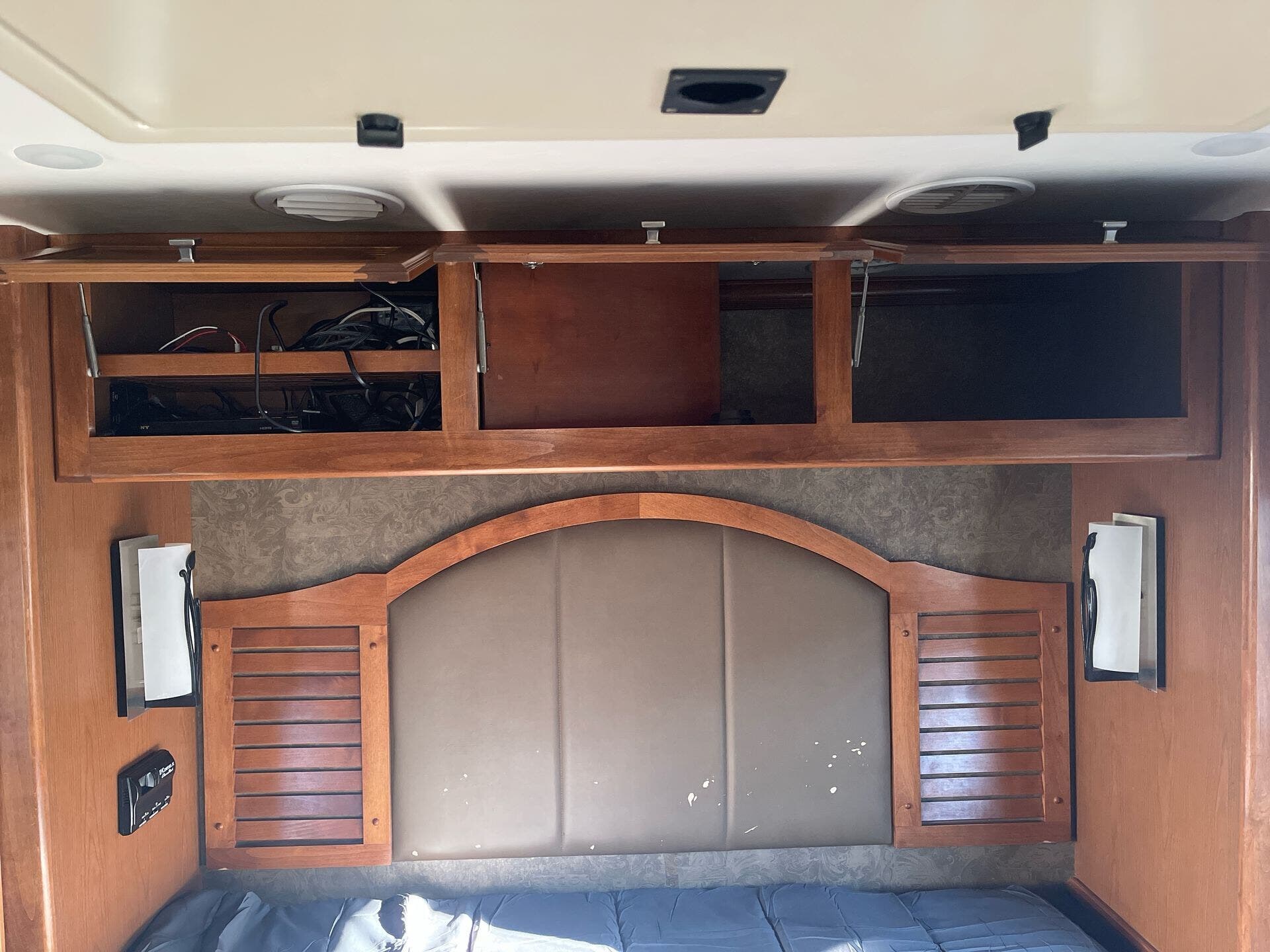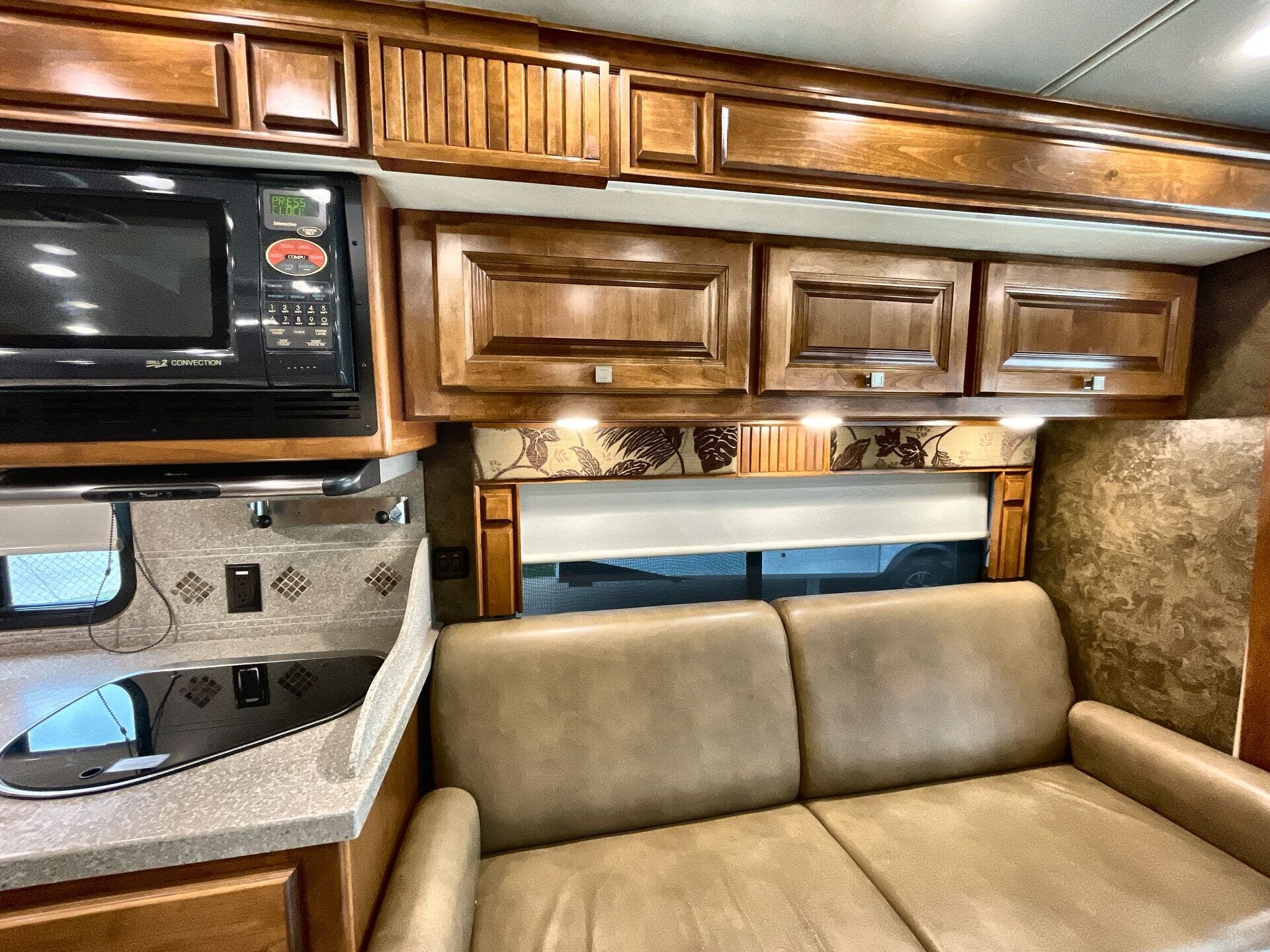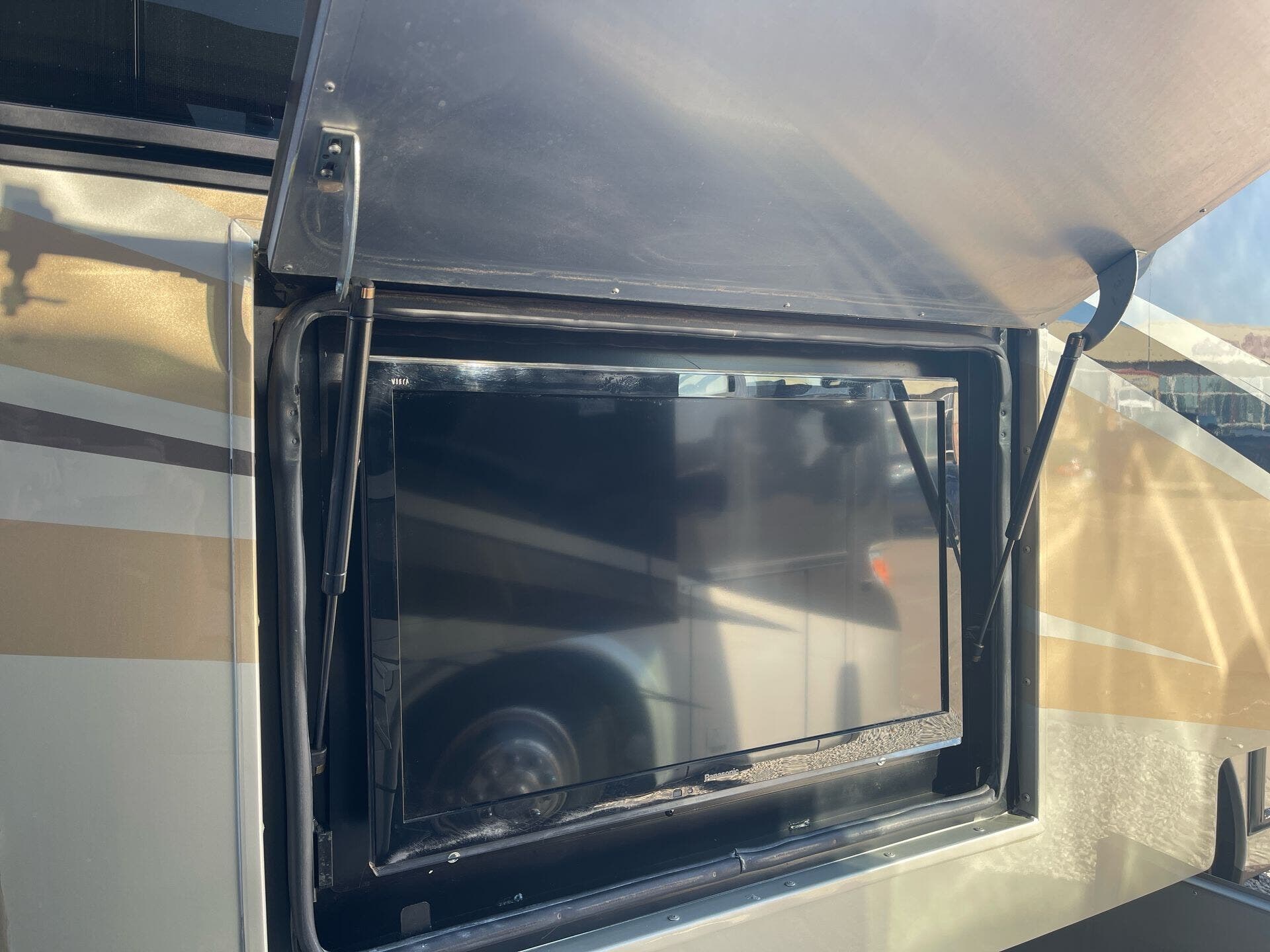 Powered by a Navistar MaxxForce 7 V8 diesel producing roughly 240 hp and strong torque, mated to a 6-speed Allison automatic transmission, this rig rides on a PowerGlide chassis. It has a GVWR of about 23,500 lbs and fresh water, gray, and black tank capacities of approximately 70, 50, and 30 gallons respectively.