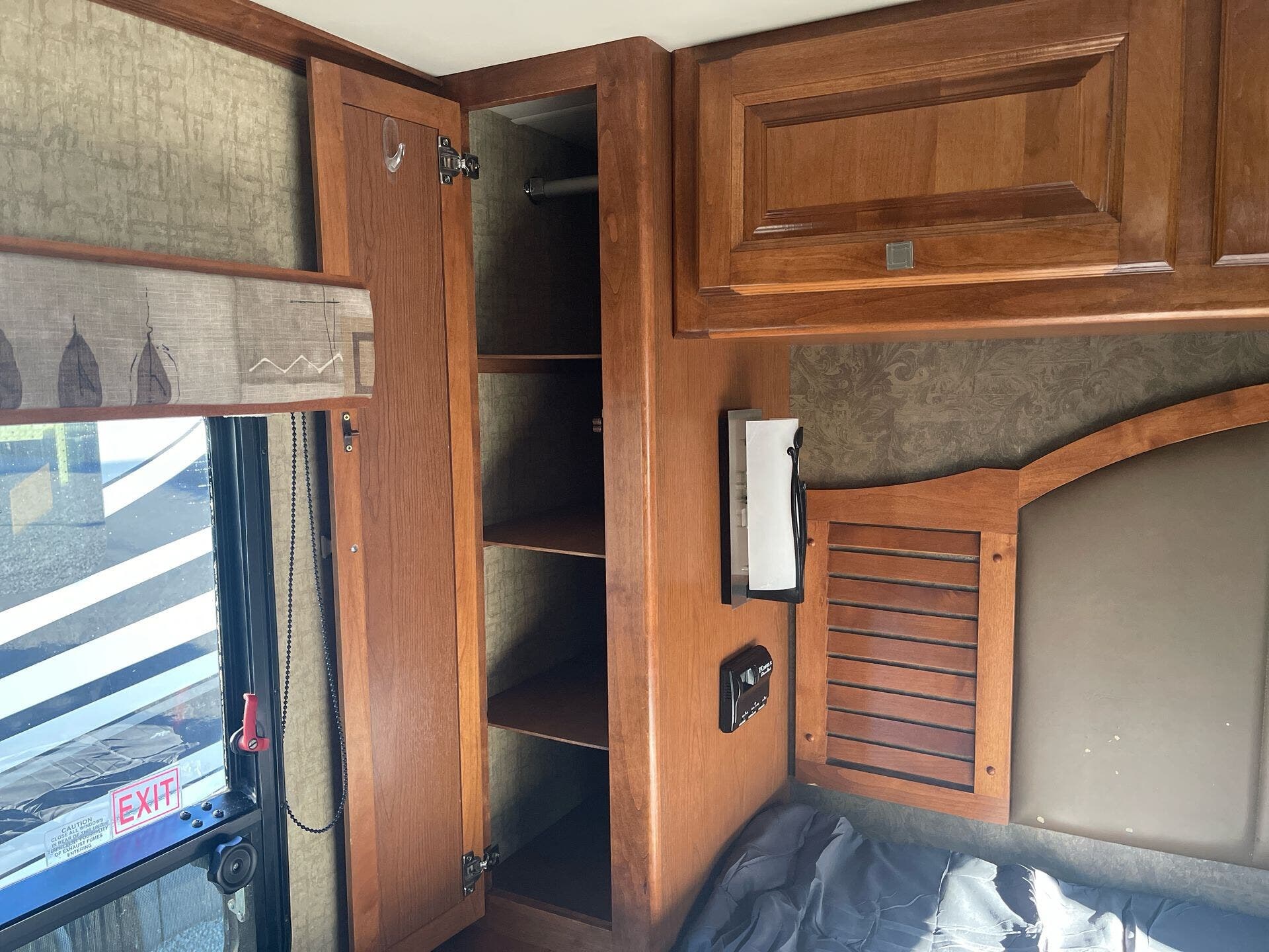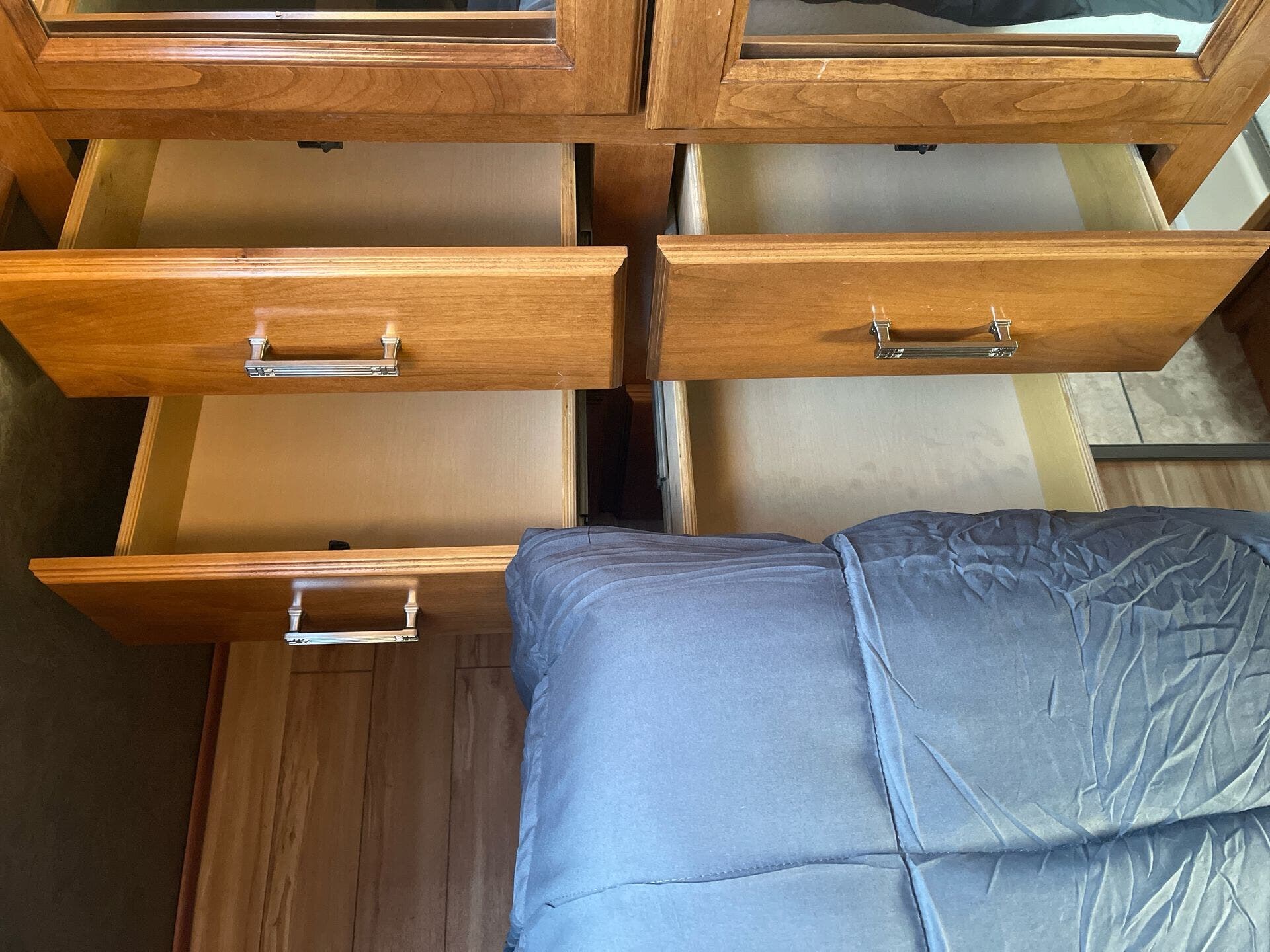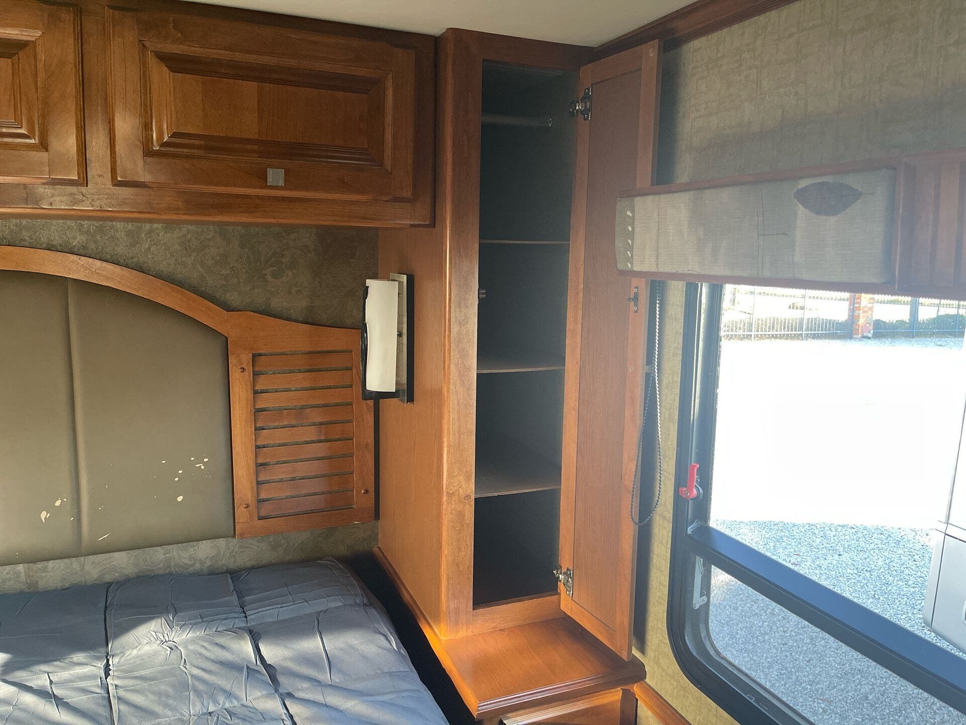 Standard amenities include high gloss hardwood cabinetry, vinyl tile flooring, solar/privacy shades, thermostatically controlled AC and furnace systems, a quiet diesel generator, and plenty of storage both inside and in exterior basement compartments. For those who want a full-size feel in a smaller footprint, the Breeze 32BR is a strong mix of comfort, quality, and maneuverability.