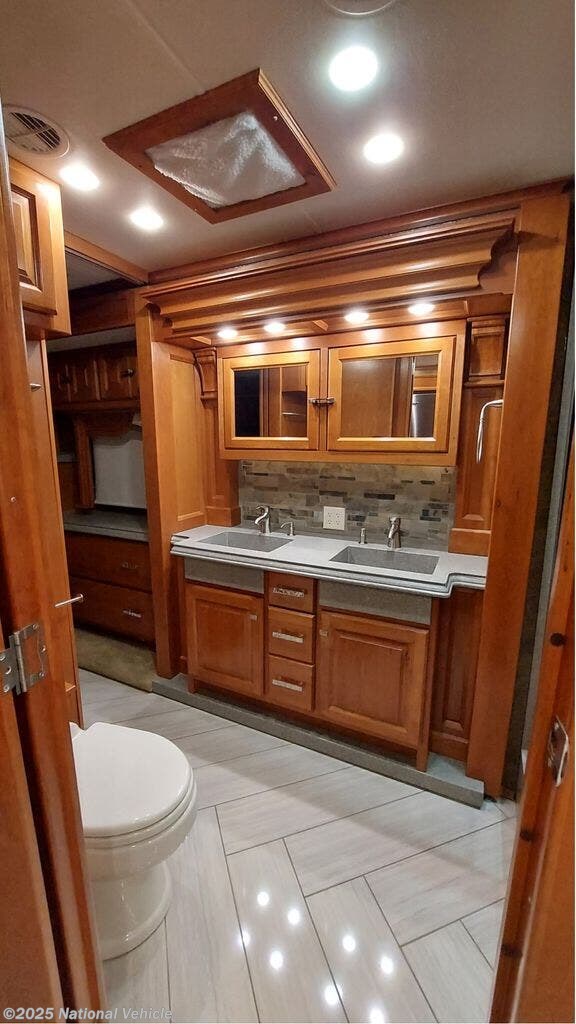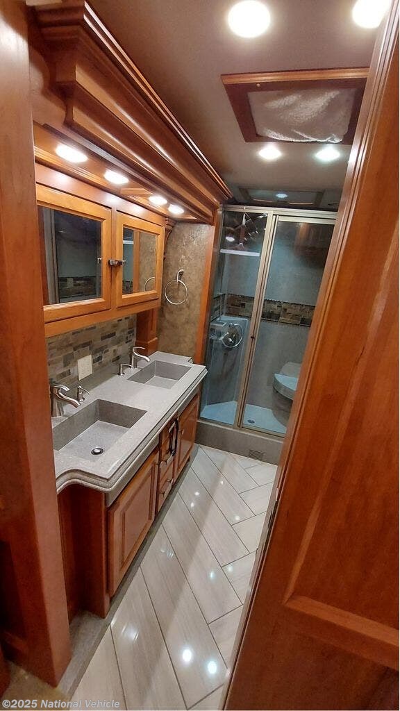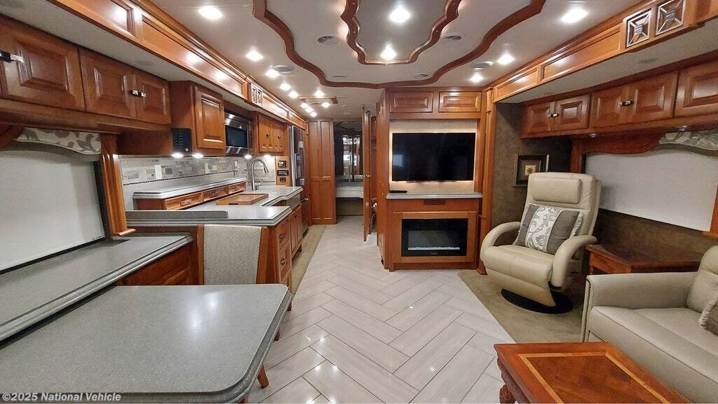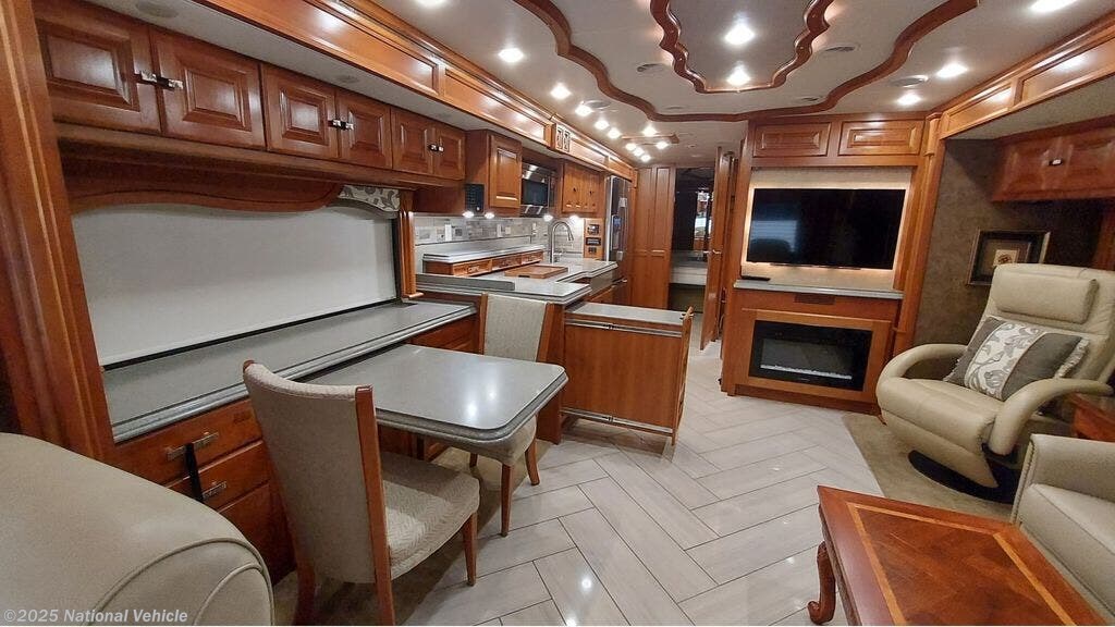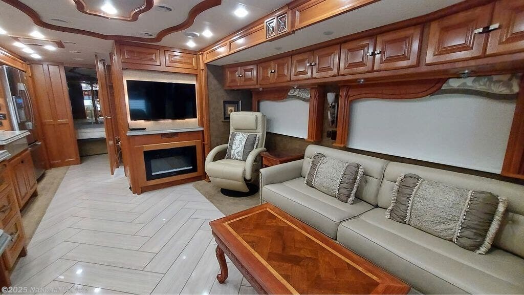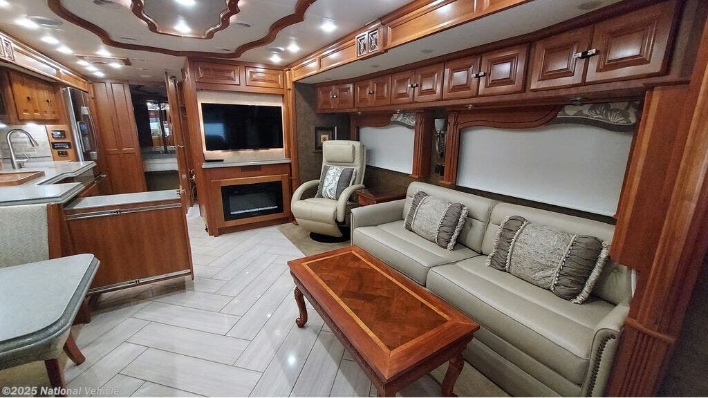 Garage-kept luxurious motorcoach. Solid wood cabinetry, heated Tile floors, ultra-leather seating, 6-way Dr/Pass; 4 TV's; sofa/sofa bed/lounge chair; dining table (4); day/night shades; fireplace; SleepNumber Tiffin king bed; MBR ceiling fan; bath Fan-tastic Vent; new clothes dryer/stackable washer/dryer; new Spyder panels; new kitchen faucet; new hand-held showerhead; fresh-water tank refresh; convection microwave/induction 2-burner stovetop; double kitch. sinks; 'residential' fridge/ice maker. Walk-through bath/double vanity/stone accenting, porcelain toilet. MBR retreat, sleep-number bed, Splendide W/D new dryer; tv/entertainment sys.; in-wall safe. Add'l Features: 10 KW ONAN Diesel Gen. featuring Auto Start; Towing capacity 15,000 Lbs; Furnace; Hydro Hot Heating Sys. (On Demand Hot Water), heated flooring; back-up camera; Cruise Control; front brakes hydraulic disc, rear brakes hydraulic drum; aftermarket LUX under-Coach lighting, 5000 BTU elec. fireplace, cable/satellite-dish ready, exterior Entertainment cntr.; USB Charging Ports. Tiffin-provided: Fresh H2O cap. 90G, Gray H2O cap. 70G, Black H2O cap. 50G w/flush sys., 101" ext. W; 151" ext. H, 84" int. H; tires 295/80R 22.5