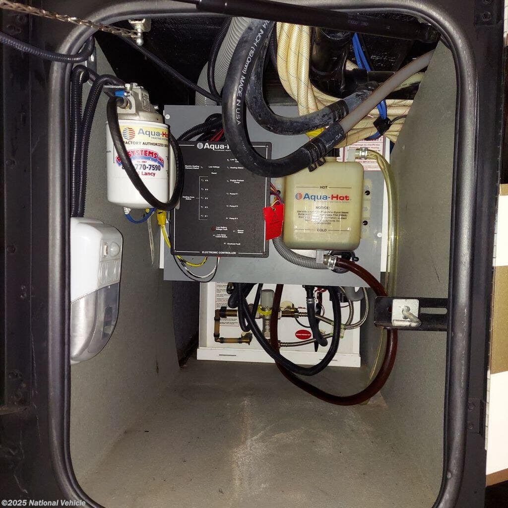 FEB. 2024 Service--All of the following serviced and found in good order: AquaHot sys.-full service incl. cleaning chamber/nozzle electrodes, replaced nozzle-set electrodes; replaced chamber gasket, replaced filter, nozzle electrodes and burner gasket. Diesel eng. svc. w/Chevron Delo? XLE synthetic blend oil and new filter, chassis lube. Engine air-filter service, tube cleaned, and filter replaced. Air-Dryer service--removed air dryer housing assembly and all cartridges, drained any water, cleaned/lubed seals, replaced air-dryer cartridges; reinstalled and secured, connected. ALSO, OCT 2023 routine mainten., inspec's/svc.--All of the following serviced and found in good order: Premium Generator Service incl. coolant inspection, Gen. oil change with new fuel and air filters. DEF system fluid drain, new fluid added. Hydraulic Quad-Slide/Hydraulic Leveling-Jack svc.?inspected and serviced incl. conditioning/all seals; inspected the hydraulic leveling-jack sys. hydraulic pump and fluid. Tire condition and pressure svc'd. Routine maintenance -- motorhome exterior detailing July 1 2024.