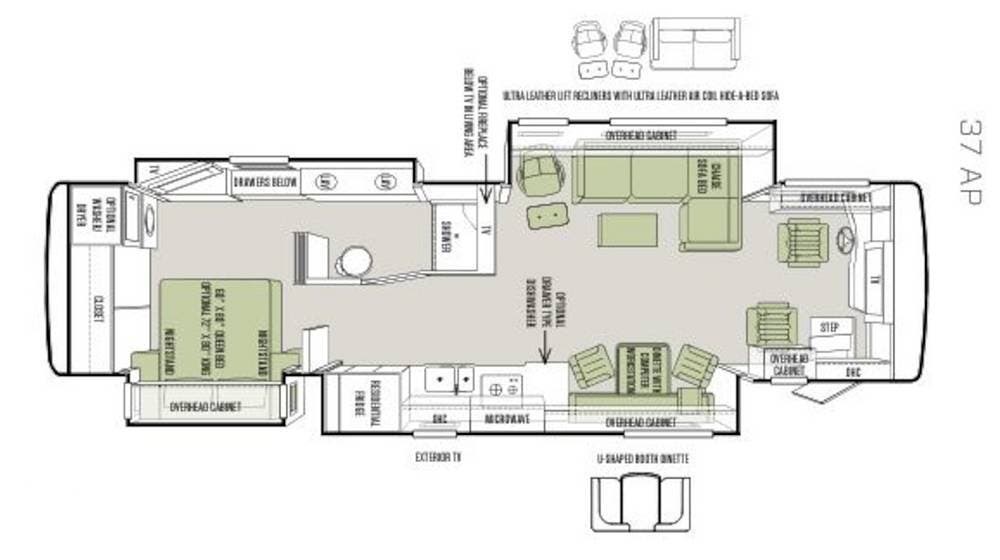 Outside, the Allegro Bus 37AP continues to impress with its elegant design and high-quality construction, ensuring durability and reliability for all your adventures.