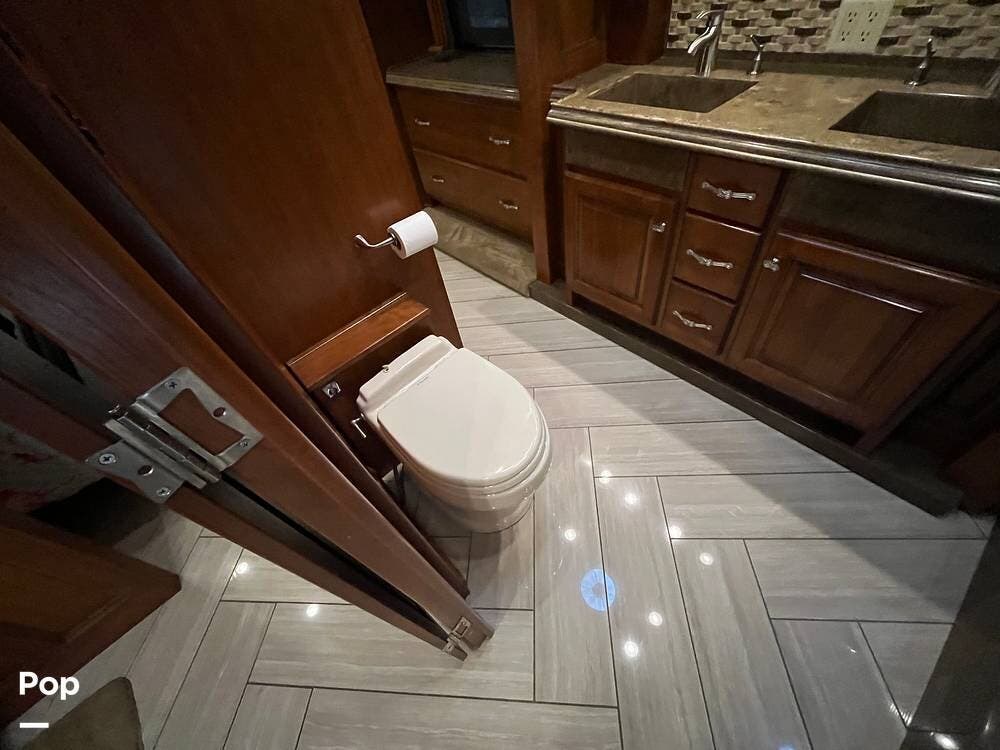 The master bedroom boasts a luxurious king-size bed, ensuring restful nights wherever your travels take you. Entertainment is never an issue, with four TVs strategically placed throughout the motorhome, so you can relax and enjoy your favorite shows or movies anytime.