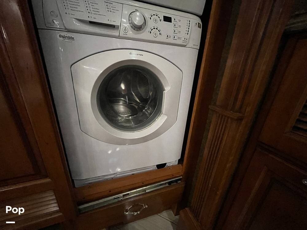 You'll also find a washer and dryer on board, making long trips even more enjoyable with the ease of doing laundry on the go.