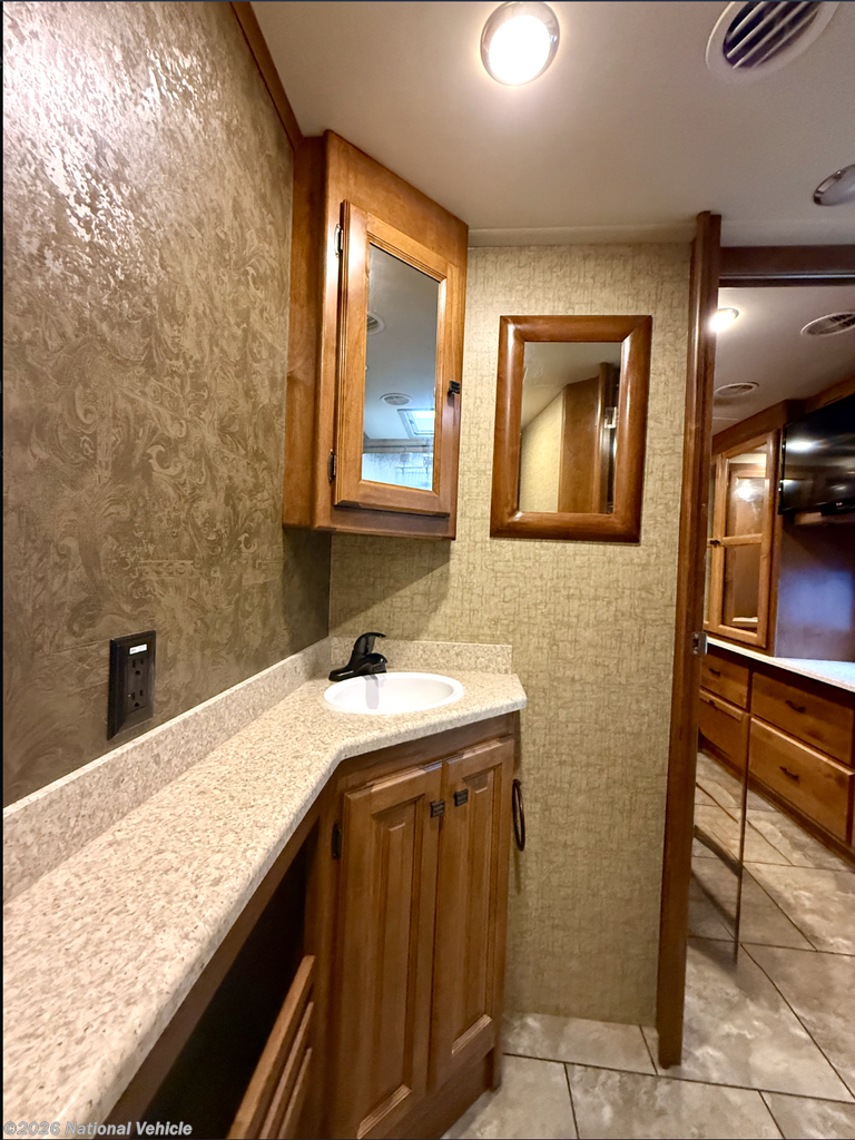 The rear master suite delivers comfort and privacy with a walk-around queen bed, wardrobe storage, and additional cabinetry to keep personal items organized. A spacious mid-bath layout includes a full shower, vanity, and linen storage. Exterior highlights such as a power awning, generous basement storage, and Tiffin?s high-quality construction make this coach both practical and dependable.