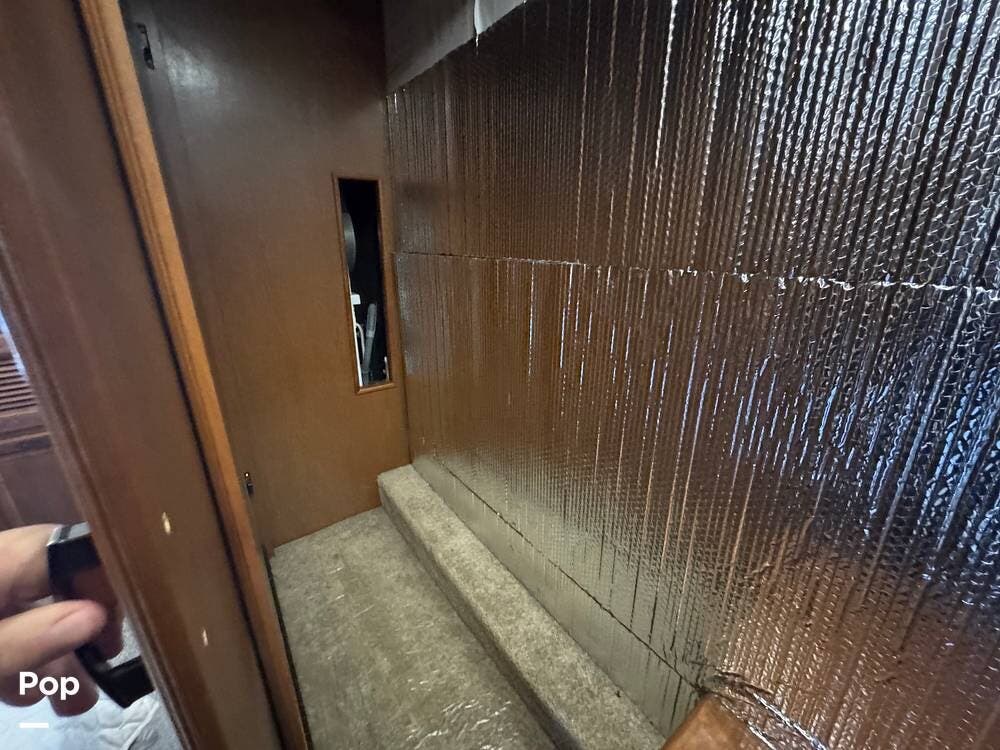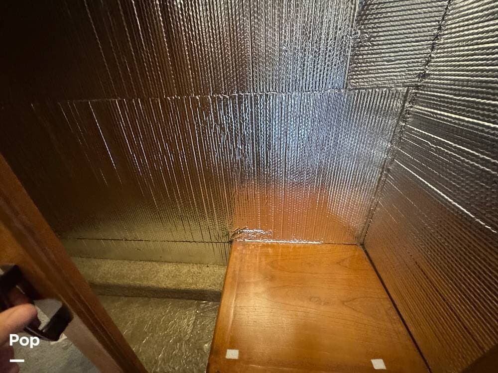 Toward the rear, the bedroom offers a private retreat with a walk-around king or queen bed, ample wardrobe storage, and sliding privacy doors. The centrally located bathroom is efficiently designed with a glass-enclosed shower and solid fixtures, maximizing space without sacrificing comfort.