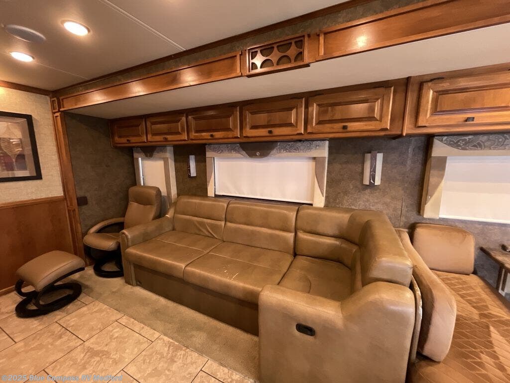 Step into the Allegro 36 LA class A motorhome to find two captain's chairs and overhead cabinets at each side in the front of the coach. You may choose an optional center TV and an optional driver side door.