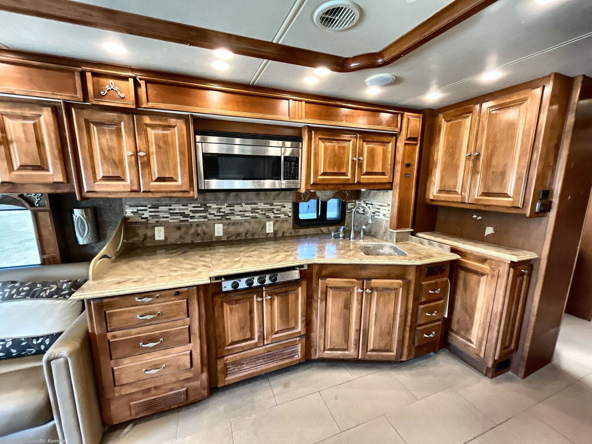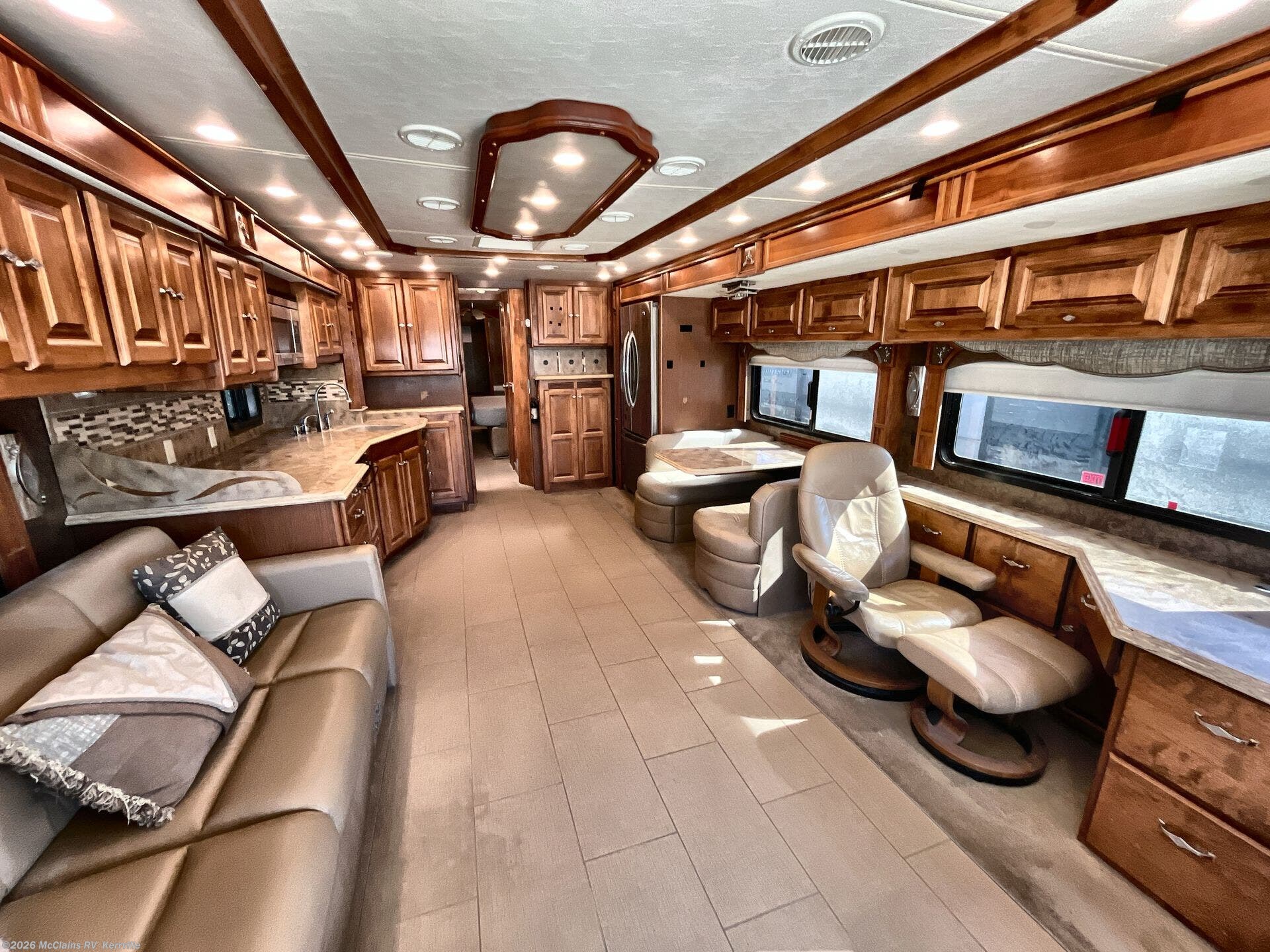 - Residential Comfort Features: Amenities like heated tile floors and Aqua-Hot hydronic heating provide consistent, quiet warmth and hot water, making the coach comfortable in all seasons and climates.