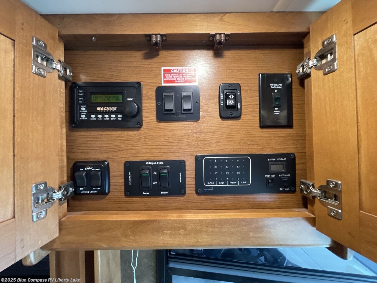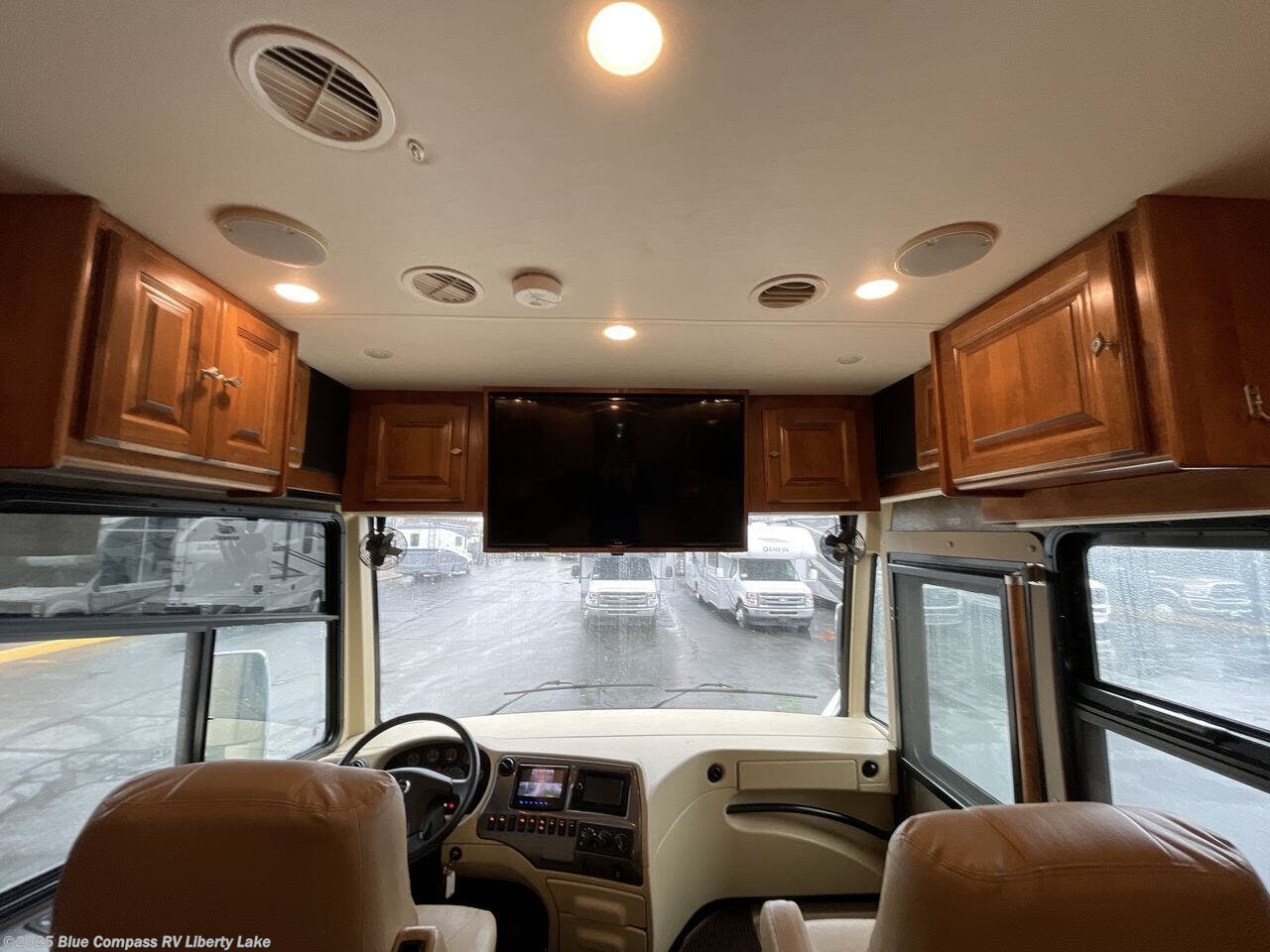 Step into the coach at the front on the curb side to find lots of overhead storage around the cab area as well as space for an optional center mount TV.