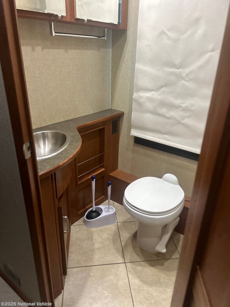 This coach features a bathroom complete with shower, toilet, and a sink with a medicine cabinet above for your convenience. There is also a half bath mid coach!