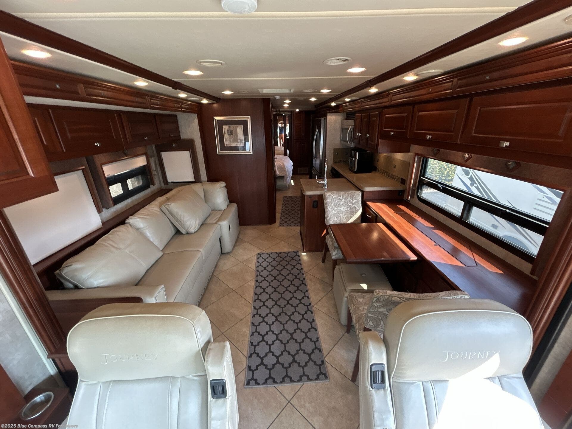 Winnebago Journey Class A Diesel Coach w/Rear Wardrobe/Storage, Slideout Queen Bed w/Nightstands, Sliding Door Between Bedroom & Living Area, Bath w/Shower, Toilet &u Vanity w/Sink, Bedroom Chest of Drawers/Pantry/4 Door Refrig./3 Burner Range/Dbl. Kitchen Sink/Extendable Dining Table & Chairs w/Buffet Full Wall Slideout, Over Cab Storage, Extendable Sectional Comfort Sofa Sleeper and Much More! Avail. Options May Include: King Bed, Residential Refrig., Washer/Dryer, 2 Ottomans.