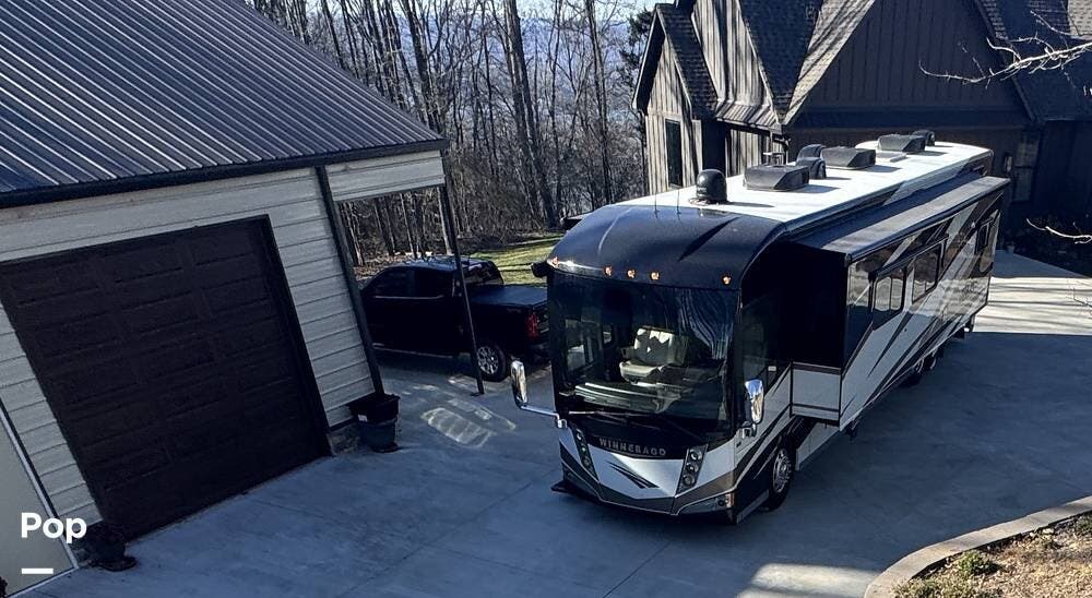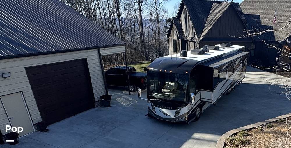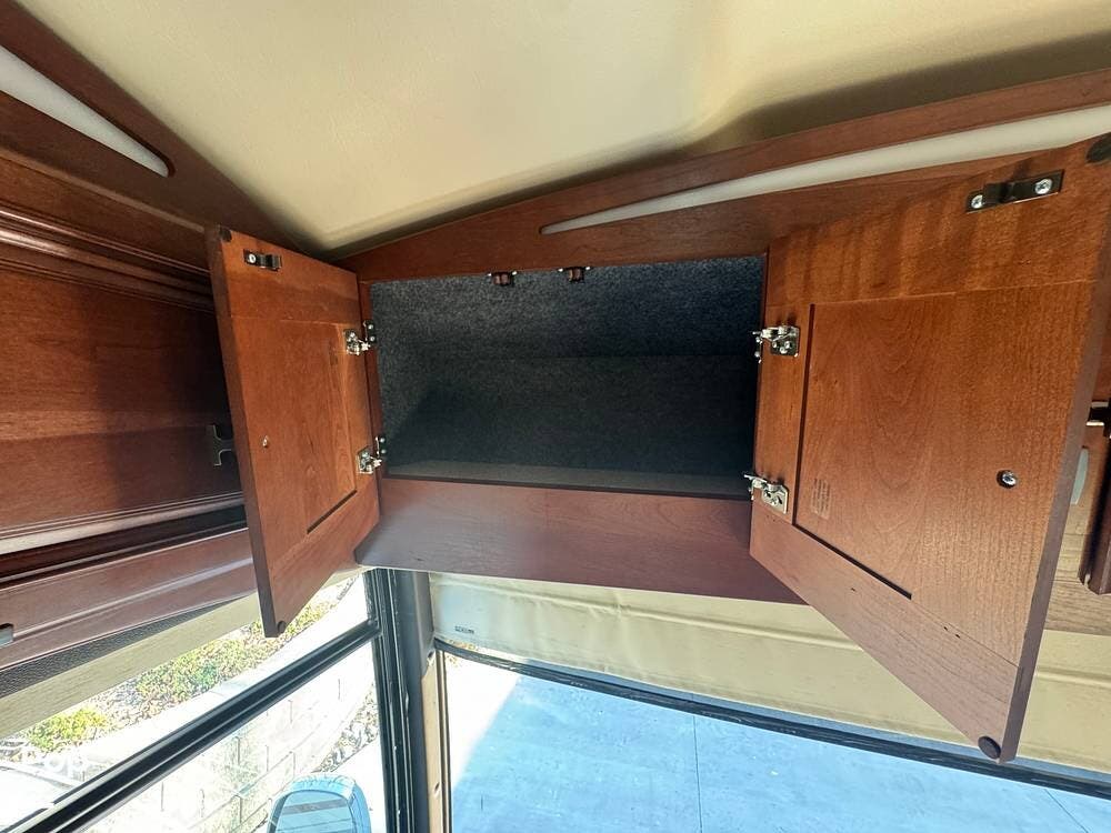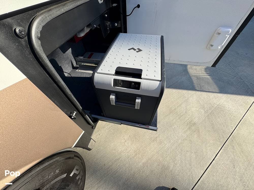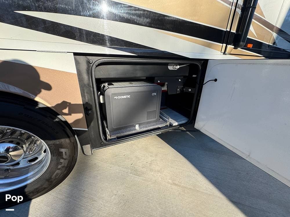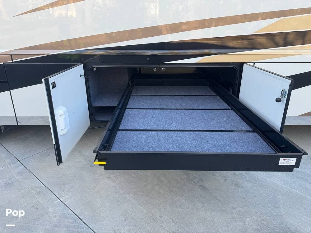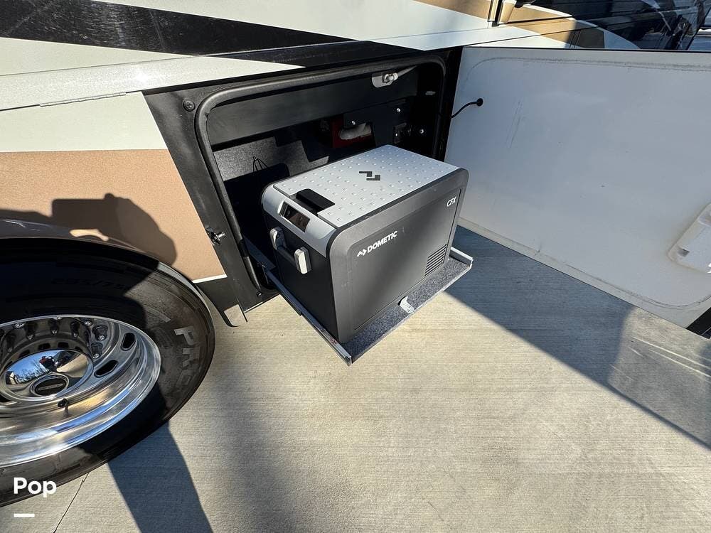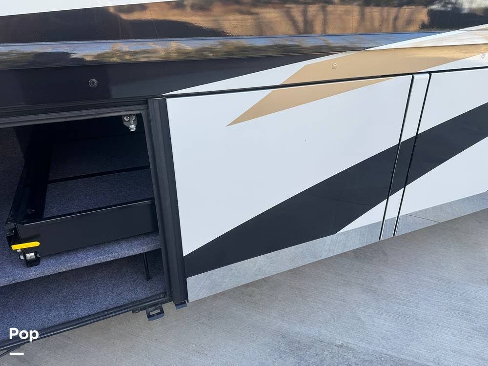 On the exterior, this coach features full-body paint, a large powered patio awning, and ample pass-through storage, making it easy to carry everything needed for life on the road. Dual slide-outs significantly expand the living space, while multiple exterior compartments provide generous room for luggage, camping gear, and travel essentials.