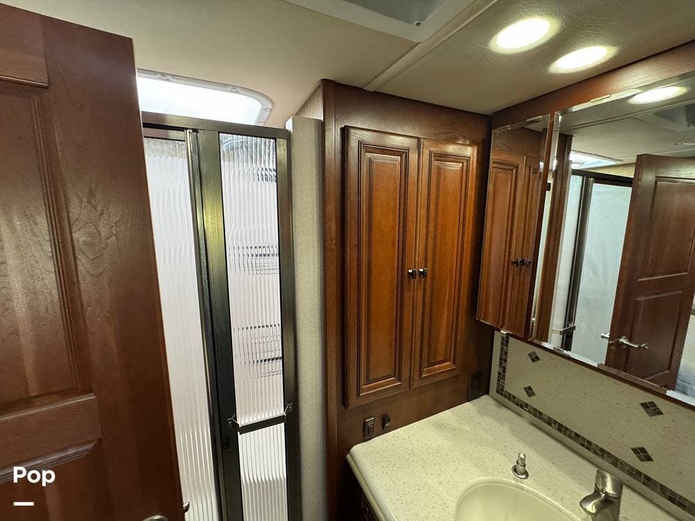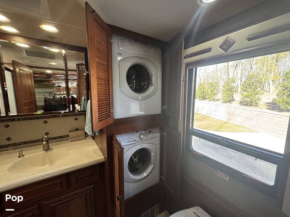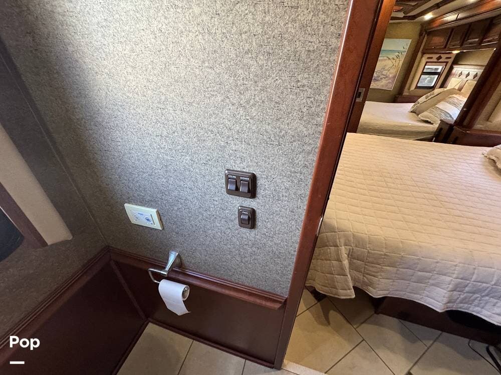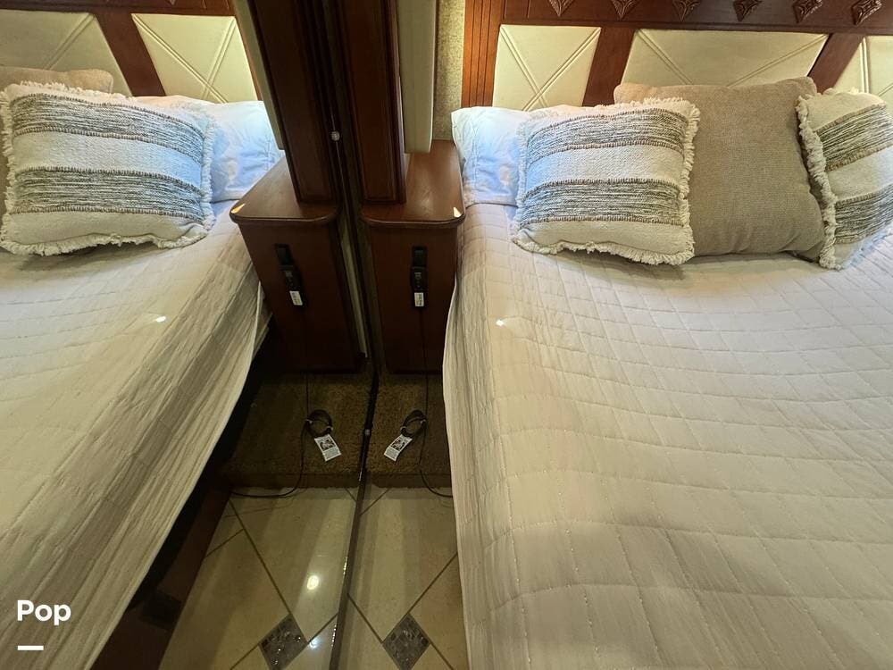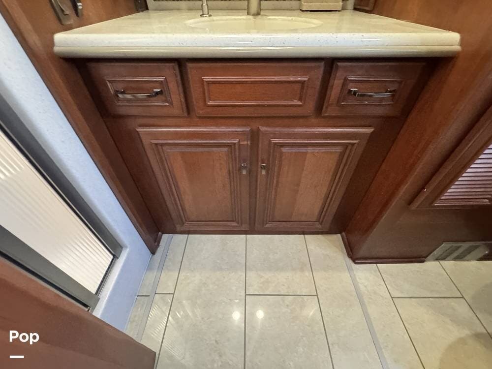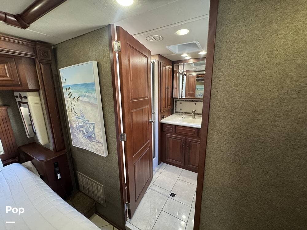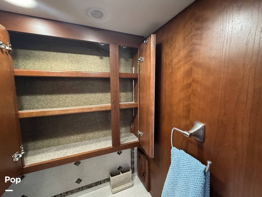 This coach is equipped with a bath-and-a-half layout, offering excellent functionality for couples or guests. The full bathroom includes a shower, vanity with sink, and toilet, while the half bath in the hallway adds convenience for visitors. Both bathrooms feature quality finishes and thoughtful storage solutions.