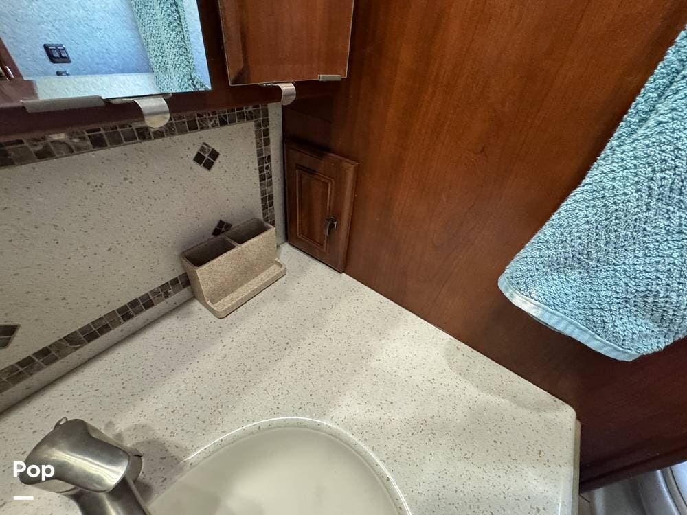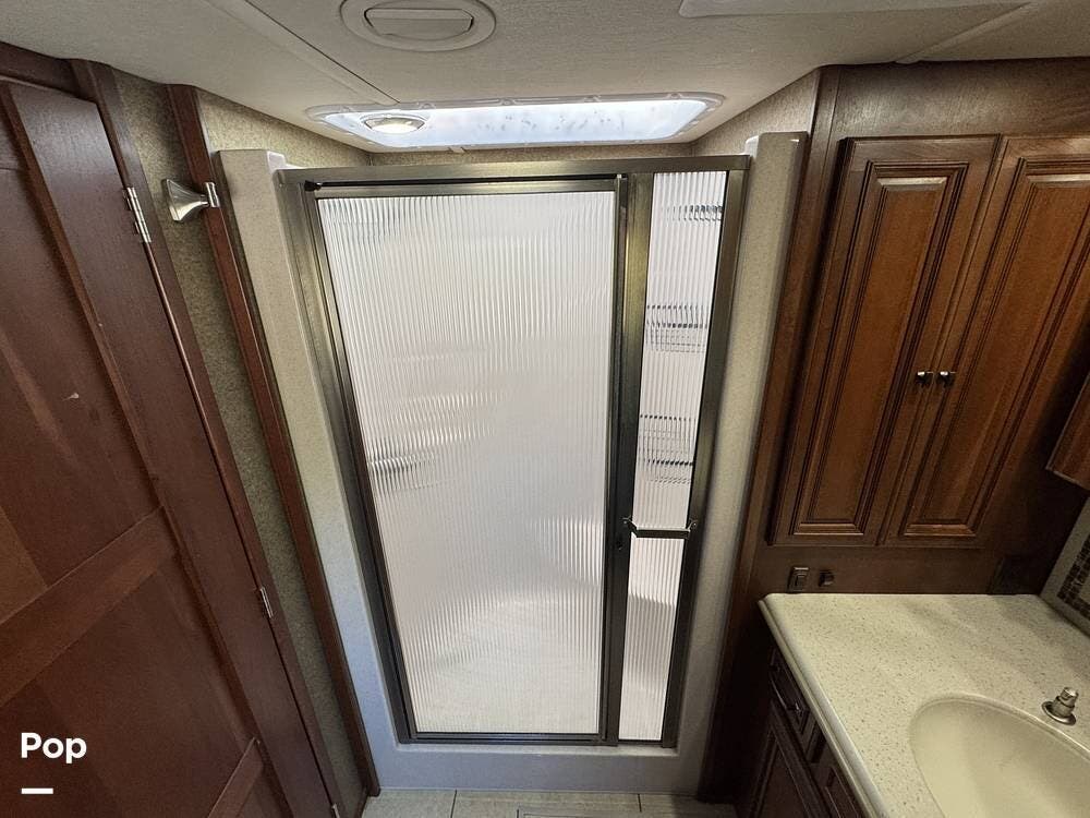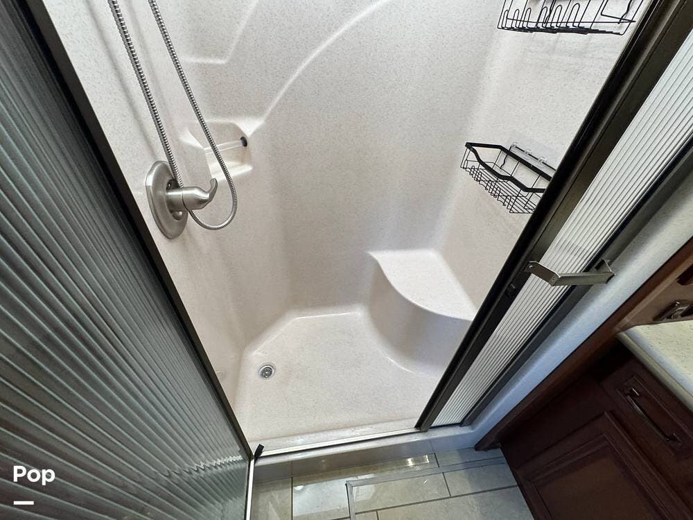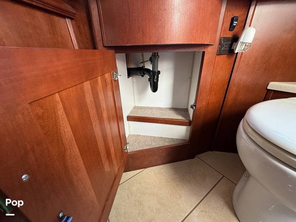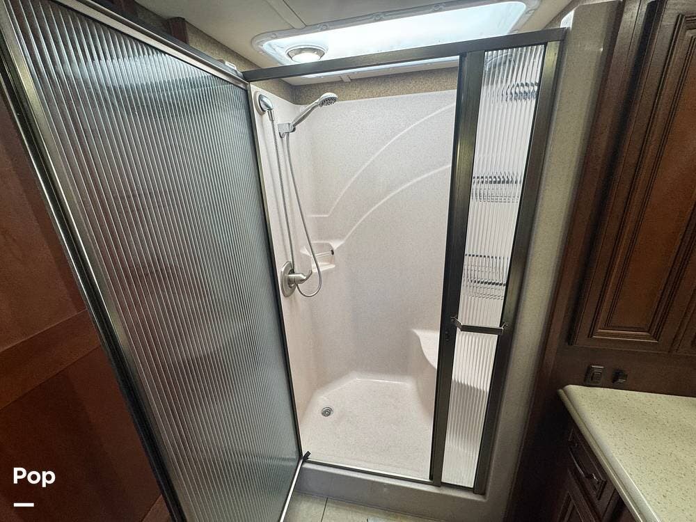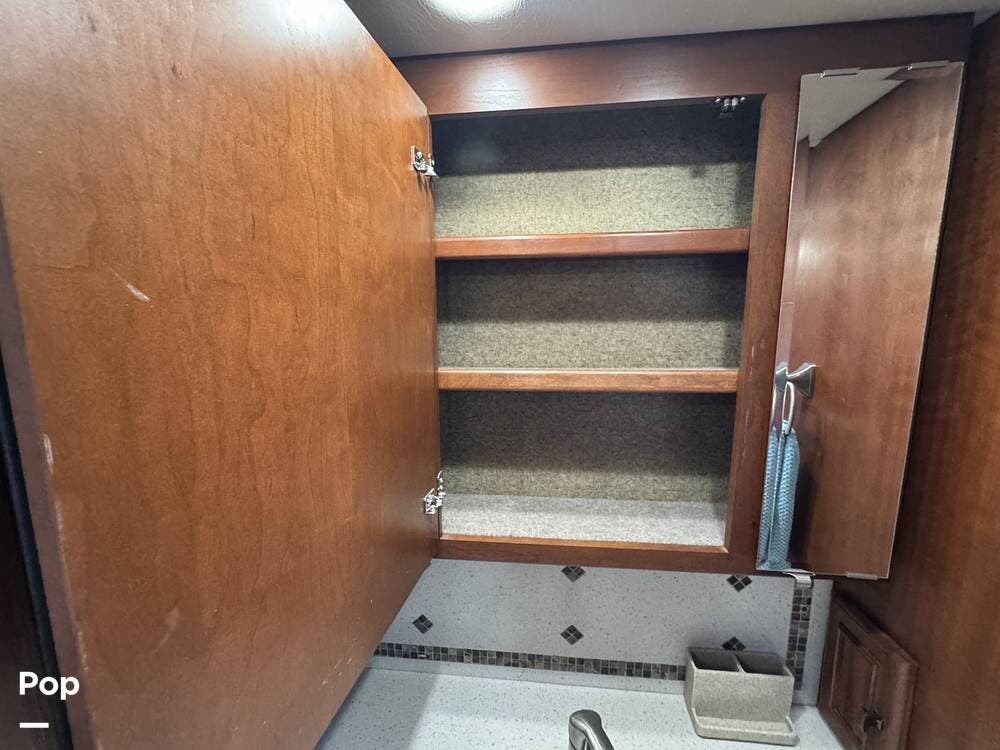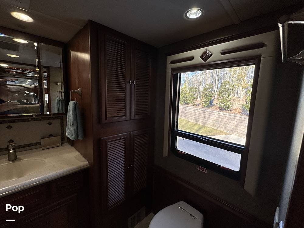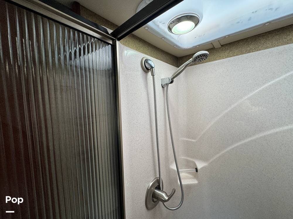 This coach is equipped with a bath-and-a-half layout, offering excellent functionality for couples or guests. The full bathroom includes a shower, vanity with sink, and toilet, while the half bath in the hallway adds convenience for visitors. Both bathrooms feature quality finishes and thoughtful storage solutions.