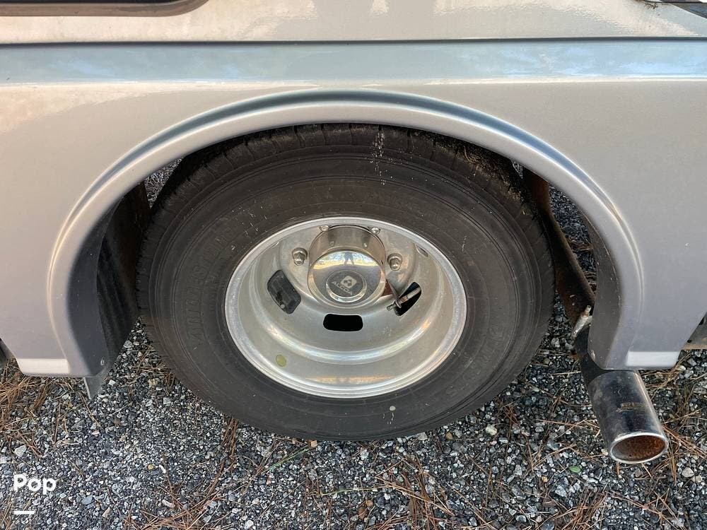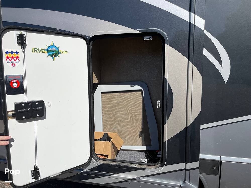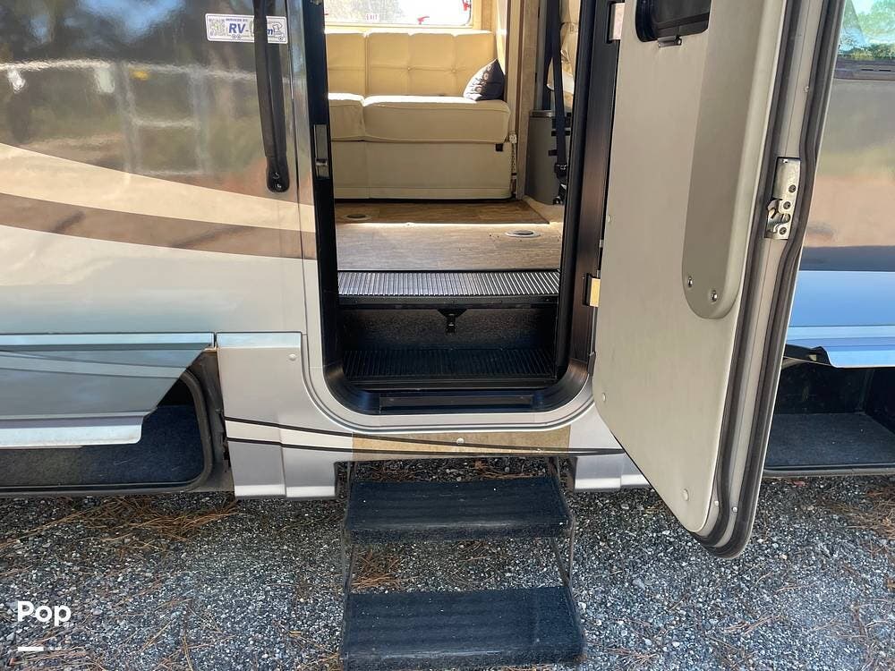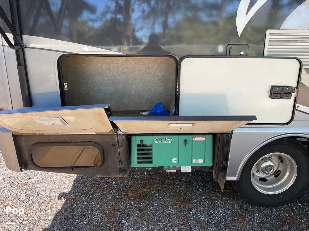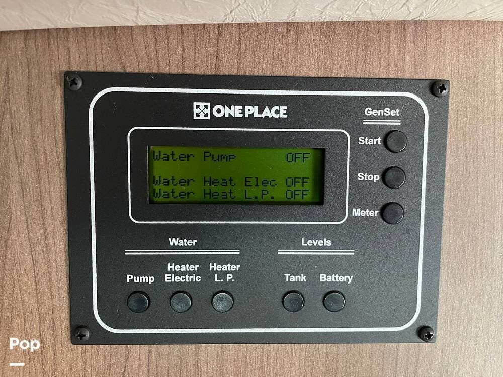 Other features include a driver's side door, power leveling jacks, an Onan 3600 generator, backup, and side cameras (when changing lanes)