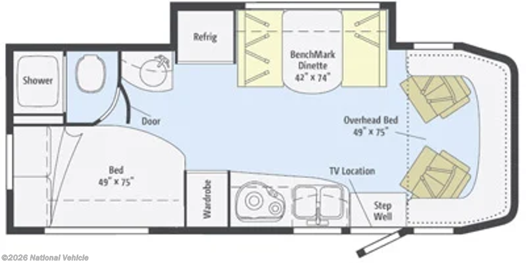 Cab-over bunk + convertible dinette (sleeps up to 6)