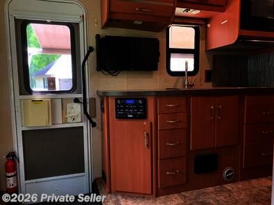 The A/C heat pump option will keep your travels at just the perfect temperature. If you’re thinking of heading off grid, this rig has a LP genrator and a 30-gallon fresh water tank. The exterior features such as awning, backup camera, power entrance step, power roof vent, slide out and spare tire it. There is an abundance of outside storage.