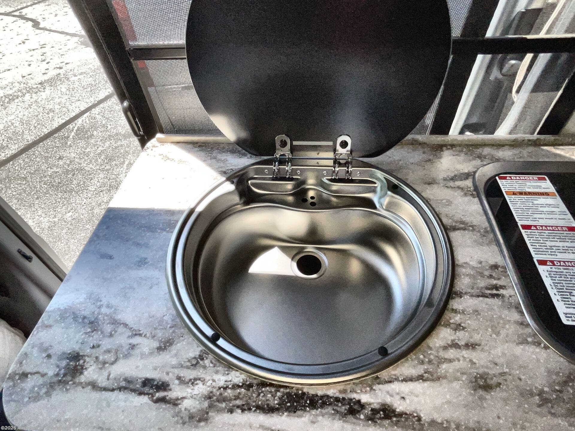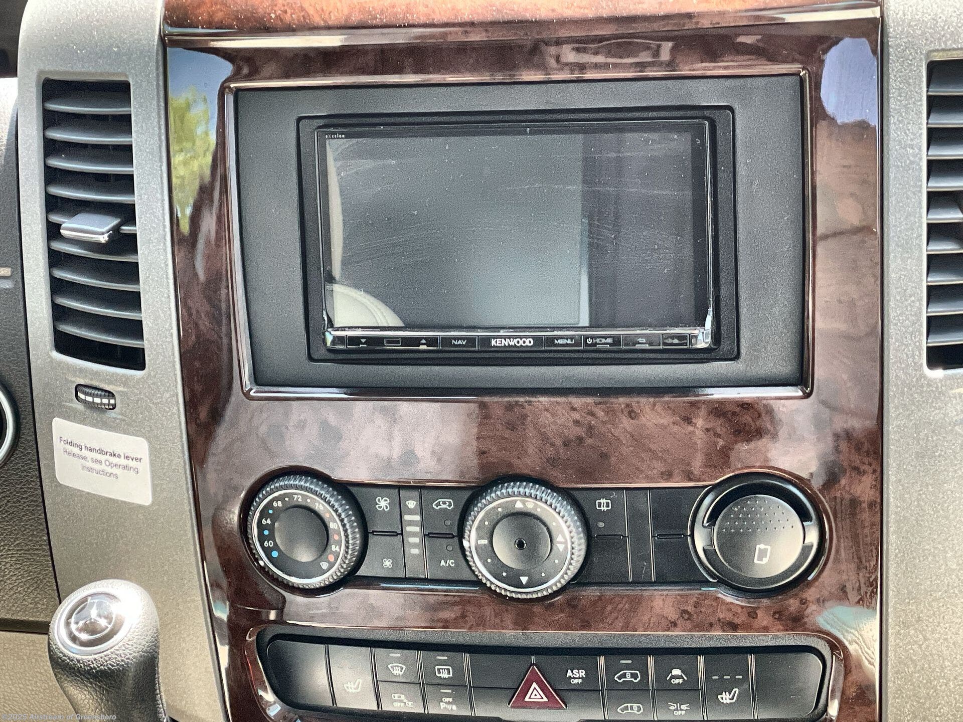 Step inside and find a convenient conversation area with the driver and passenger seats swiveled around. There is a removable table between the driver and passenger seat which allows for ease while eating or easy ability to play a game. Behind the driver's seat there is a work station and a LED TV.