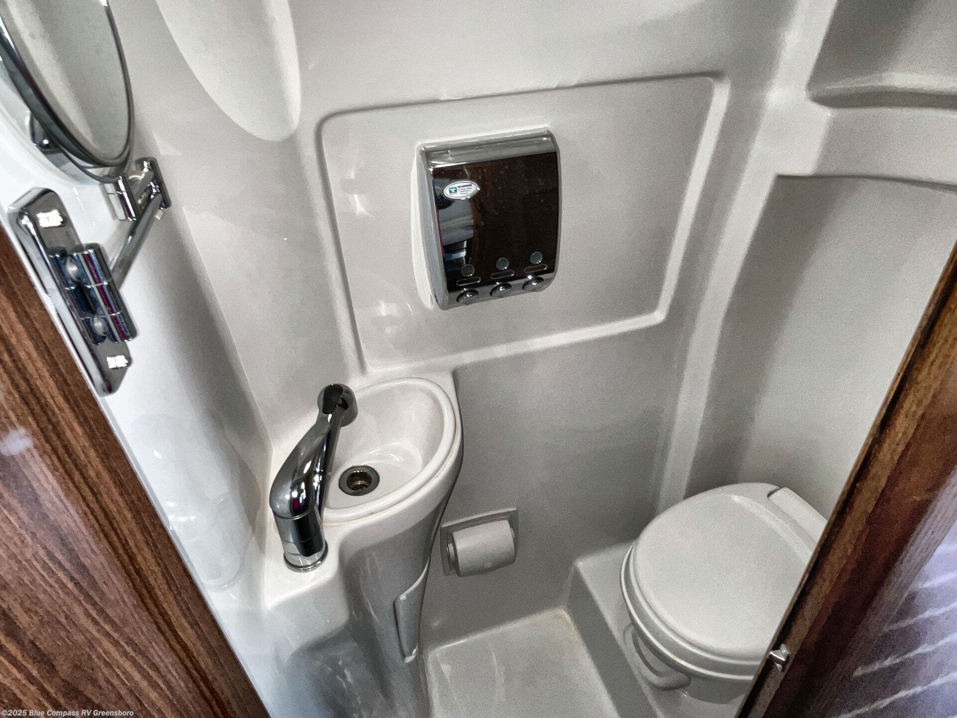 As you move toward the rear notice a convenient wet bath on your right which includes a toilet, small sink and shower.