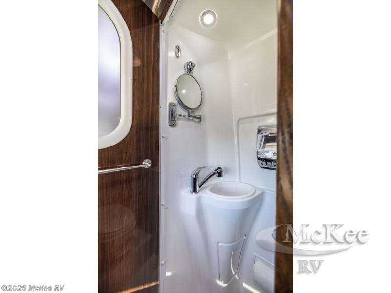 As you move toward the rear notice a convenient wet bath on your right which includes a toilet, small sink and shower.