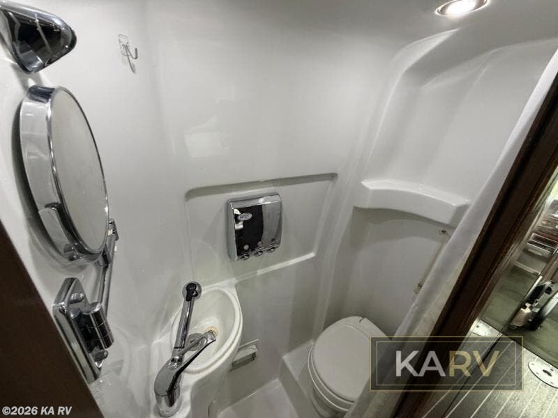 As you move toward the rear notice a convenient wet bath on your right which includes a toilet, small sink and shower.